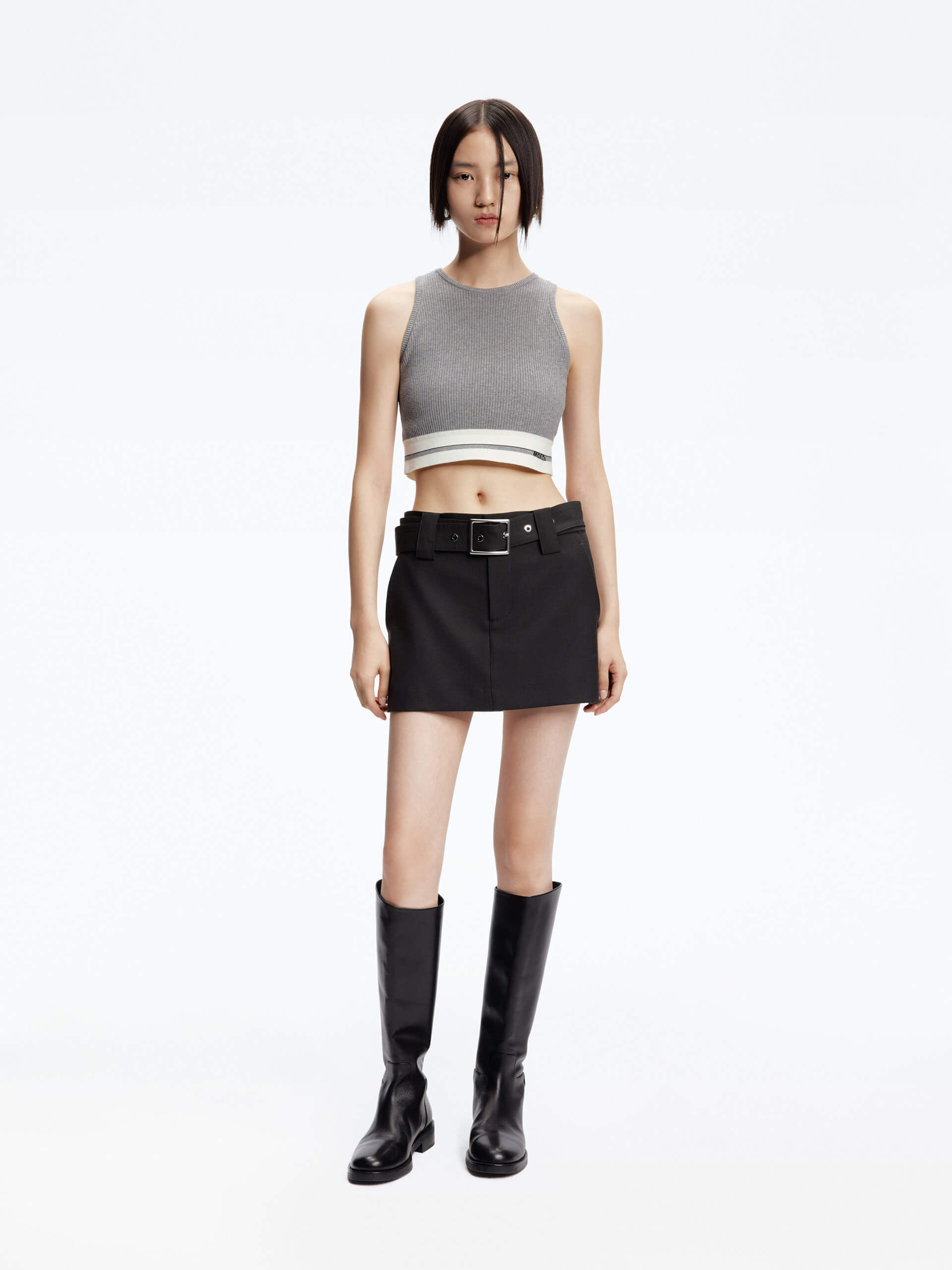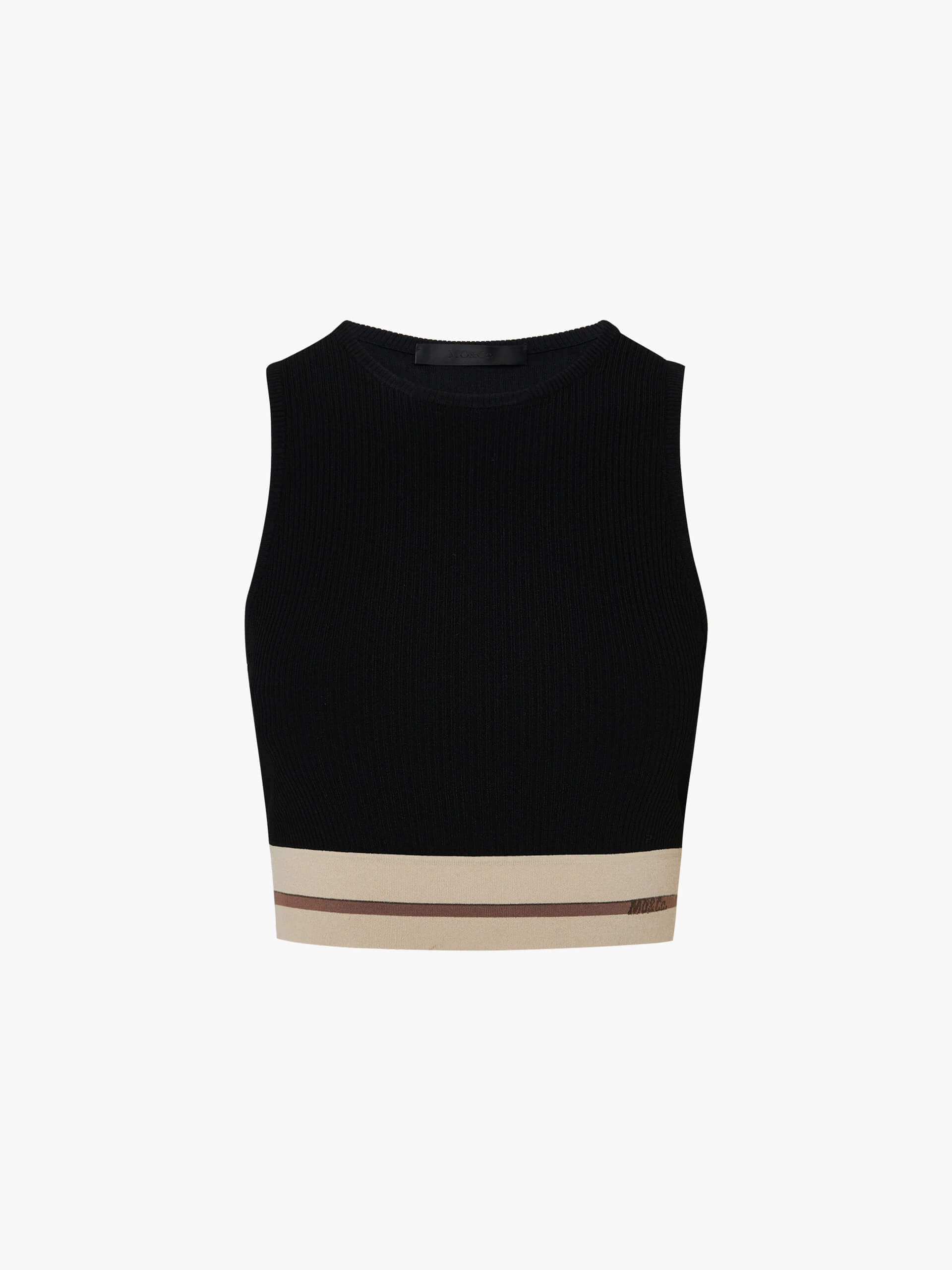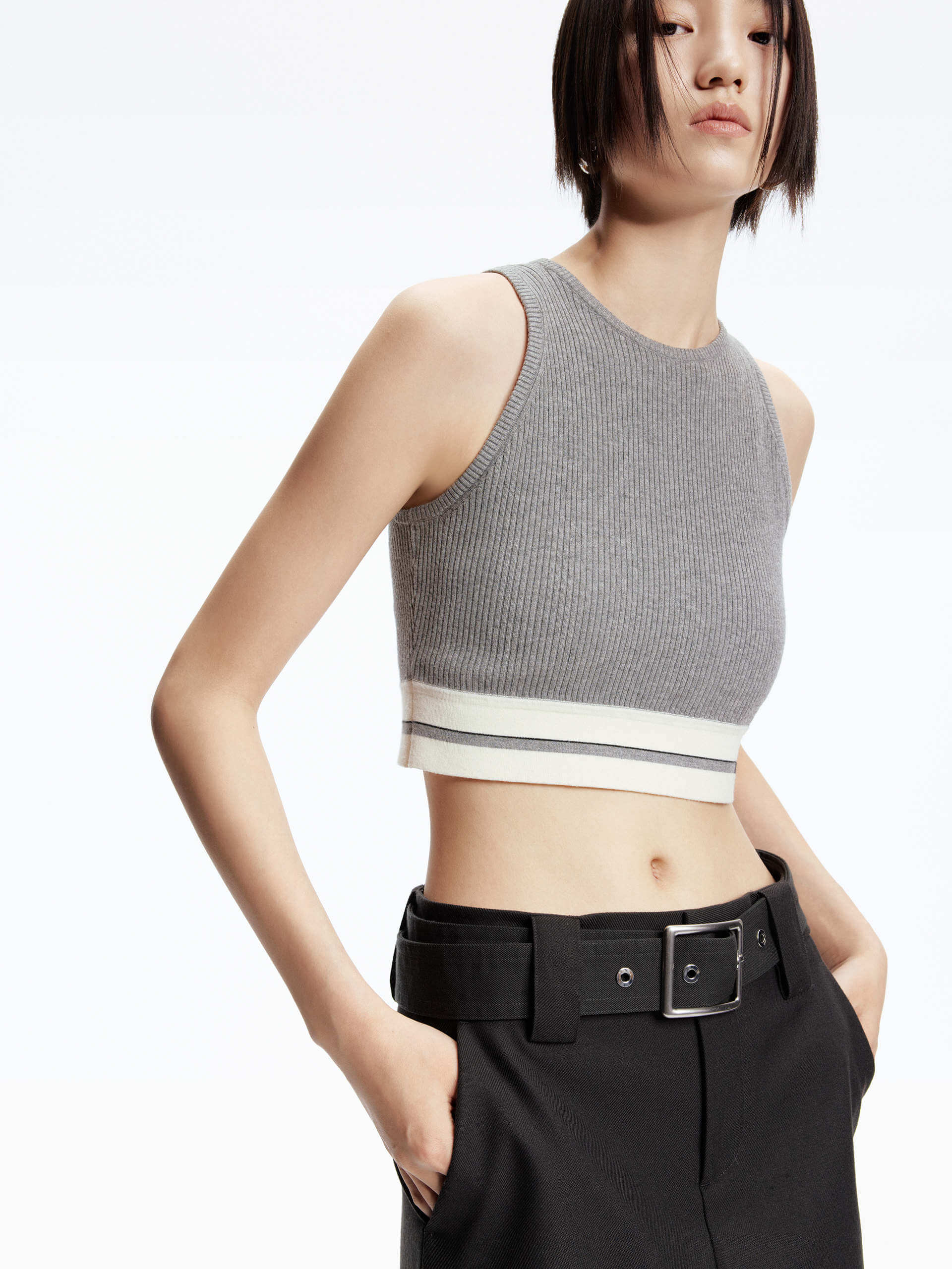Experience ultimate comfort in this tank top! Made with elastic knit material, it has a soft touch and a slim cropped fit. Pair with a high-waisted skirt or jeans for a versatile look.