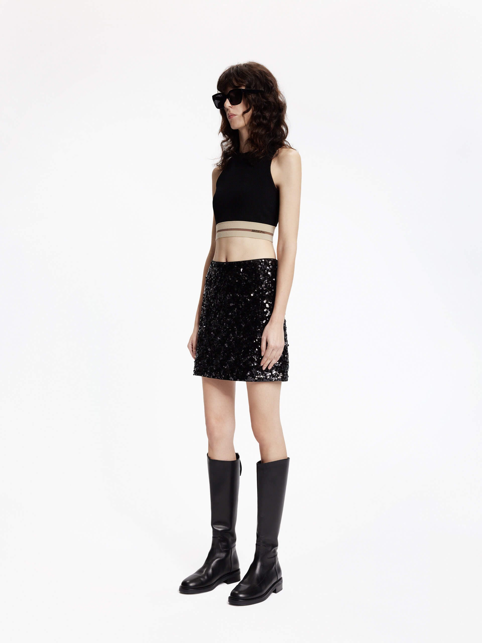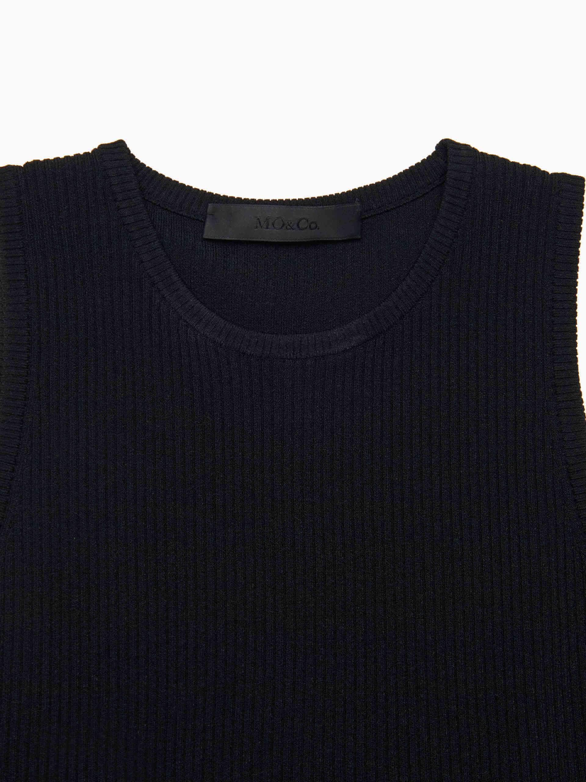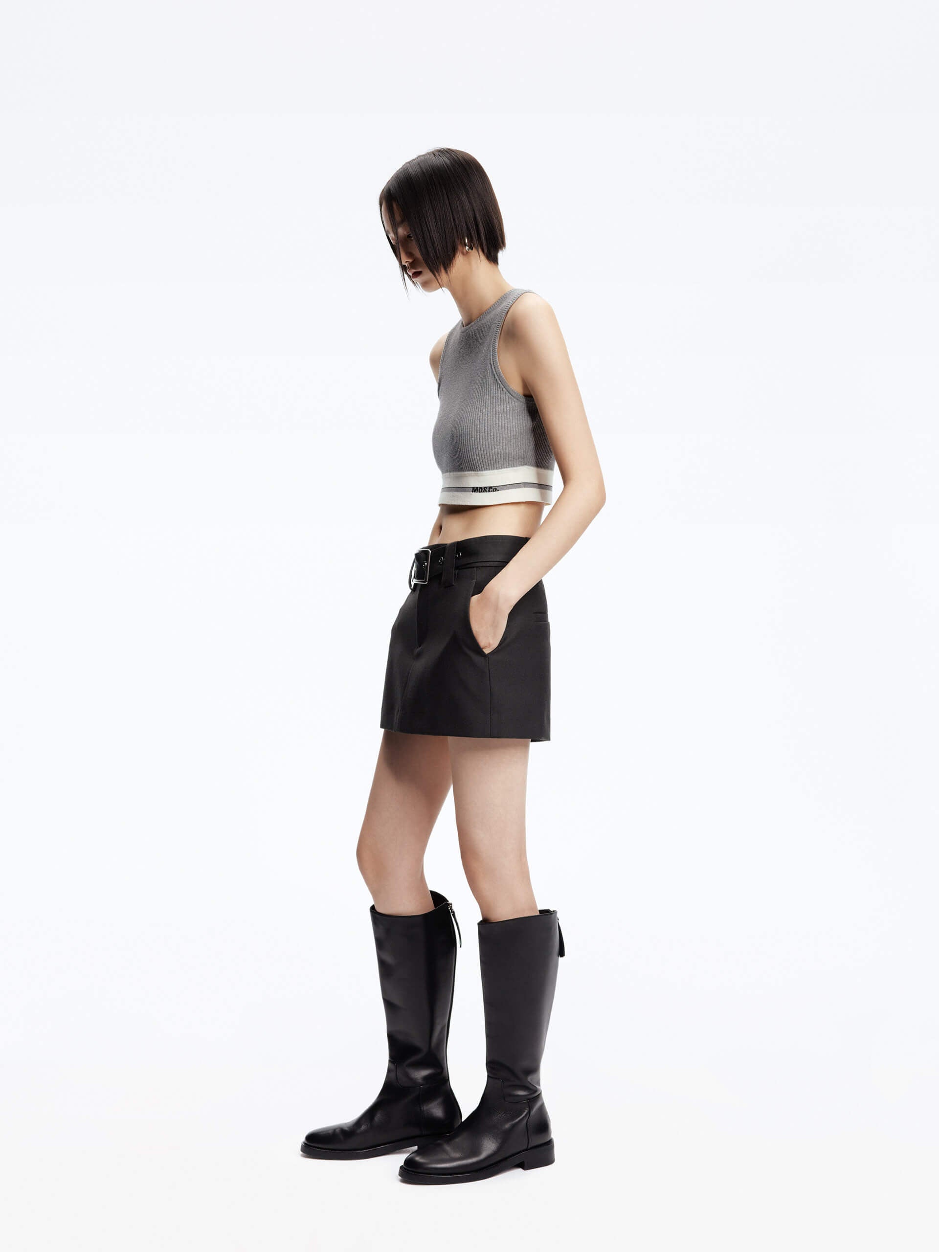 Experience ultimate comfort in this tank top! Made with elastic knit material, it has a soft touch and a slim cropped fit. Pair with a high-waisted skirt or jeans for a versatile look.