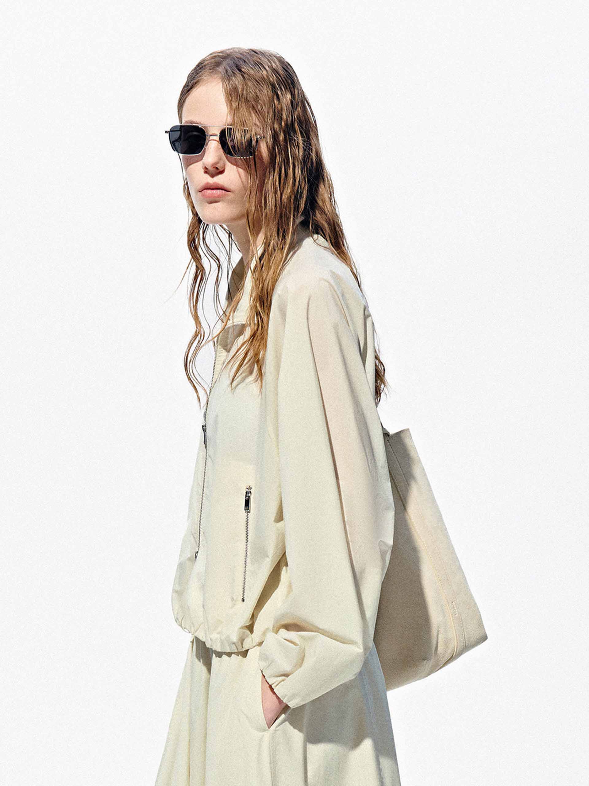 This cropped jacket brings together comfort and understated style. Made from a cozy, lightweight fabric, it features elastic trim at the hem and cuffs for a clean silhouette. The two-way zip and side pockets enhance practicality, while pairing effortlessly with the matching skirt for a chic look.