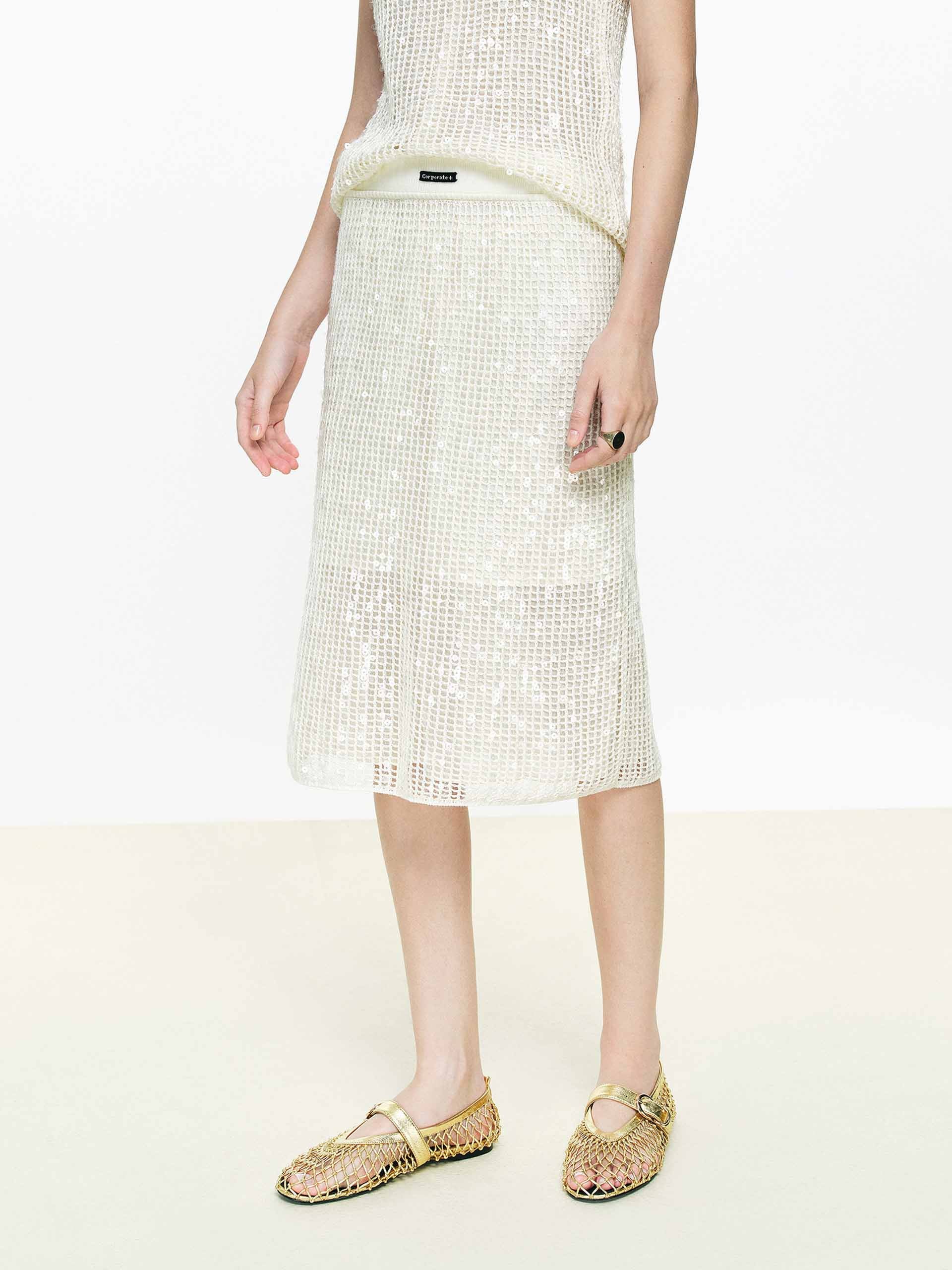 Sequins Crochet Midi Skirt