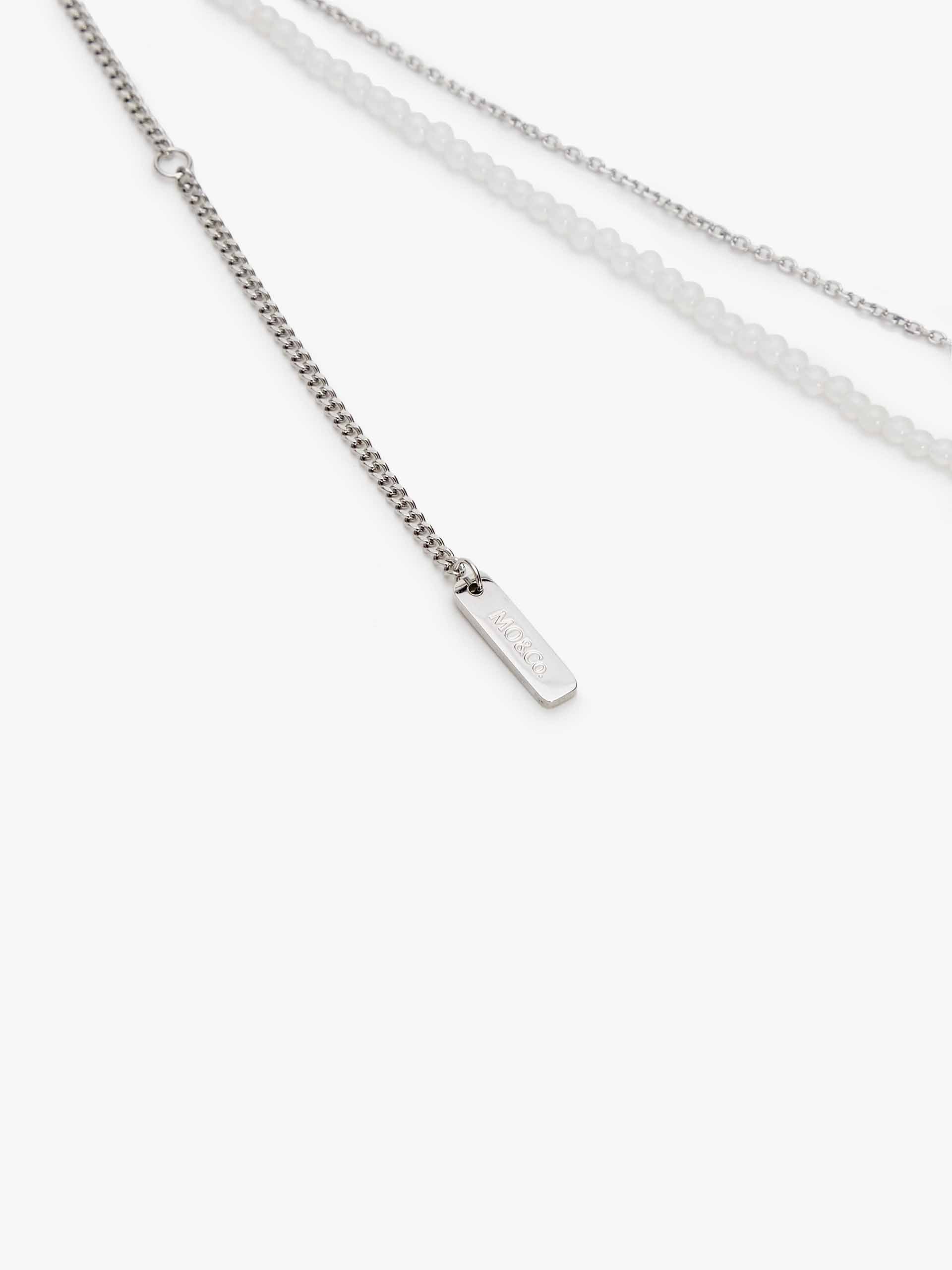 Embrace the art of the layered look with this beautifully curated two-in-one necklace set. It combines a delicate metallic chain with a strand of refined beads, masterfully linked together to create an effortlessly chic, dimensional style. The interplay of cool metal shine and subtle bead texture offers a perfect balance of modern edge and organic softness.