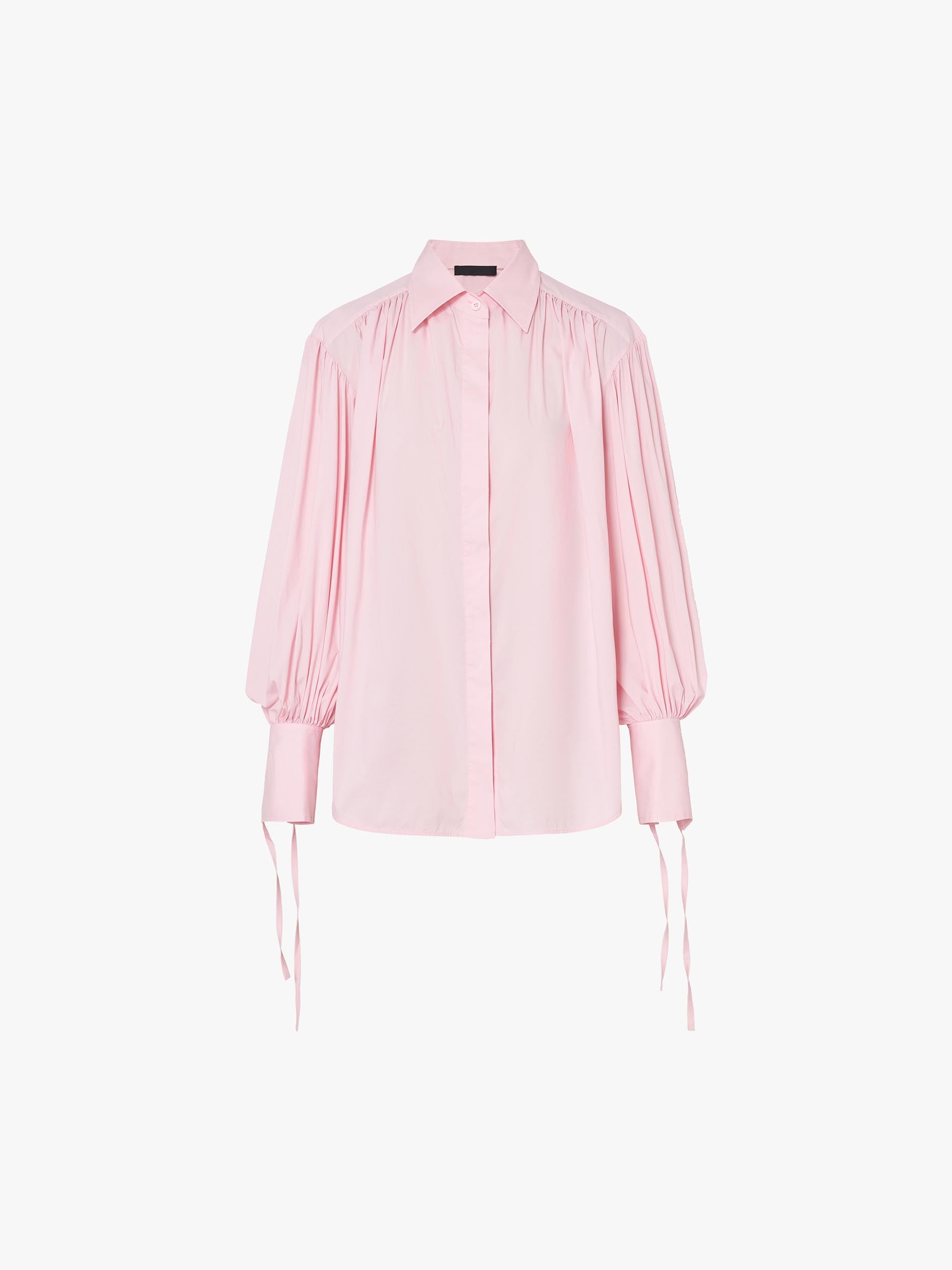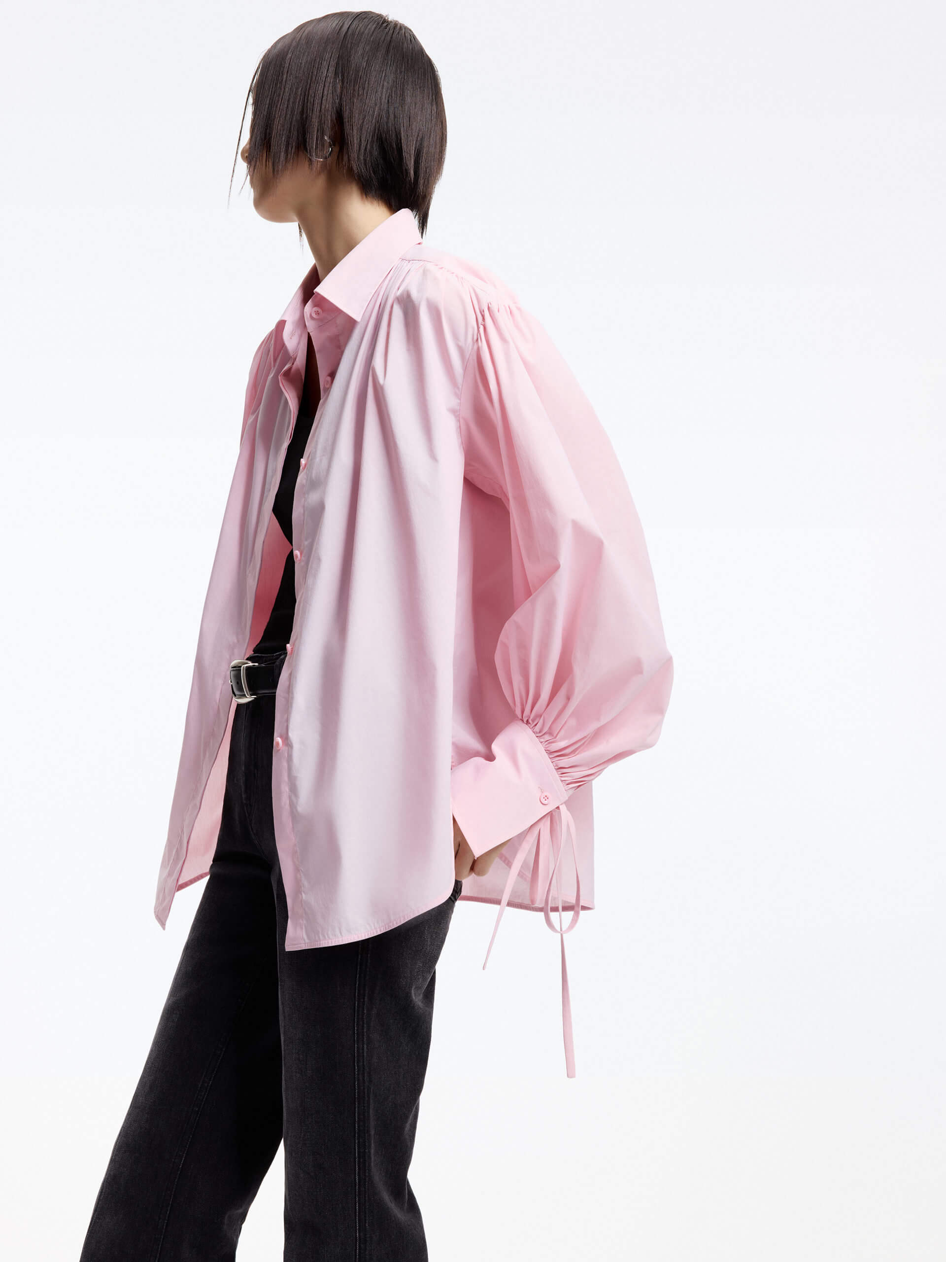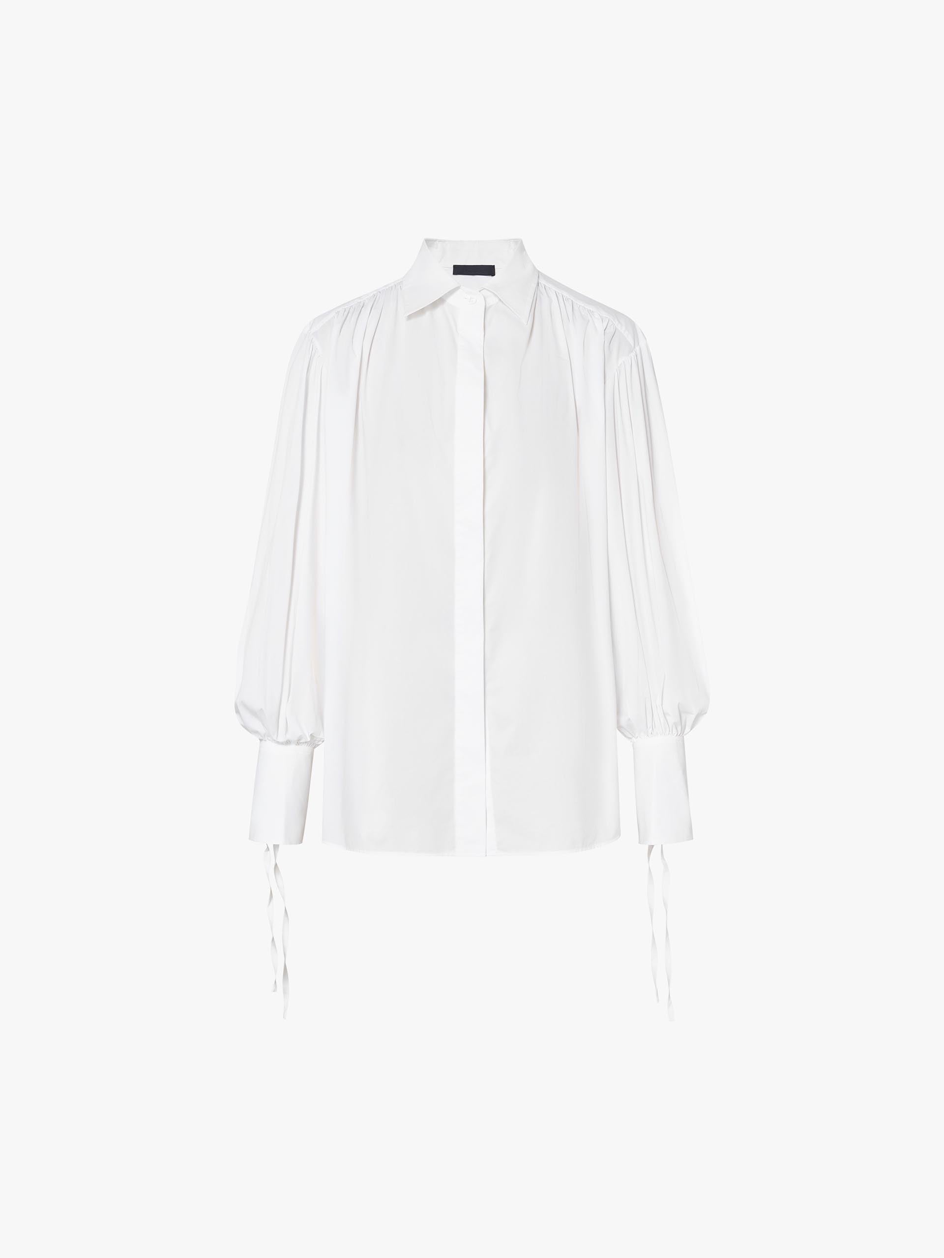 - Puff sleeves with tie and pleated detail