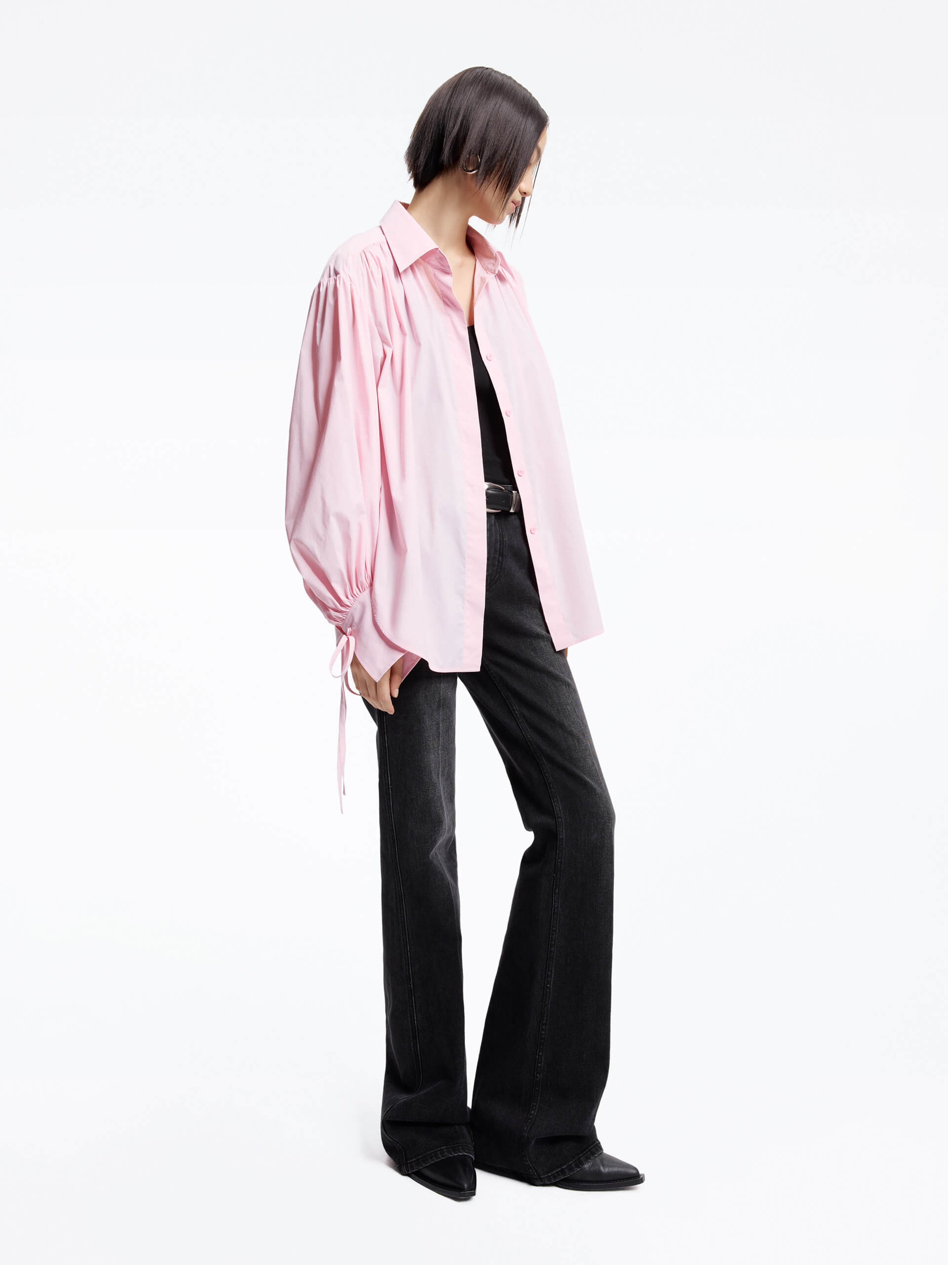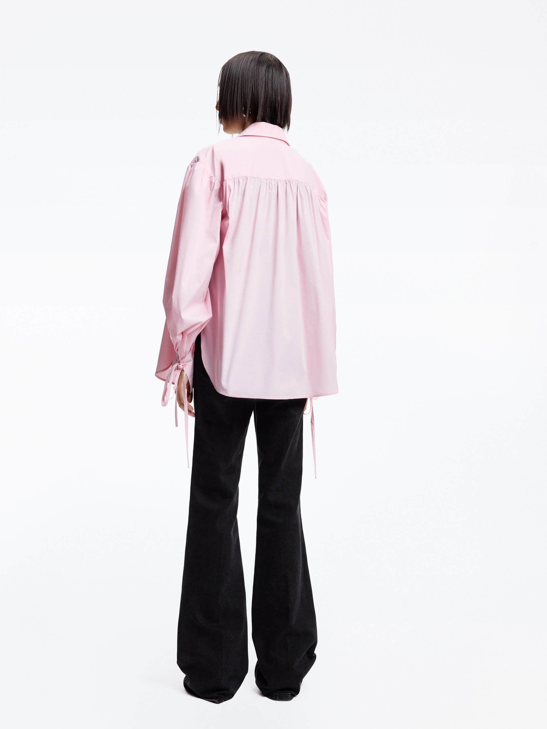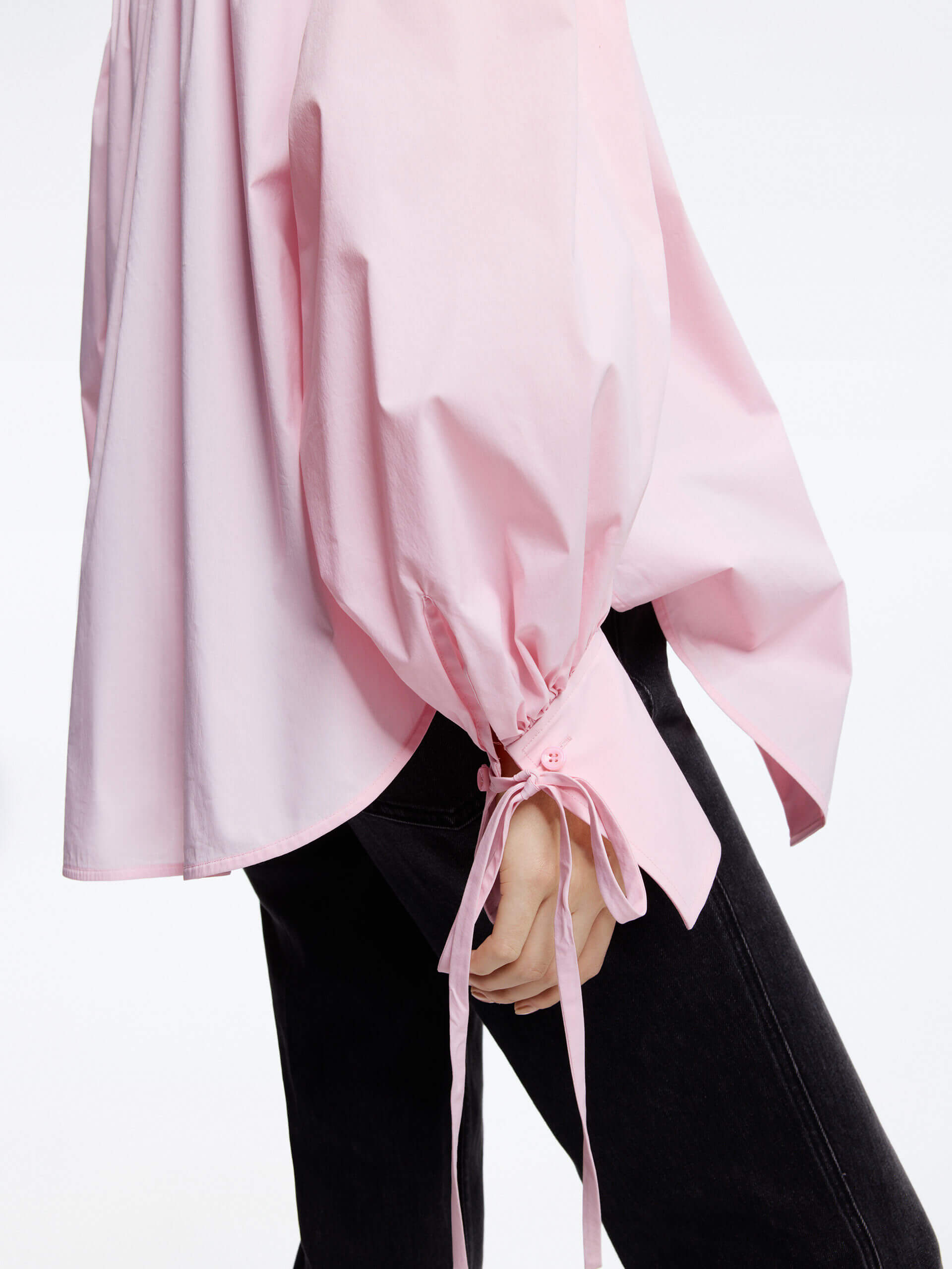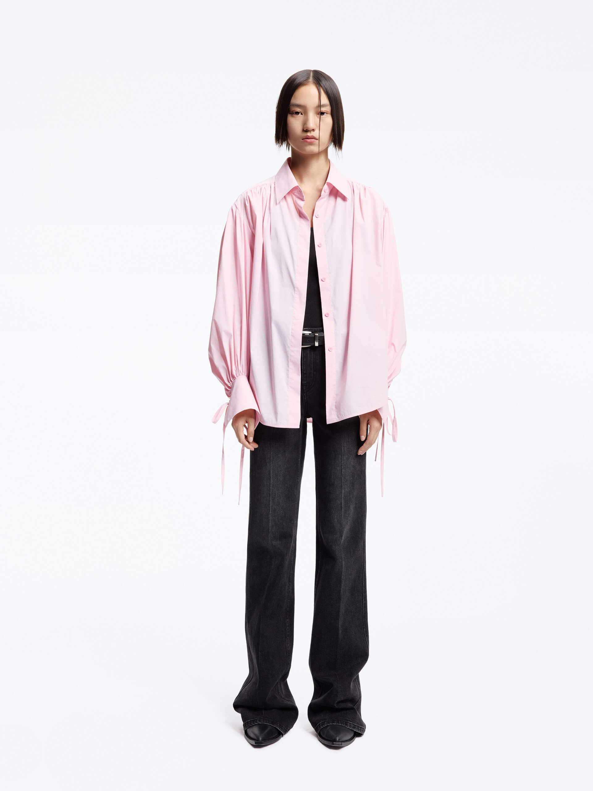 - Puff sleeves with tie and pleated detail