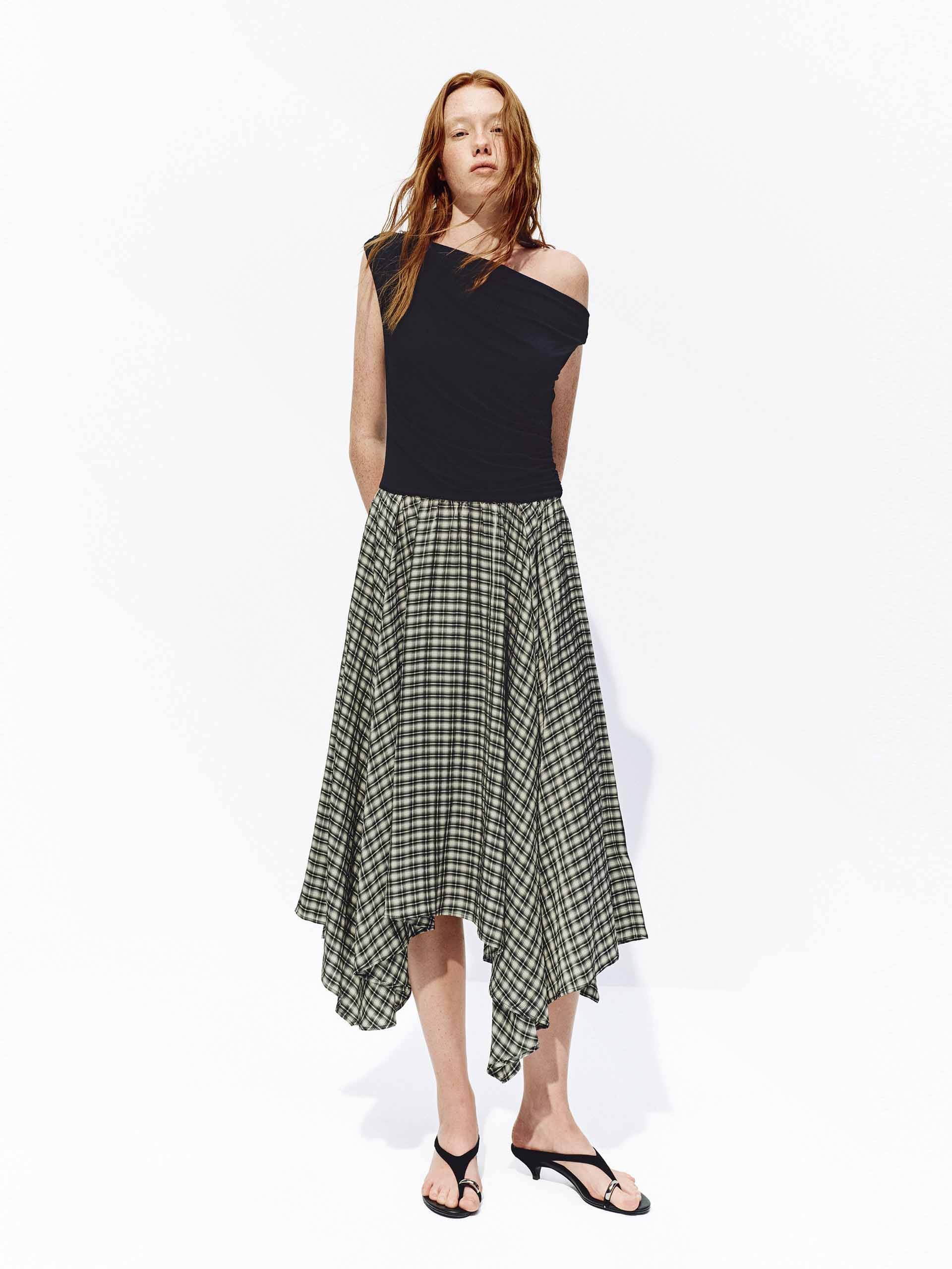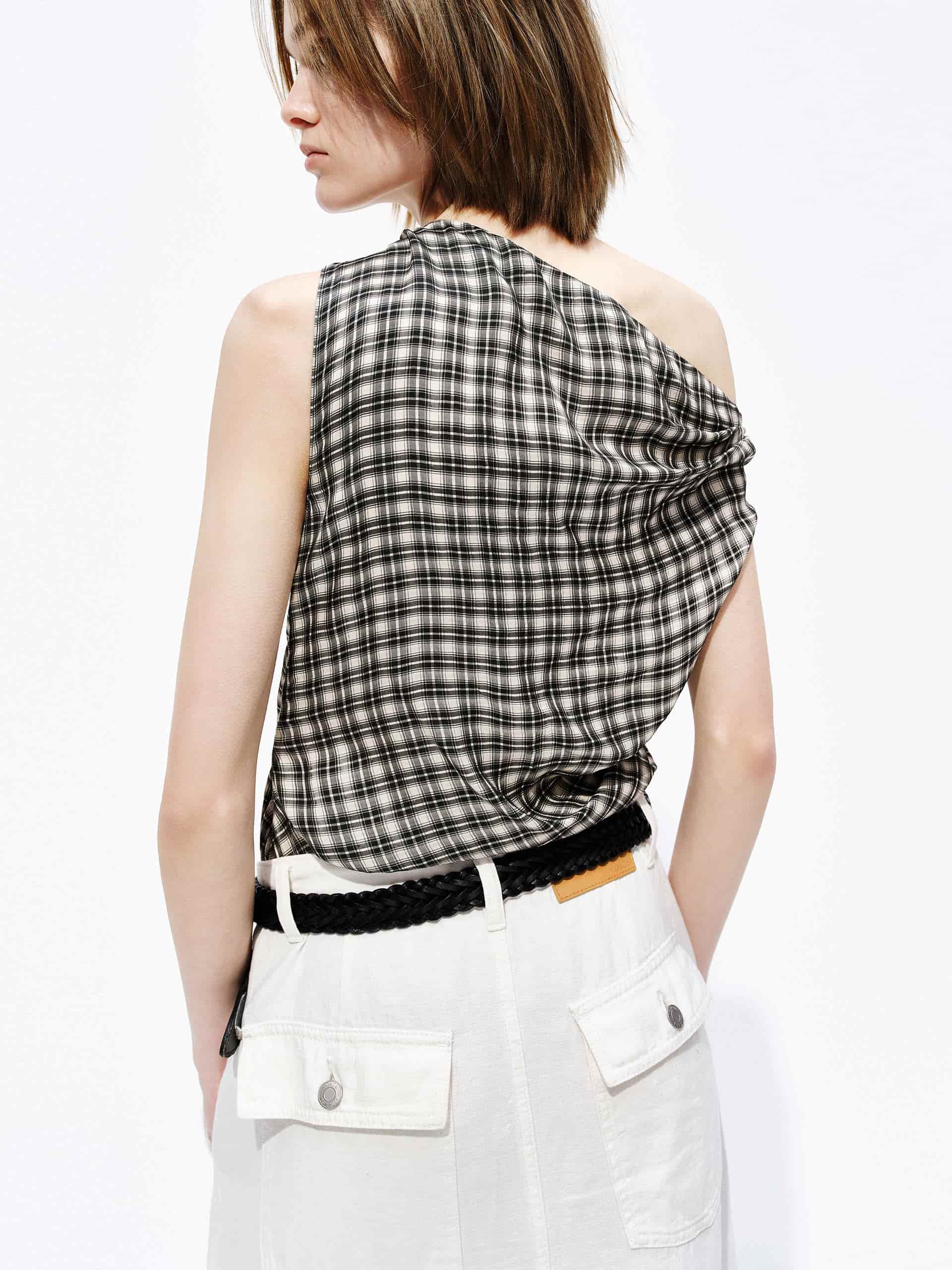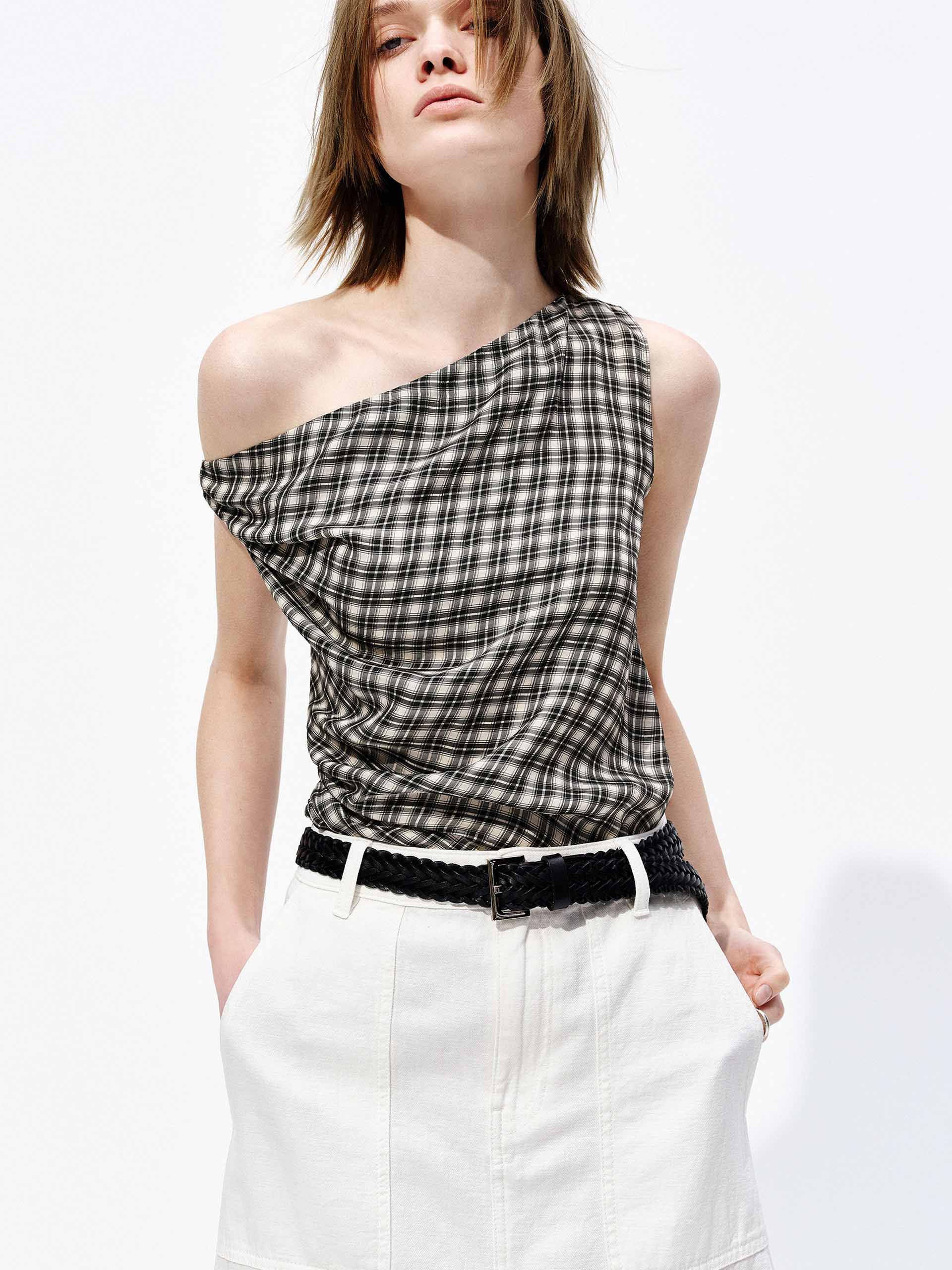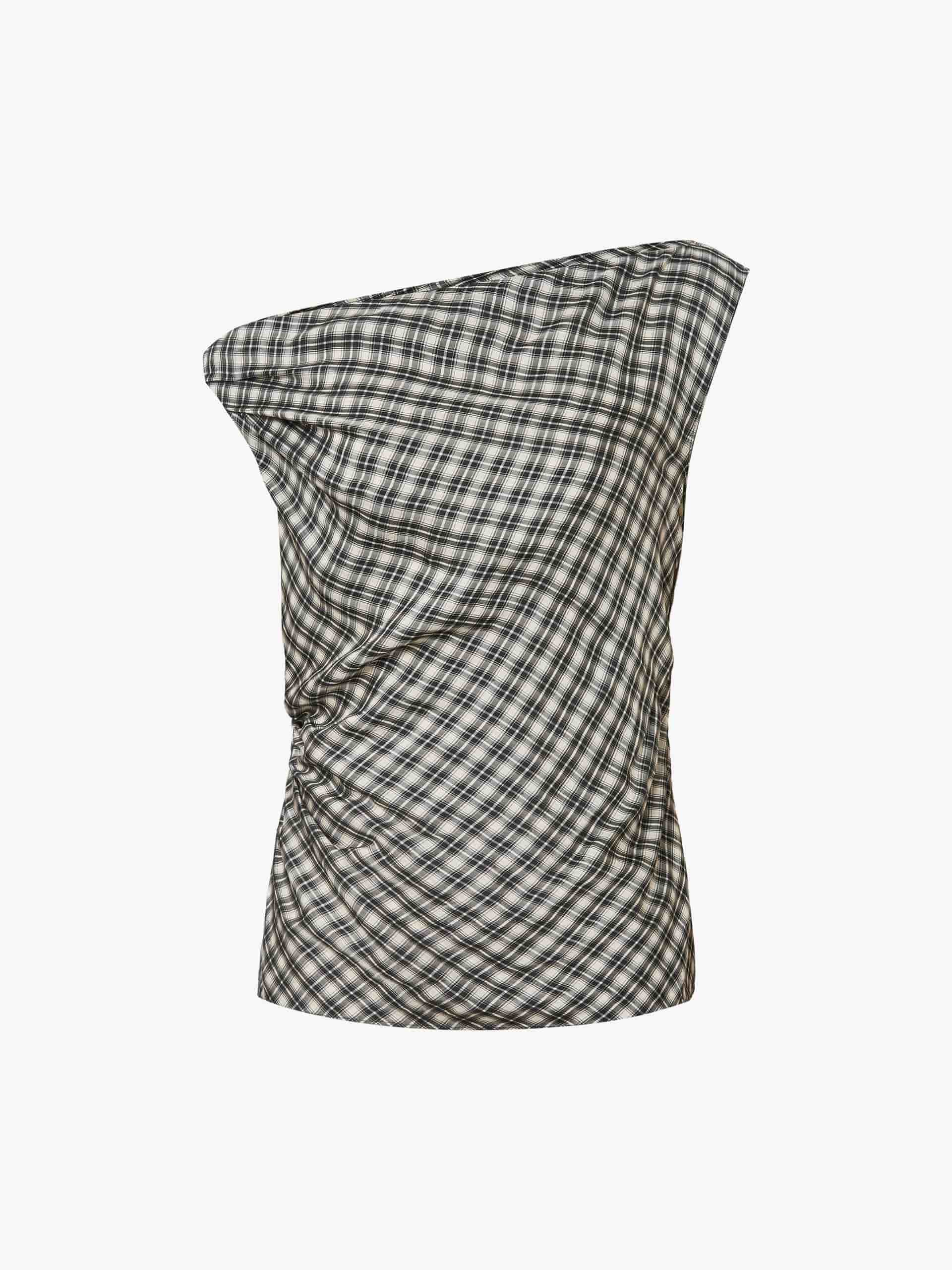 One-Shoulder Plaid Top