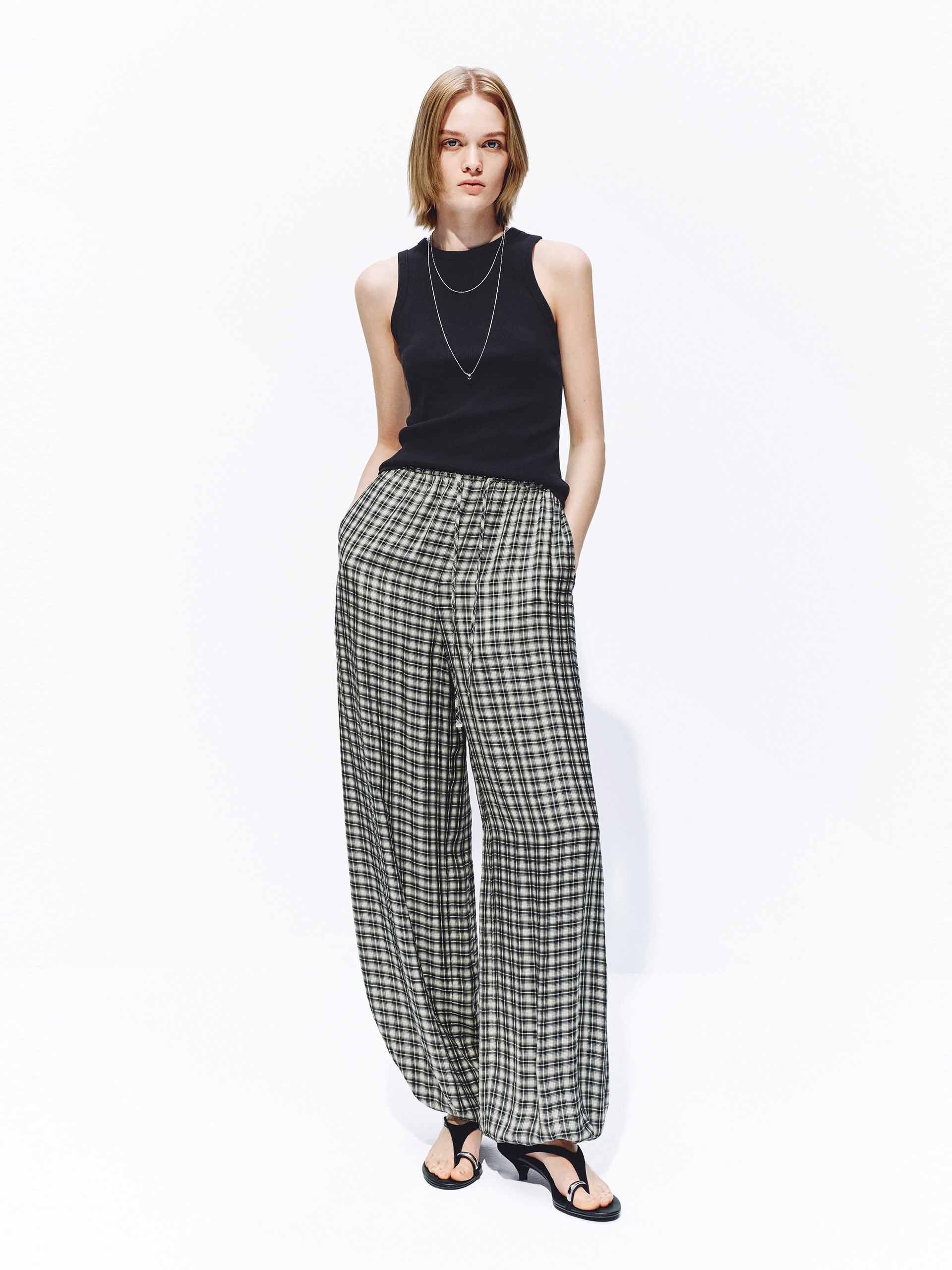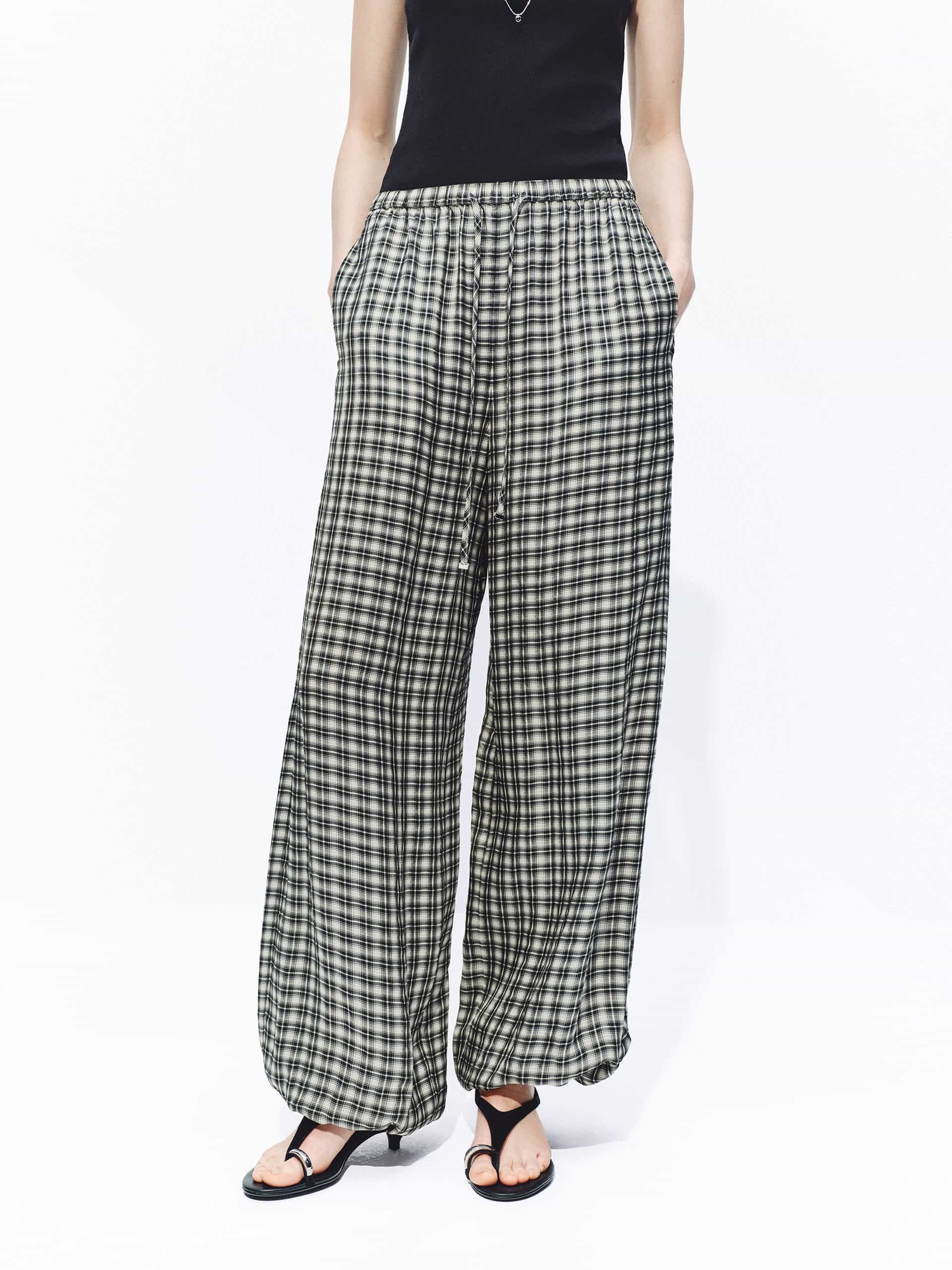 Acetate Blend Plaid Trousers
