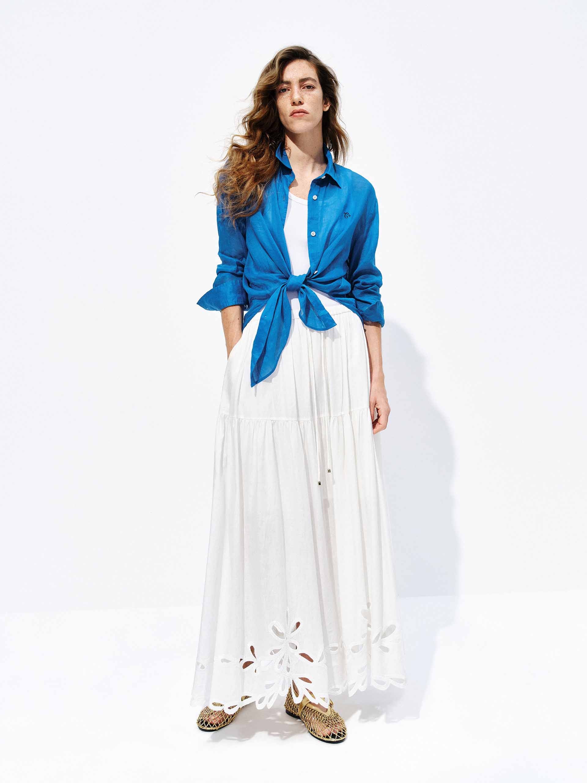 Linen Blend Eyelet Skirt
