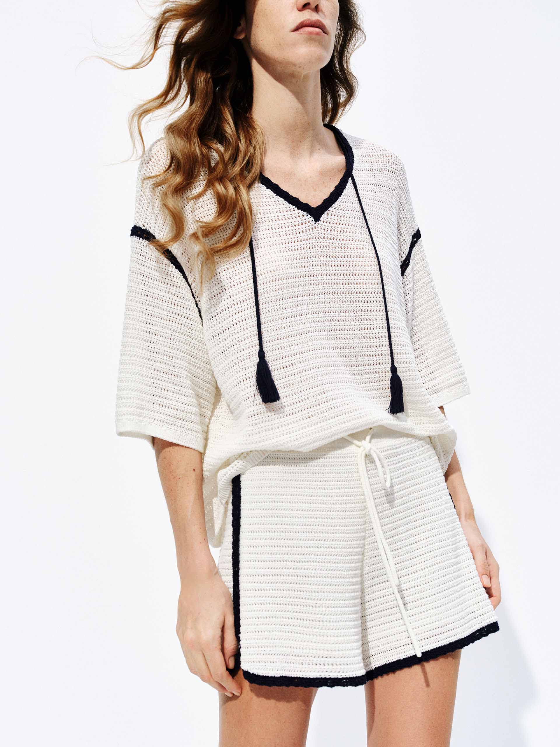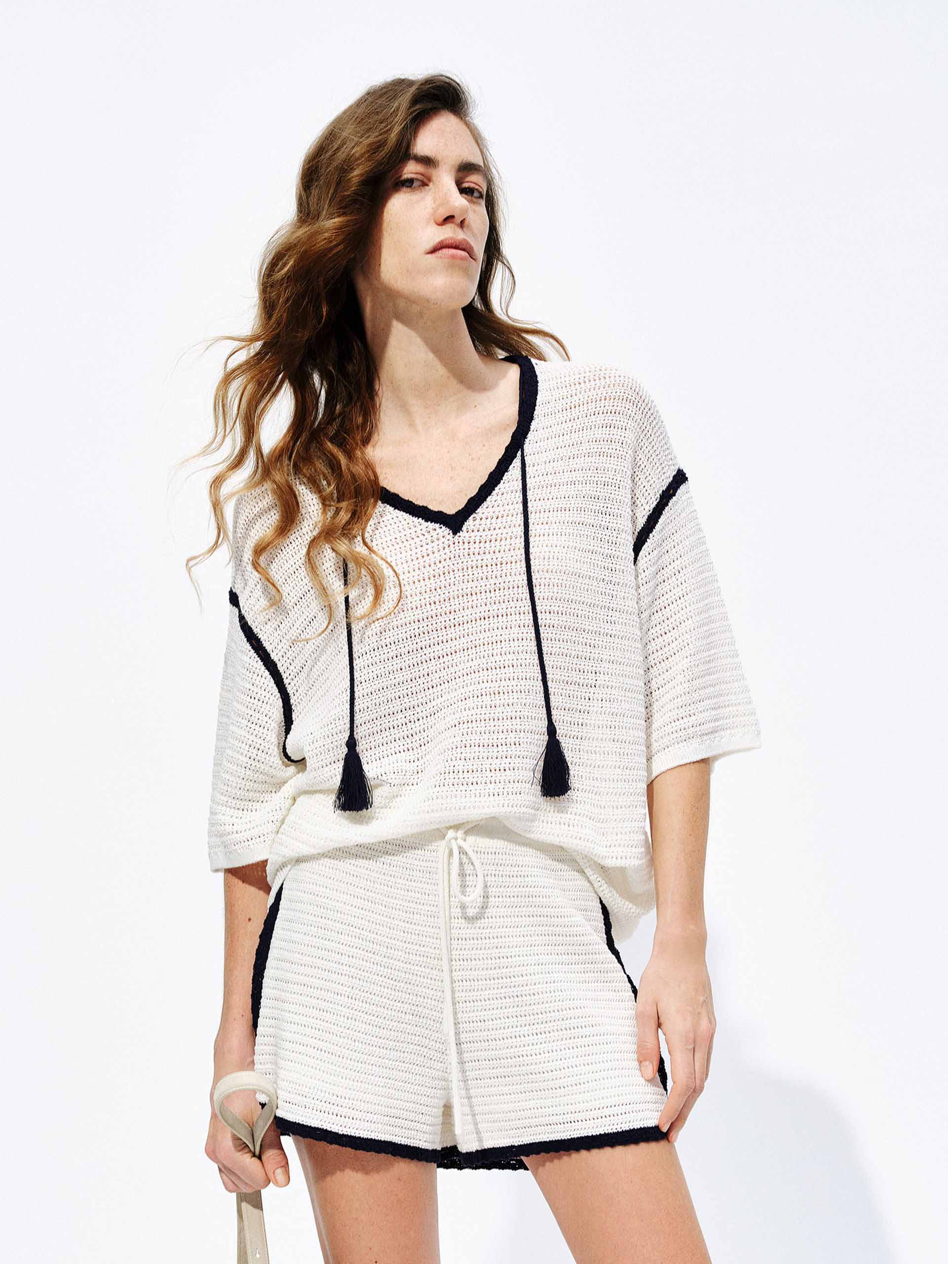 Contrast Detail Tassel Knit Top