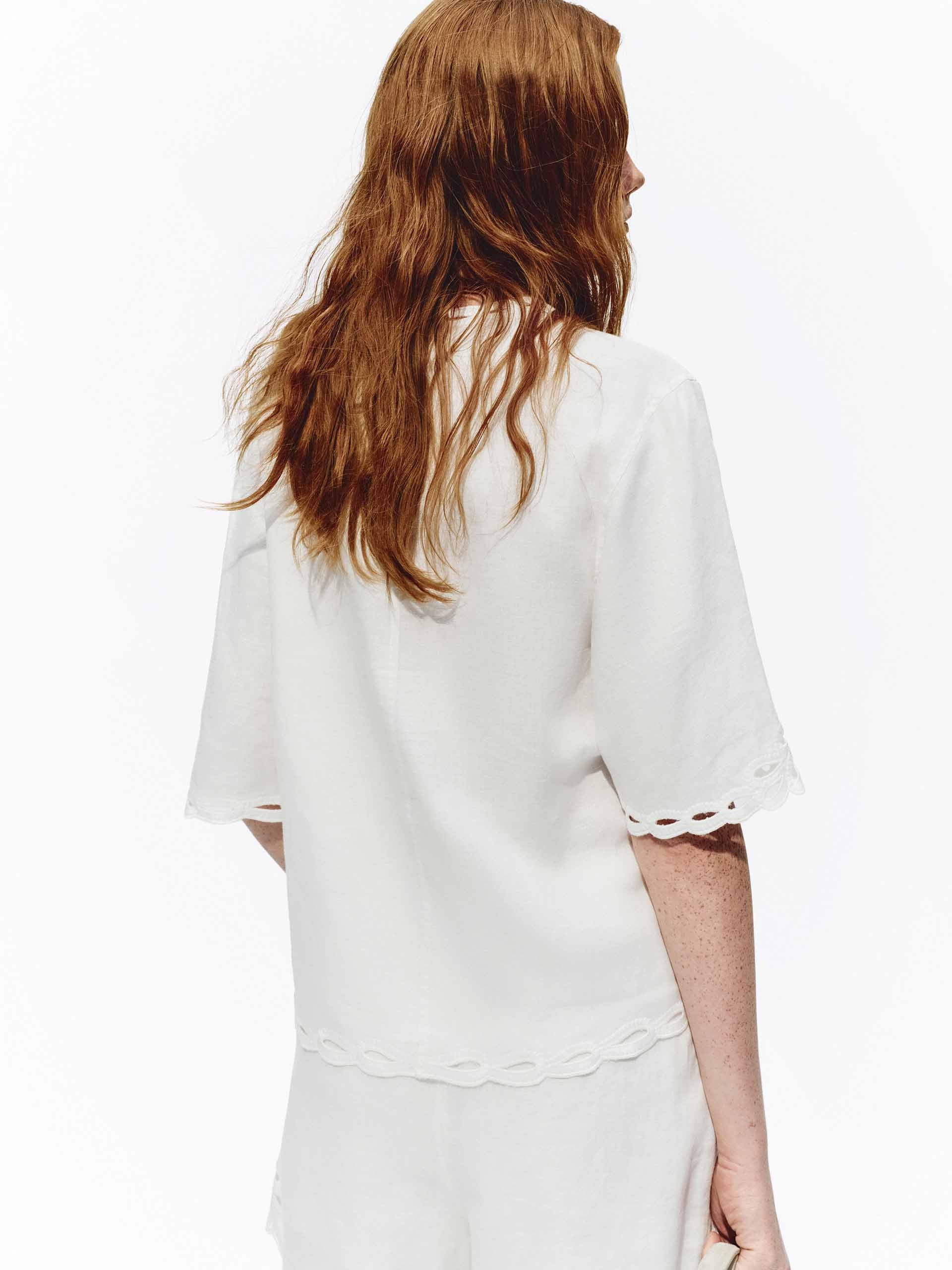 Embroidered Eyelet Trim Linen Top