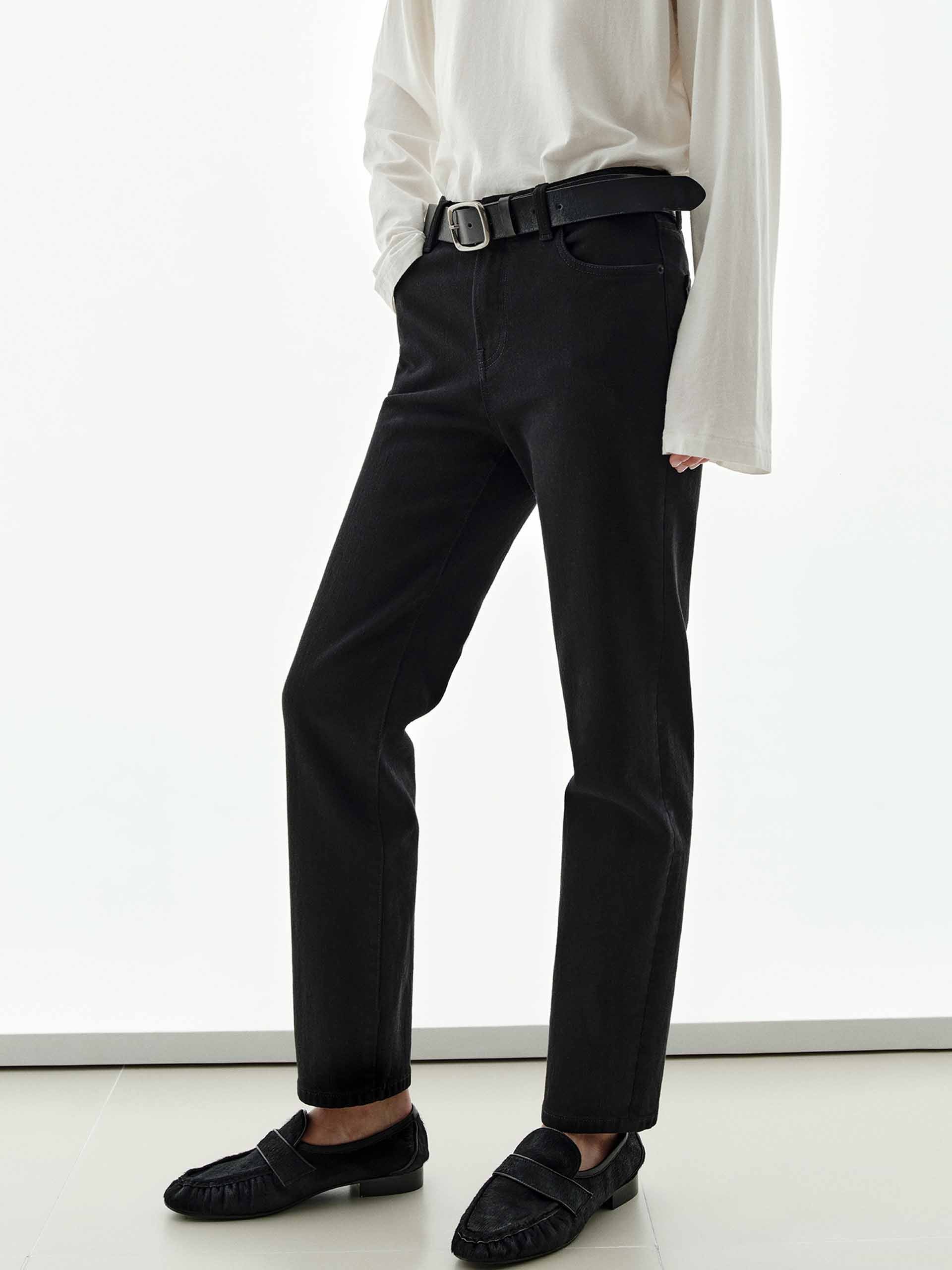 Experience everyday style and exceptional comfort with our jeans, featuring a modern tapered jeans silhouette for a sharp, contemporary look. Crafted from a soft and comfy cotton blend fabric, they offer easy movement and a broken-in feel from the first wear. They are finished with a classic zip and button closure and a versatile five-pocket design, providing both practical function and timeless appeal.