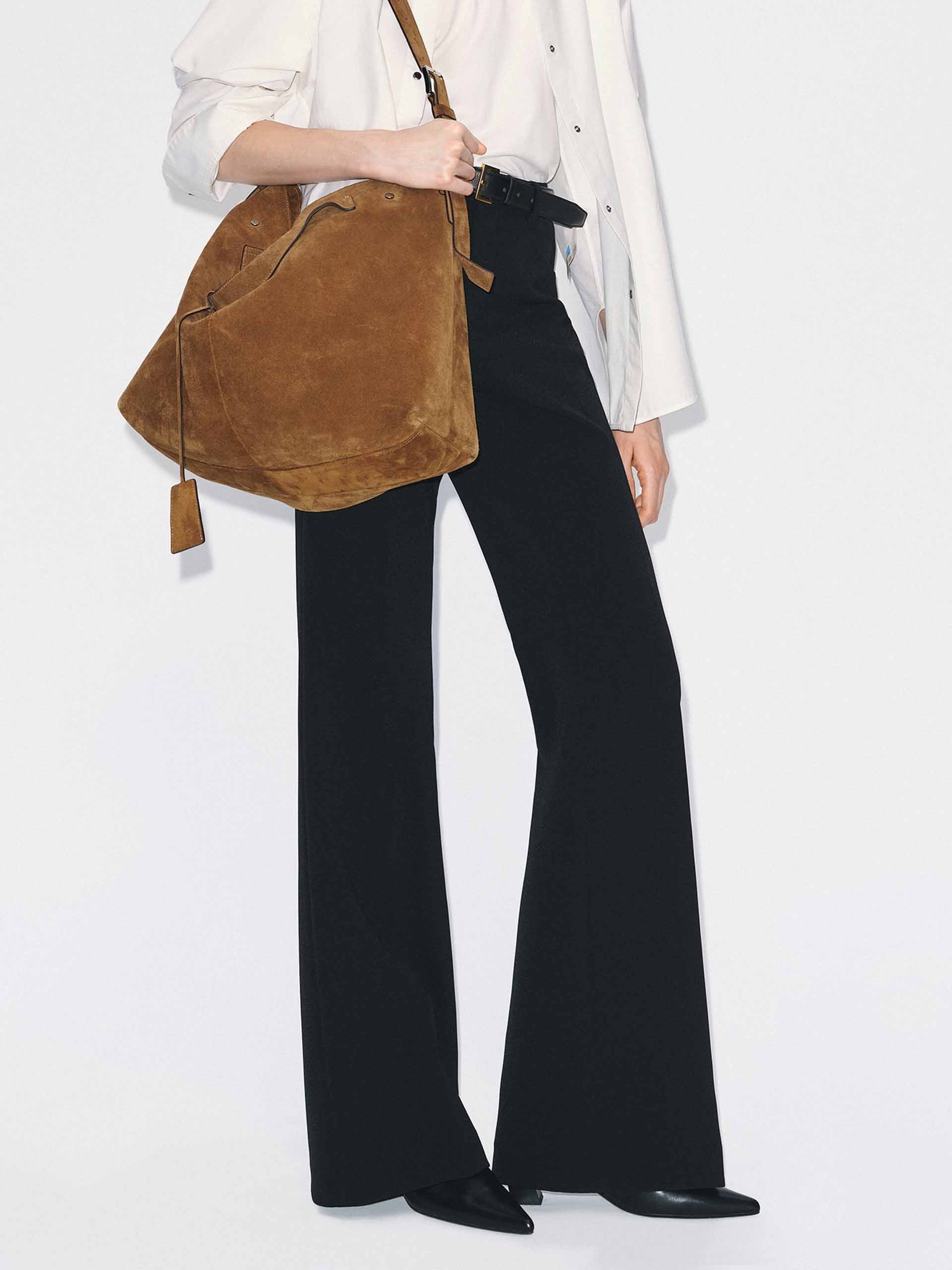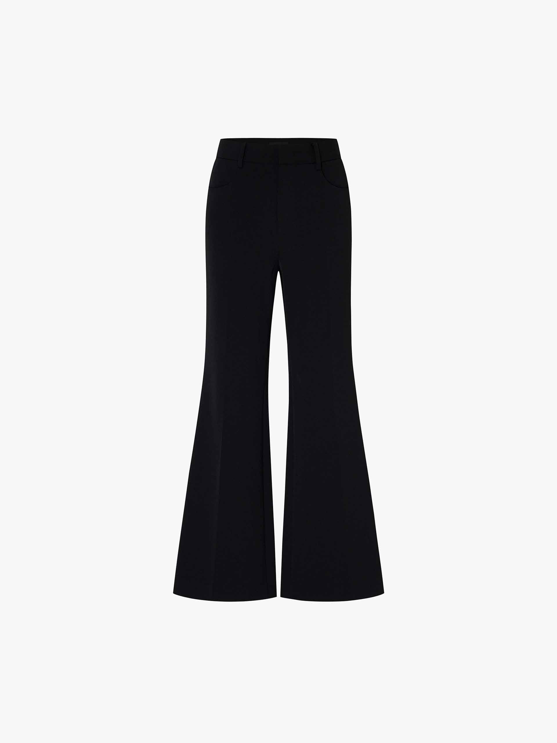 Embrace the effortless glamour of retro design reimagined for today’s minimalist aesthetic. These trousers are sculpted to elongate the silhouette, with sharp pressed creases adding structured elegance from waist to hem. The side pockets offer discreet functionality, while the clean lines and flowing flare create movement and sophistication.