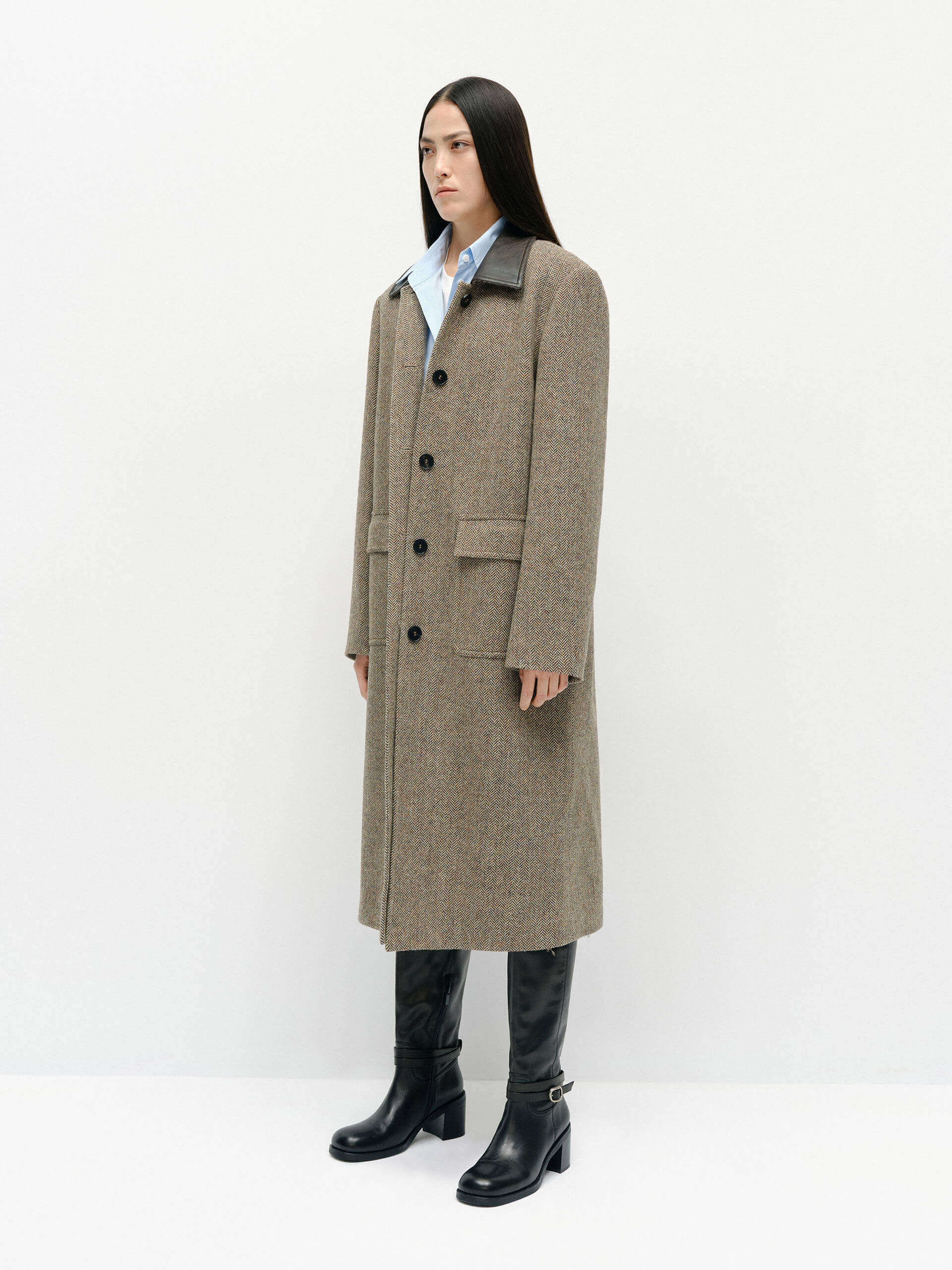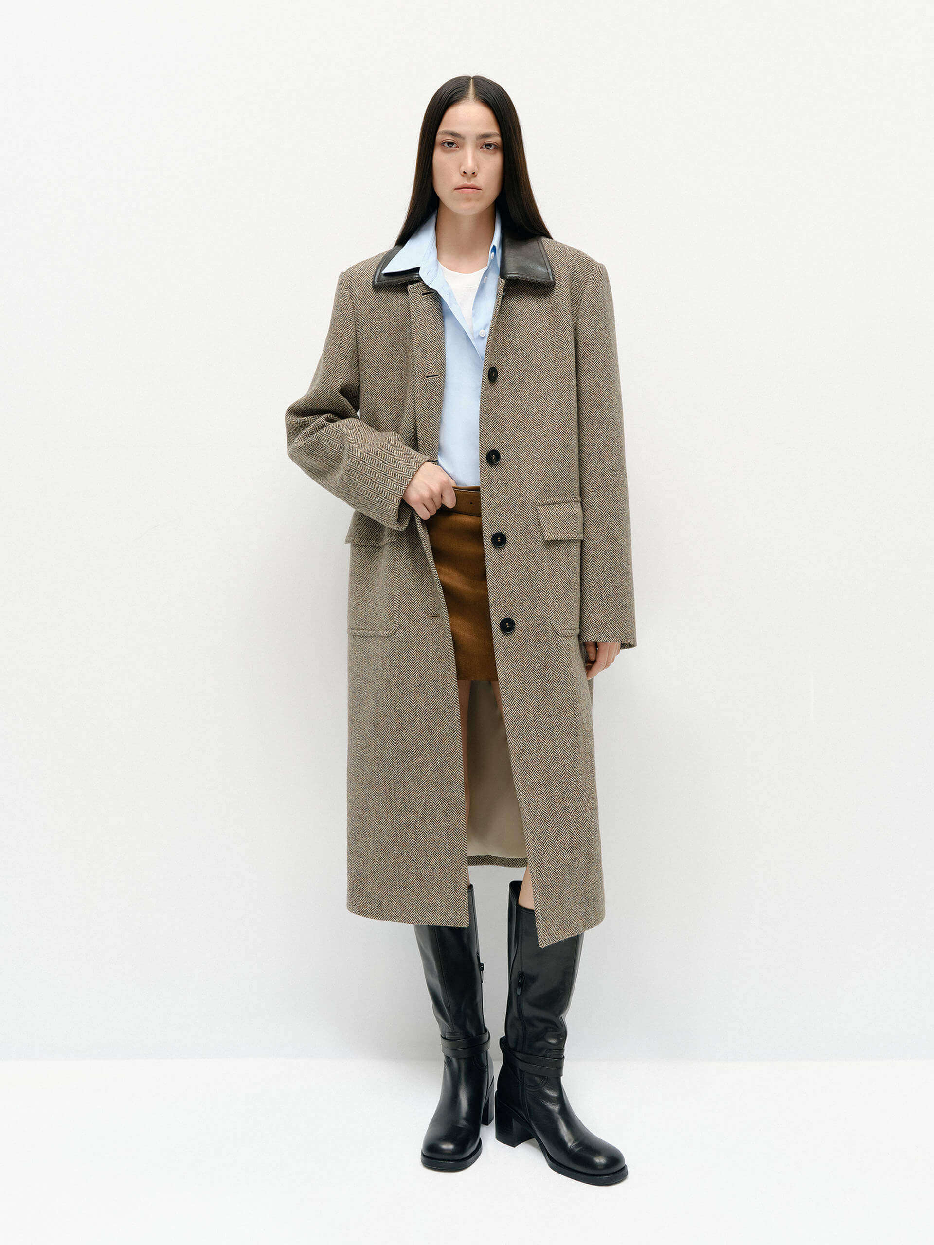 This overcoat is expertly crafted from warm wool to provide maximum warmth and comfort. Its oversized fit and longline silhouette offer a stylish and on-trend look. Featuring a sleek PU leather collar, back slit design and convenient flap pockets.
