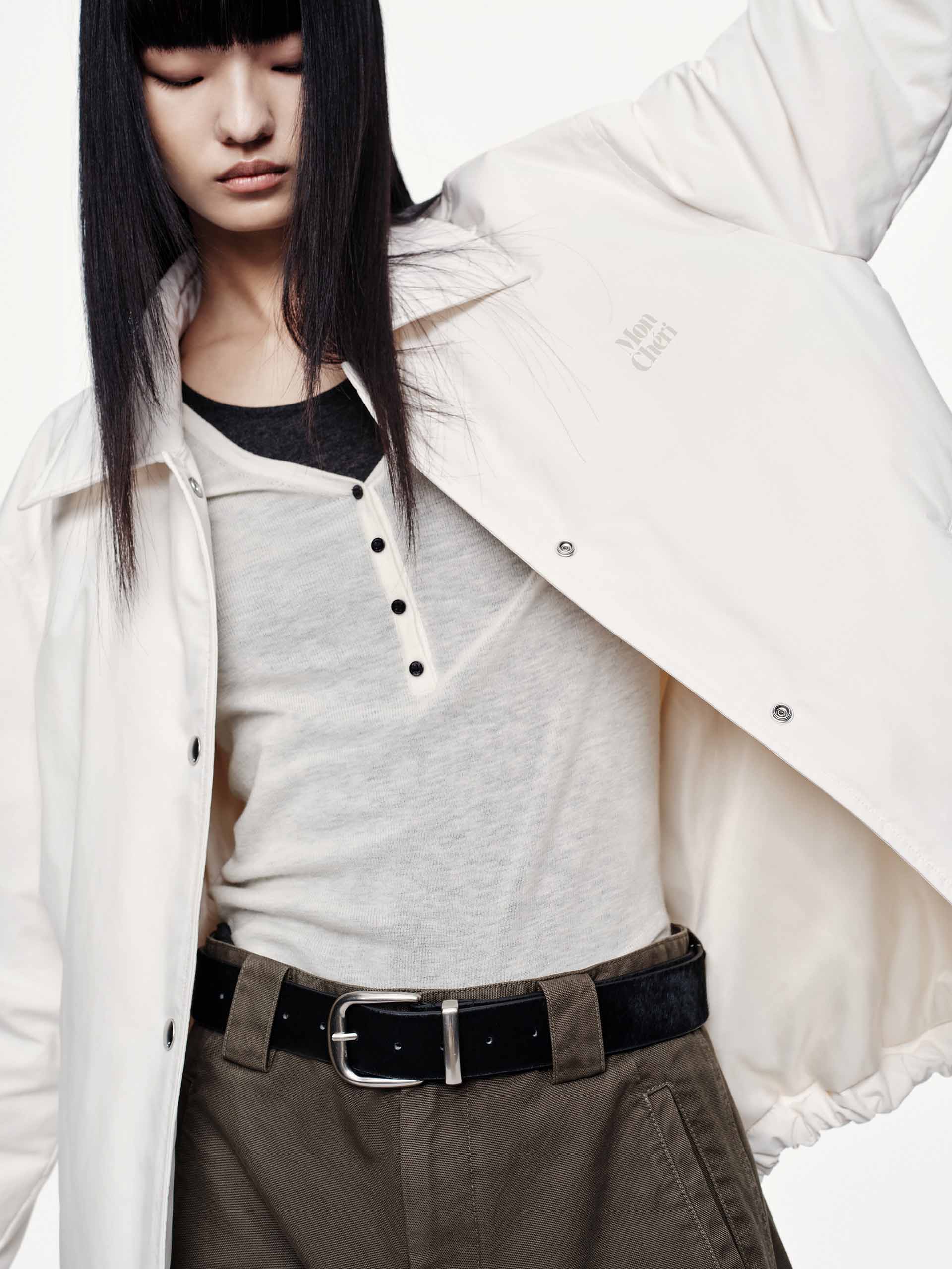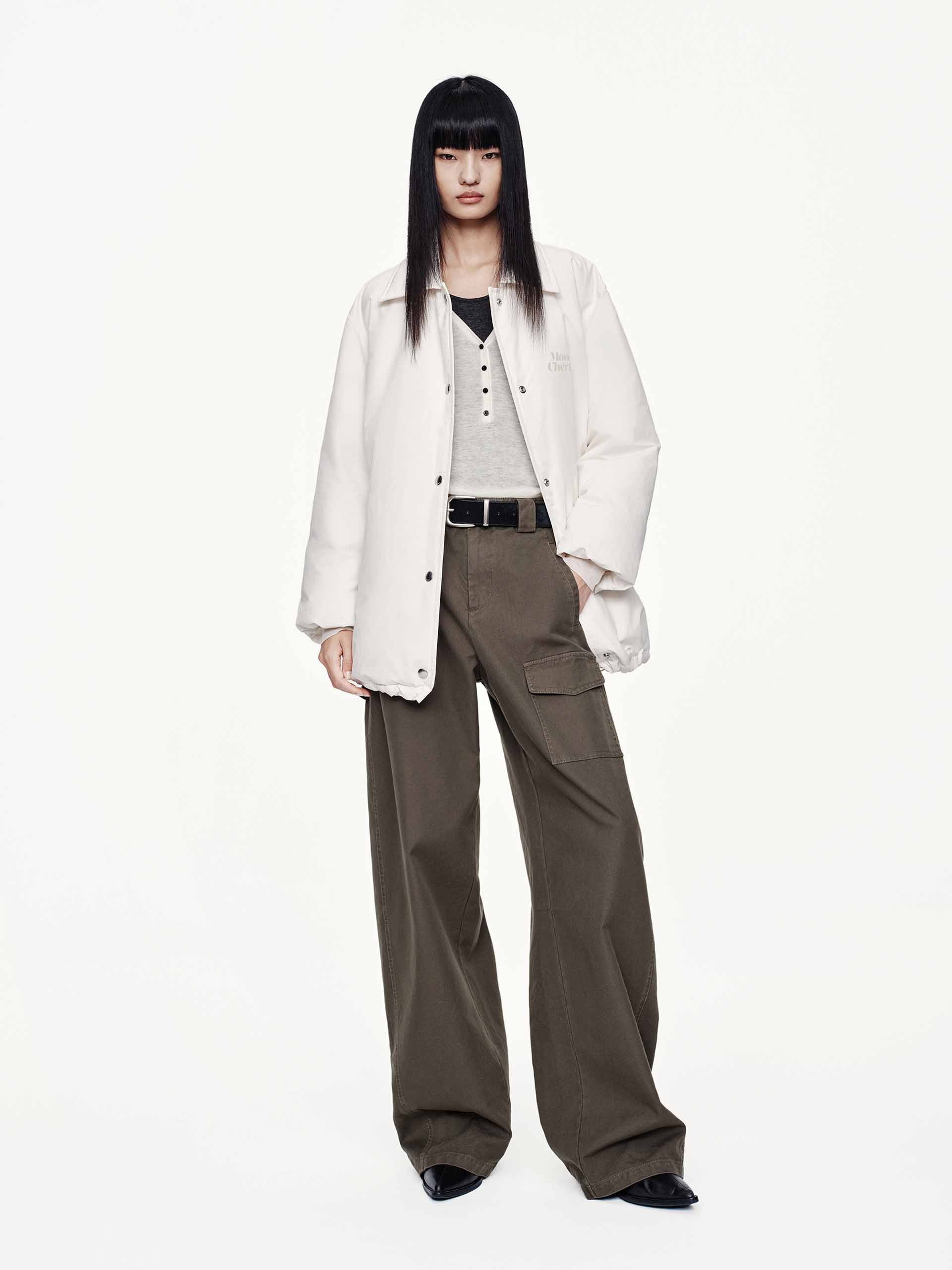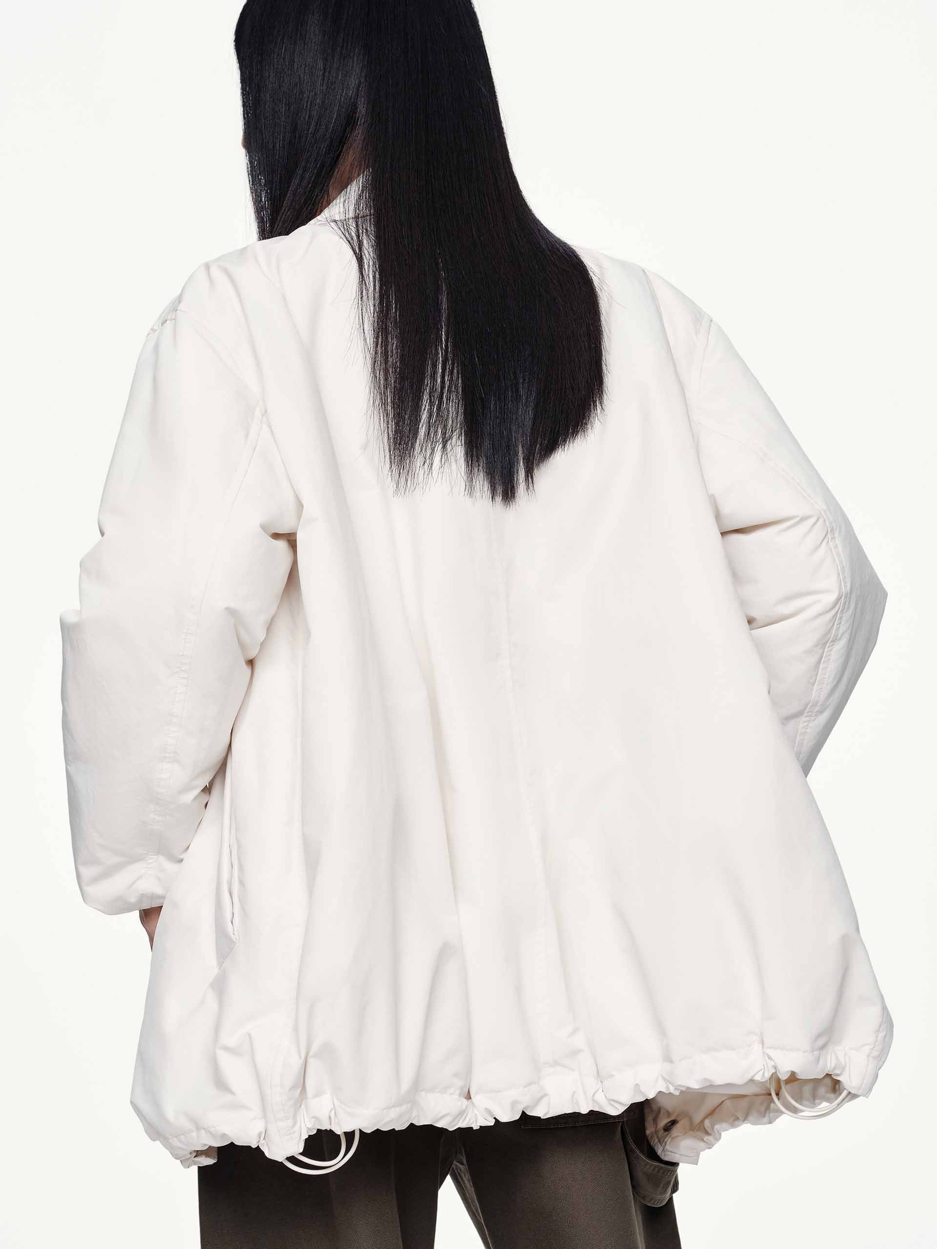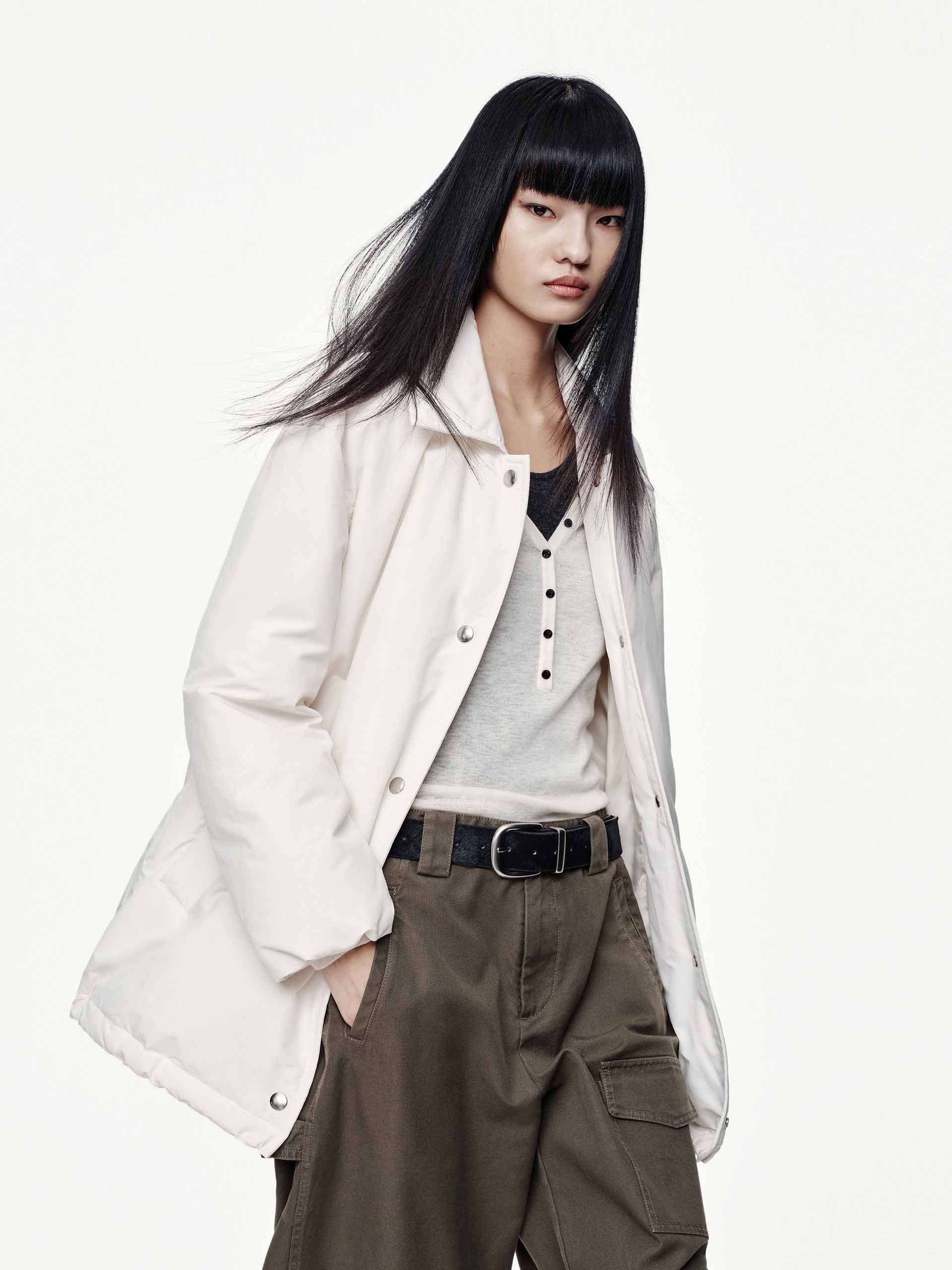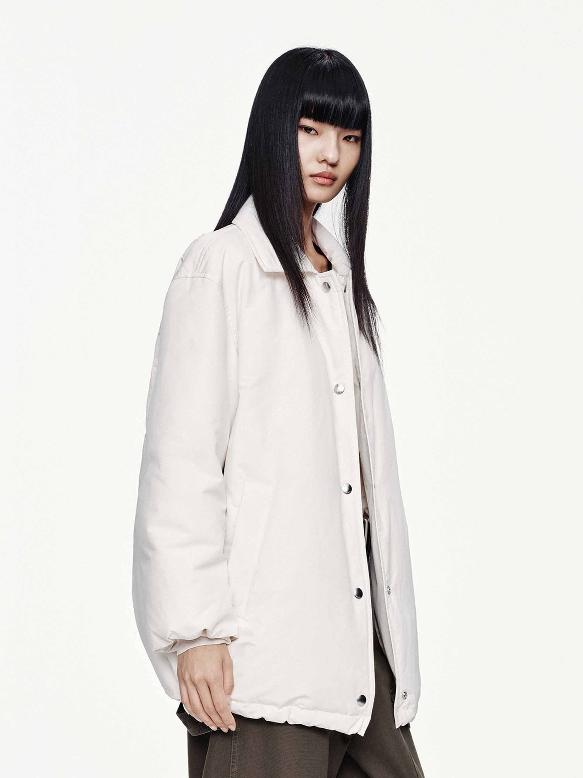 Experience the perfect blend of urban function and modern style with the down jacket. The secure snap button closure ensures wind-resistant protection and easy adjustment, while the practical drawstring detail at the hem allows you to customize the fit for added warmth or a more tailored look. Functional side pockets provide convenient storage.