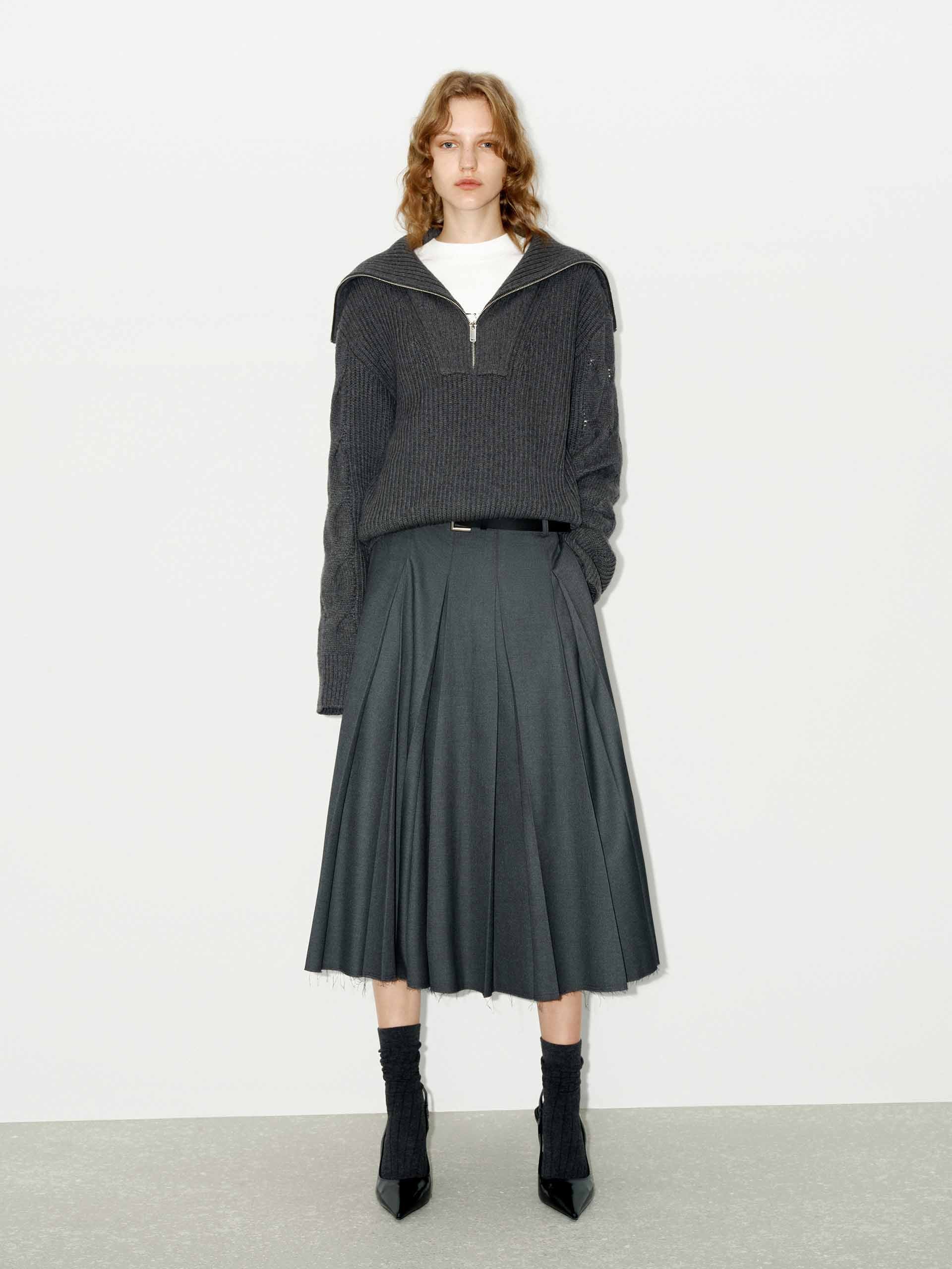 - Ribbed and cable knit textured