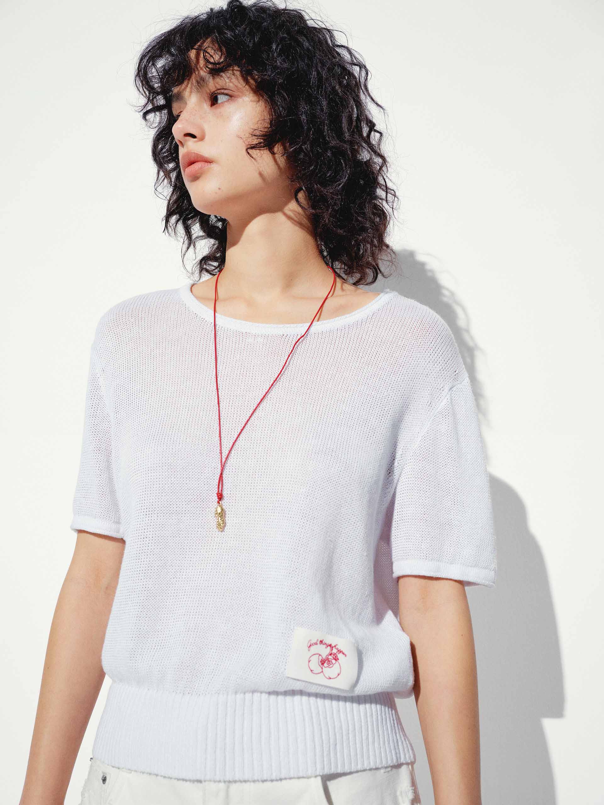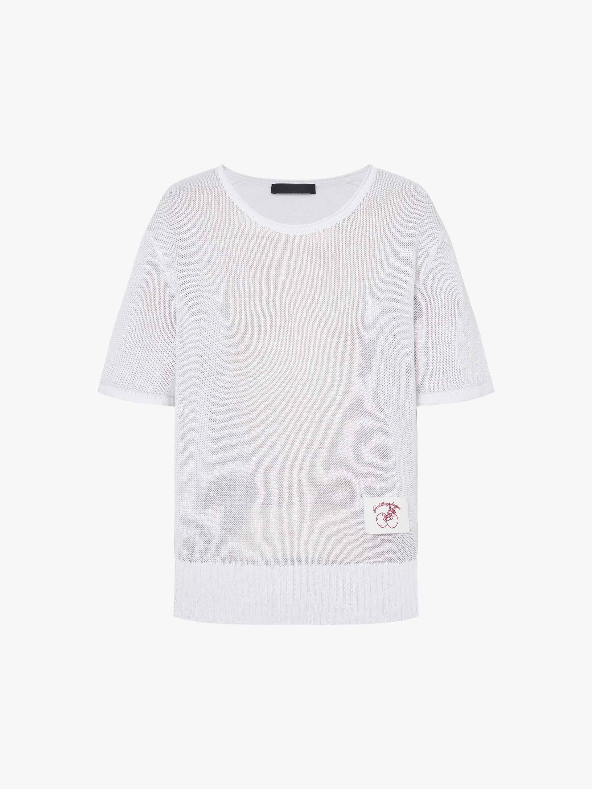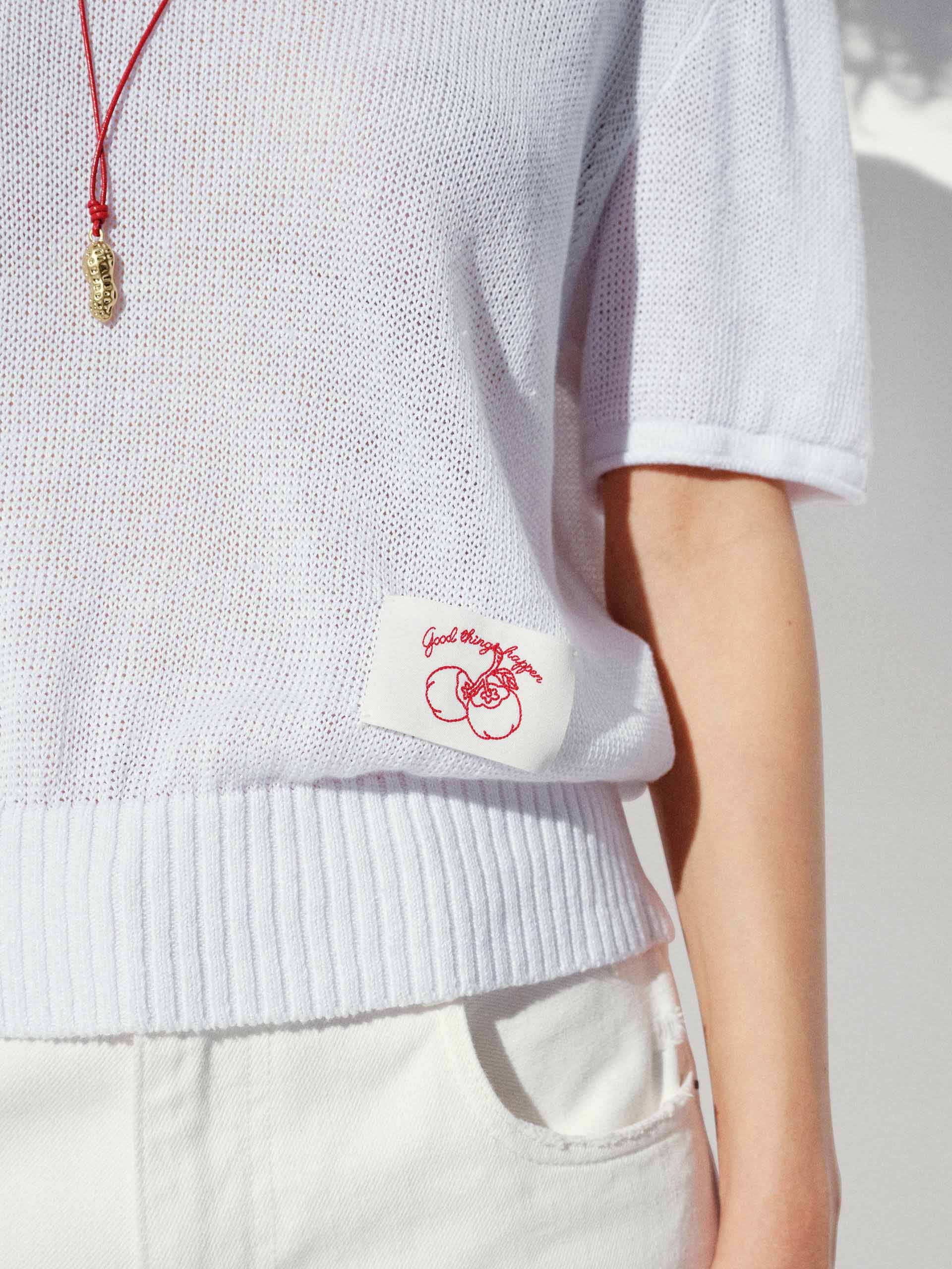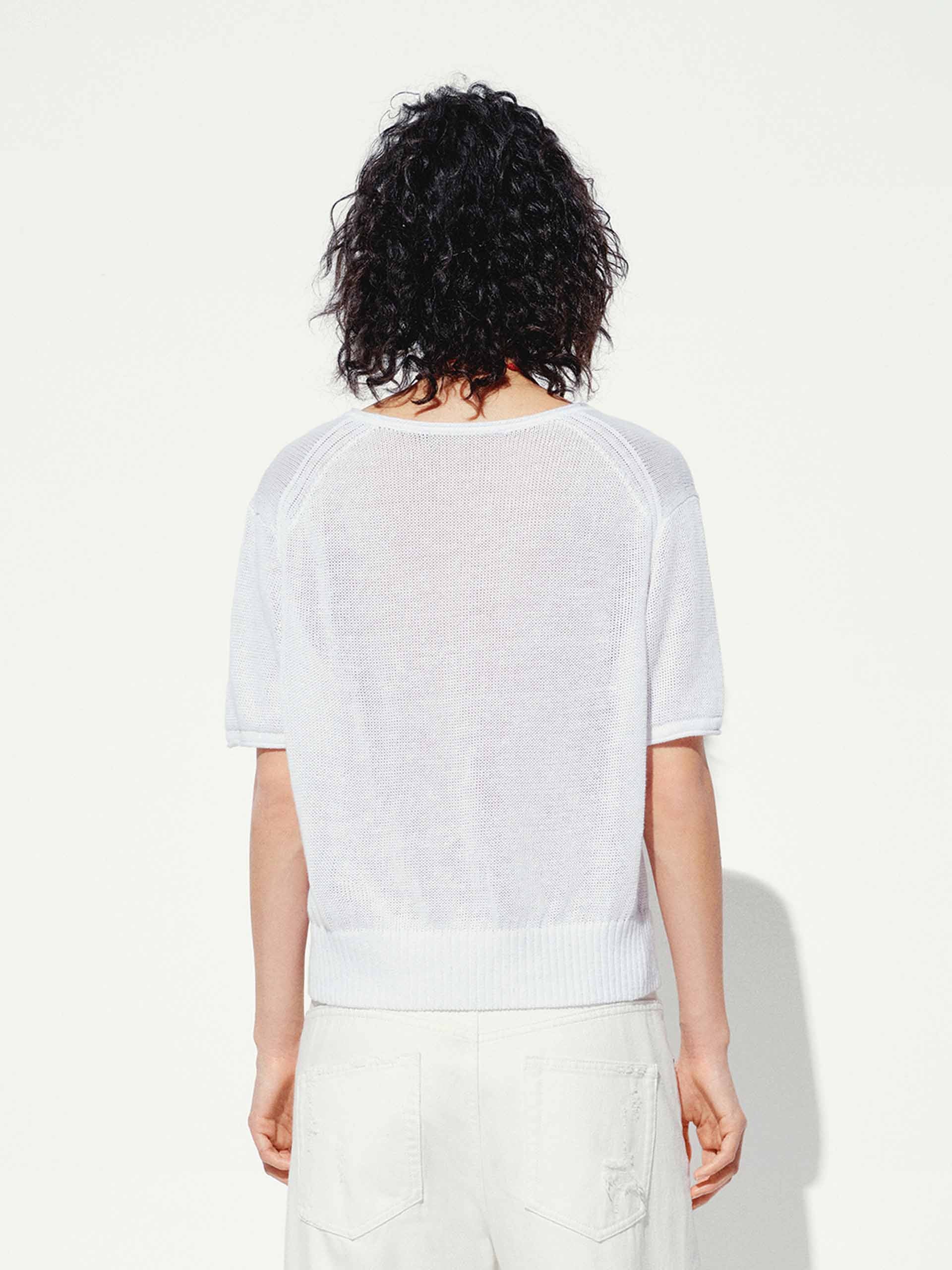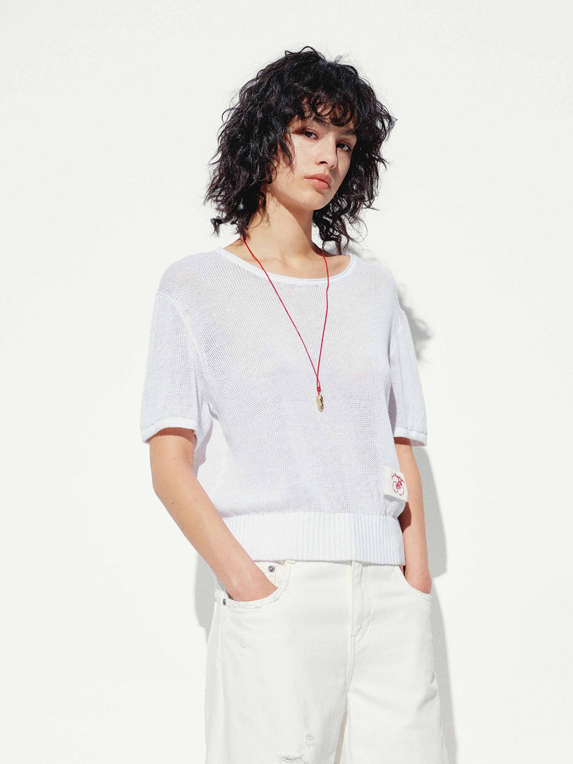 Experience breezy sophistication with our knitted top, crafted from a premium linen cotton blend for exceptional breathability and softness. The regular fit ensures comfortable ease, while the classic round neck and short sleeves offer timeless versatility for any occasion. From the delicate woven label embroidery that adds a touch of refined charm to the ribbed hem that elevates this top.