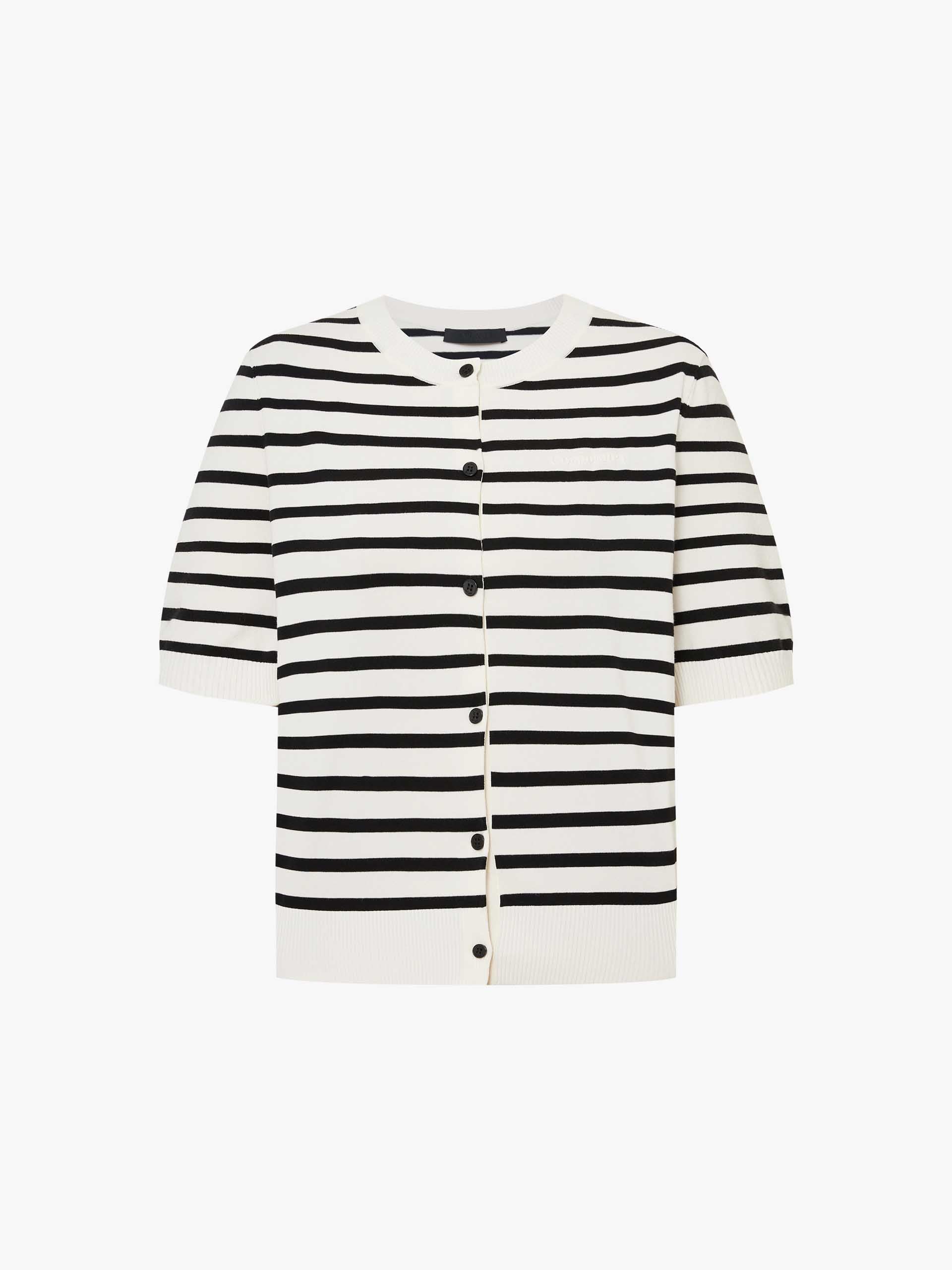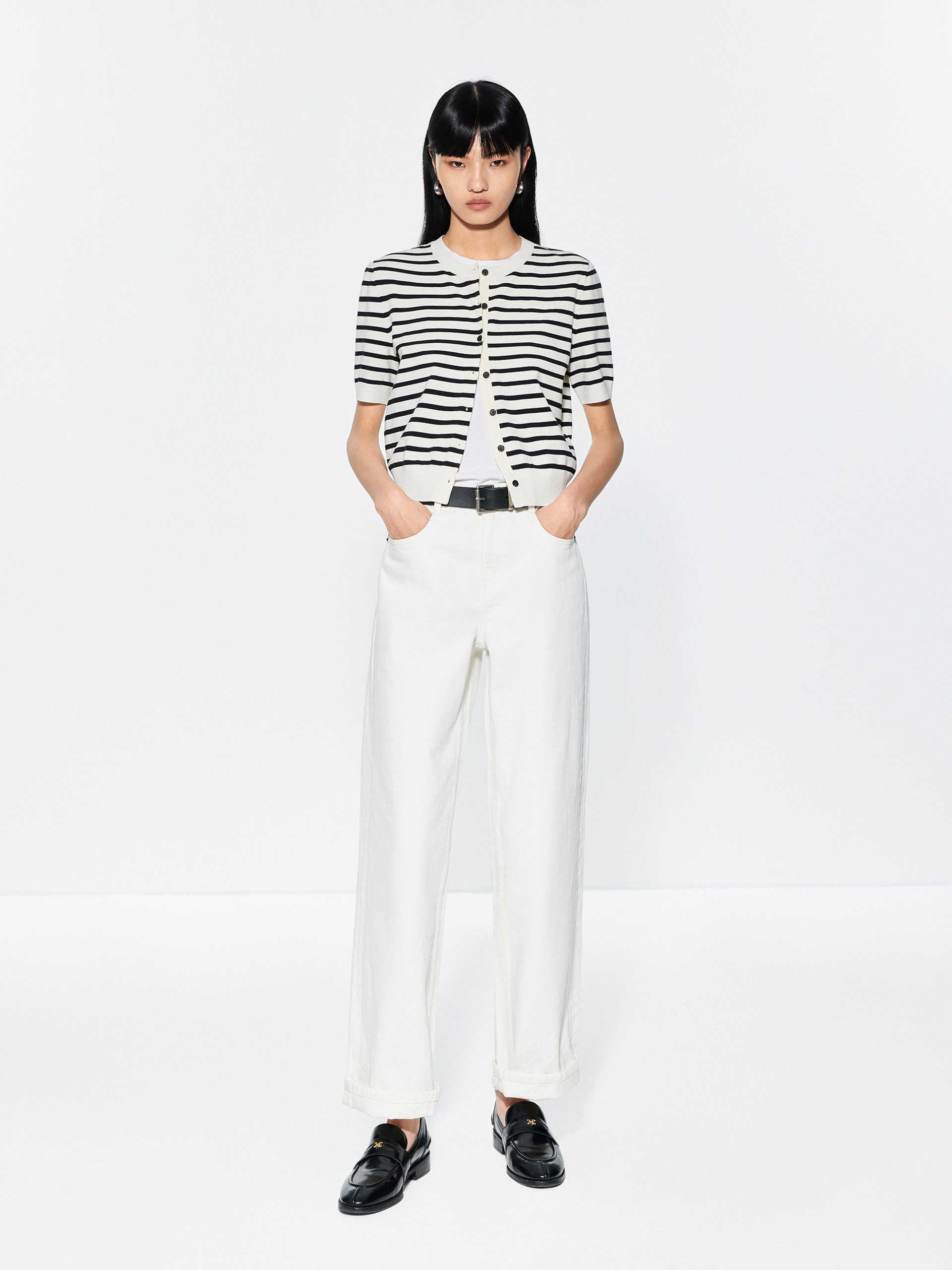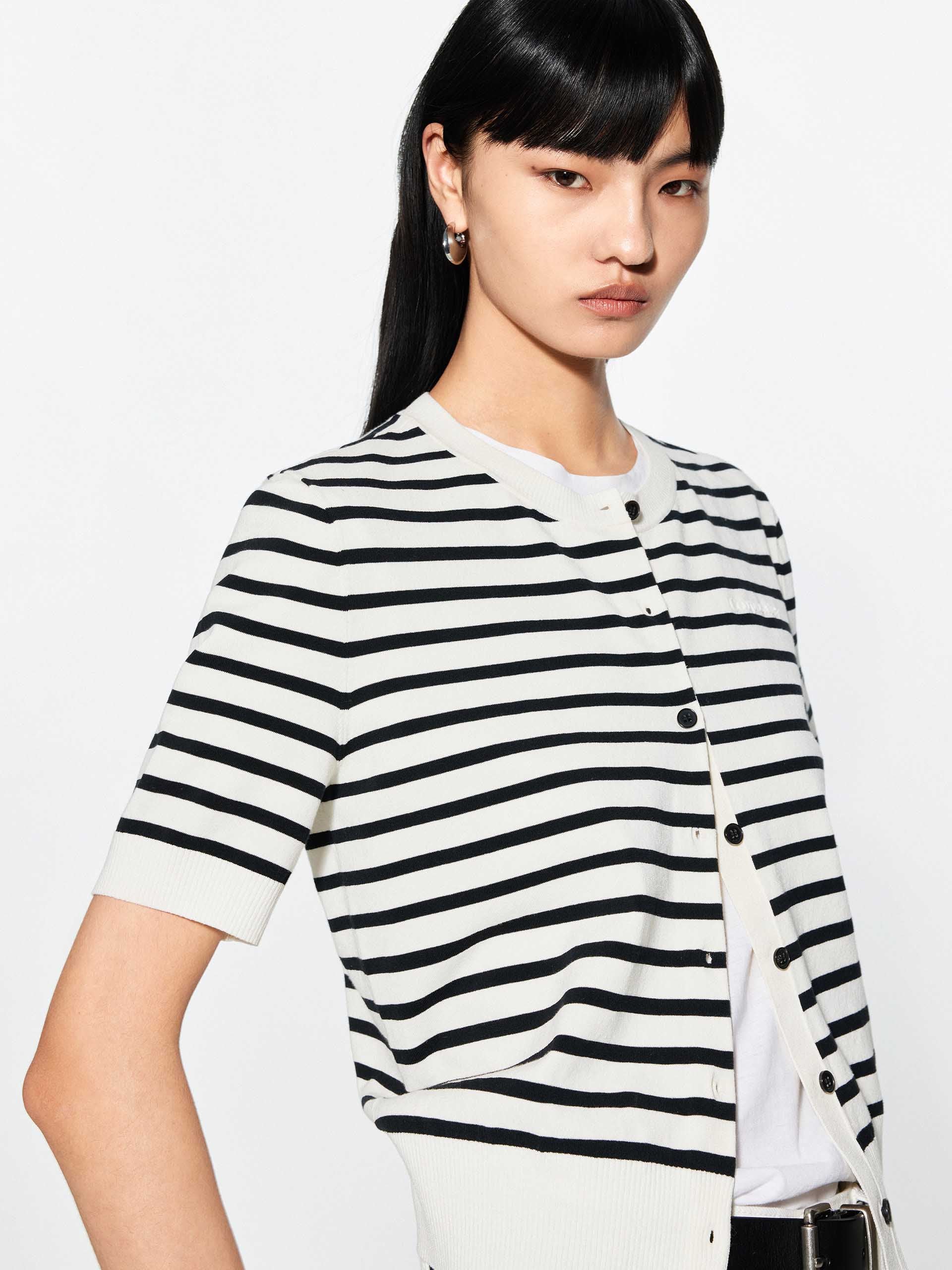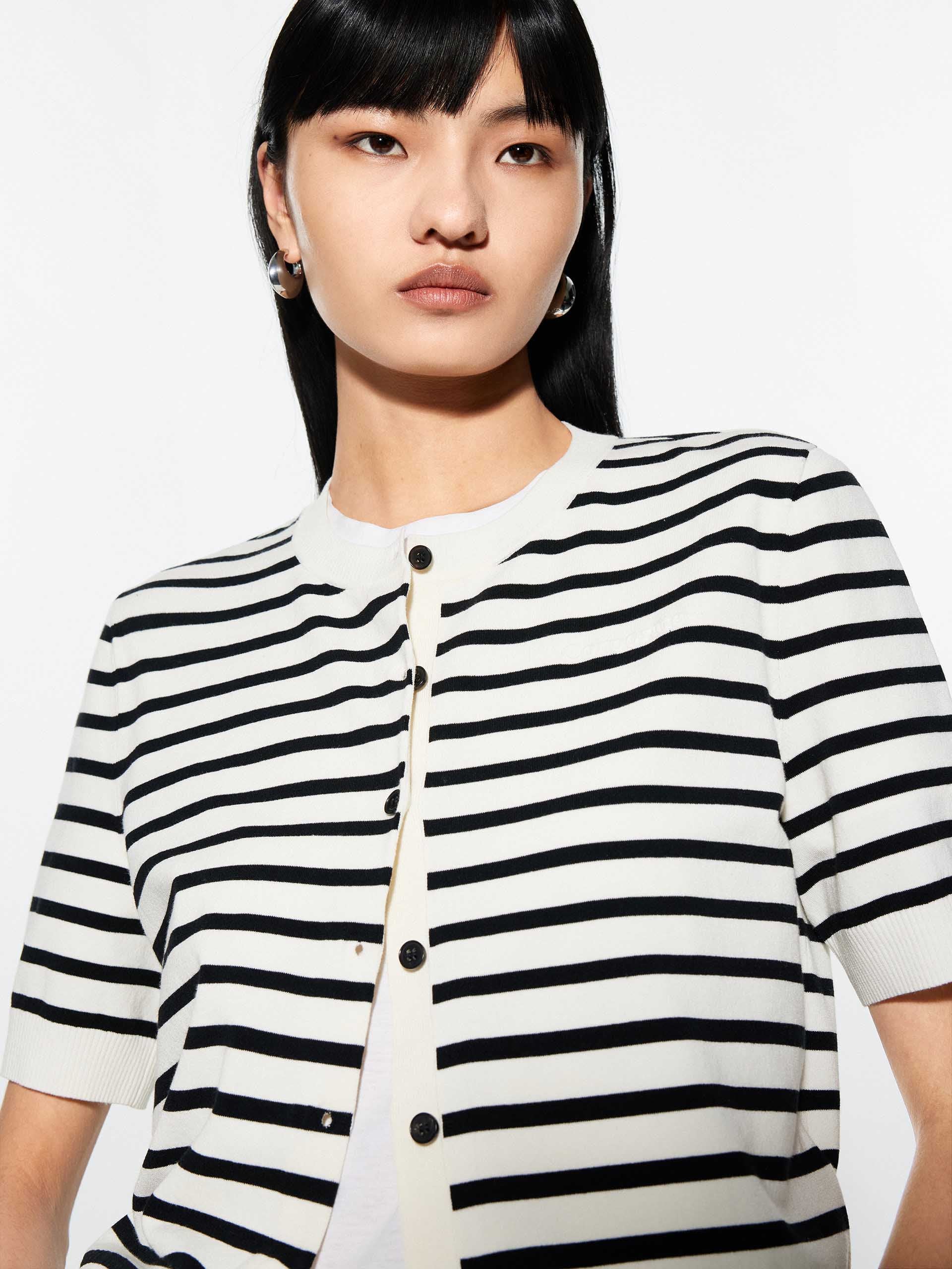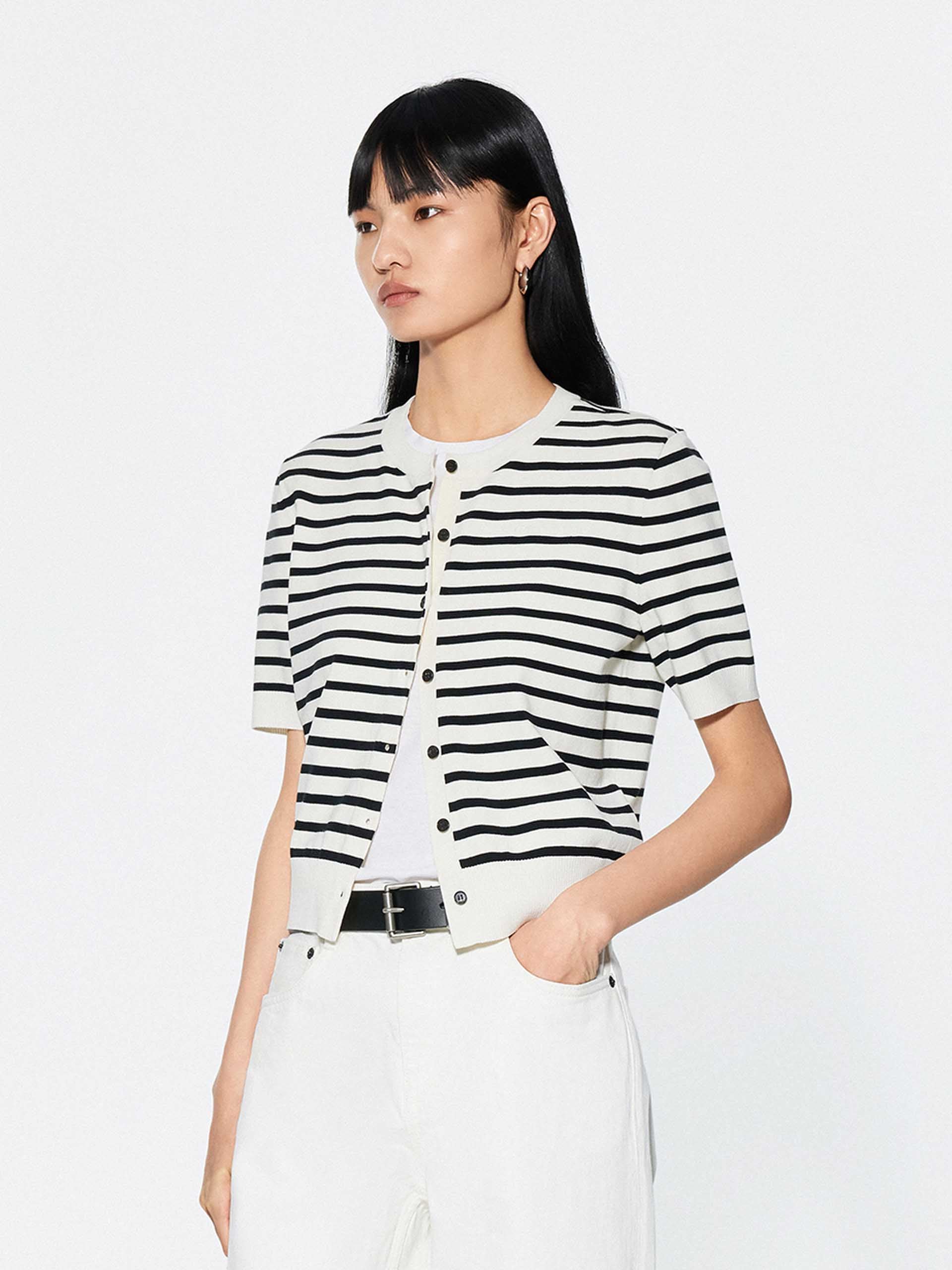 Elevate your casual wardrobe with this striped knit cardigan designed for modern city life. Crafted from cotton blend fabric, it offers lightweight warmth and all-day comfort. The striped design flatters every figure, while the round neck layer effortlessly goes with tanks.