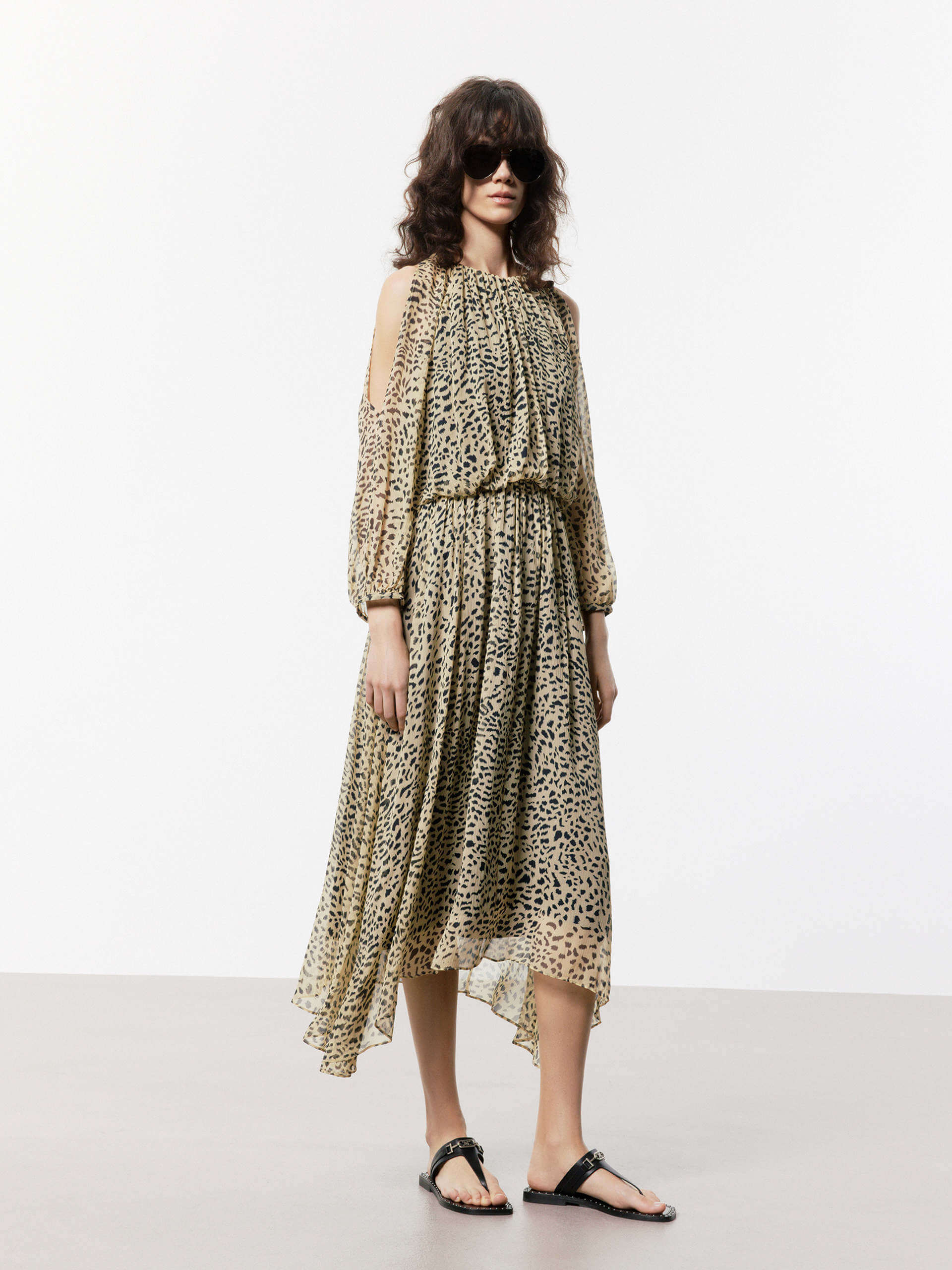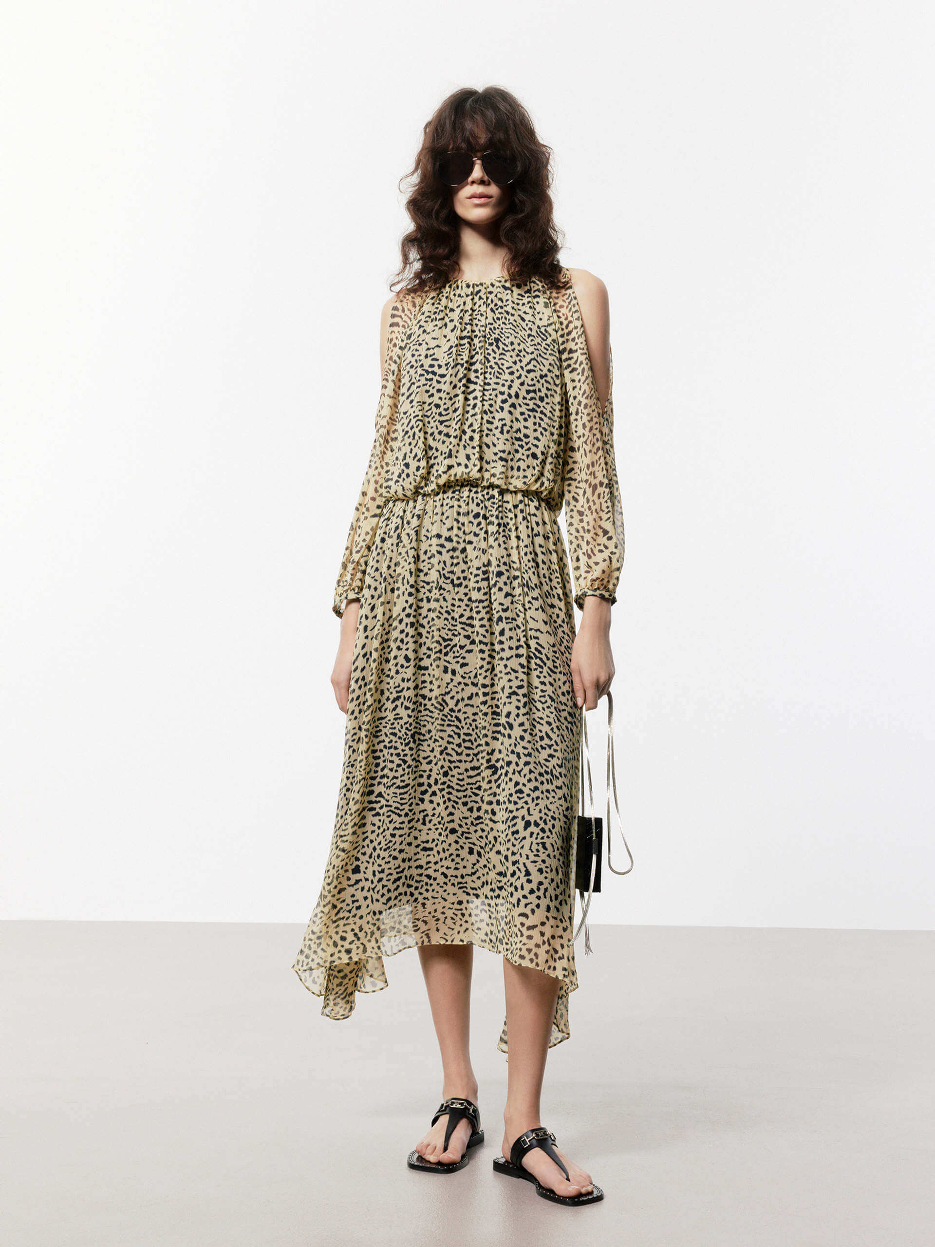 - Flowy irregular hem, midi silhouette