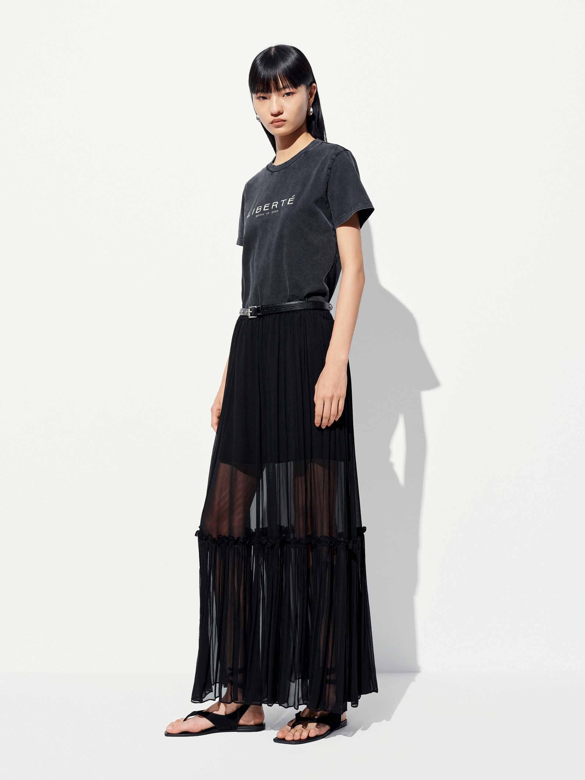 MO&Co. Women's Cotton Round Neck Letter T-shirt