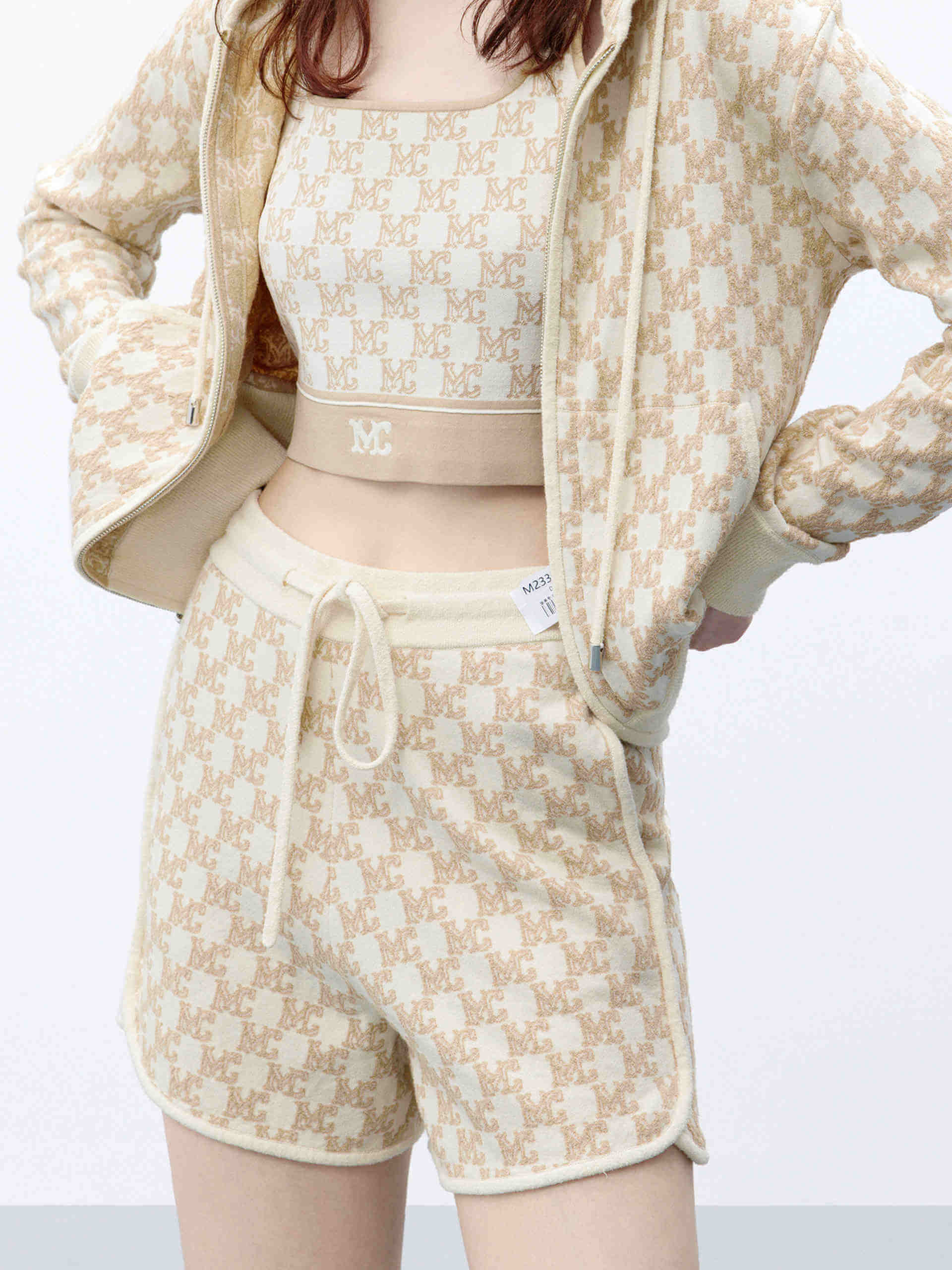 Our shorts are the perfect piece to complete a refined autumn look. Featuring a drawstring waist for an adjustable fit and a stylish “MC” monogram, these shorts add the perfect touch of flair. With slanted pockets for convenience, you'll look and feel your best. Shop the matching tank top and cardigan for the complete ensemble!