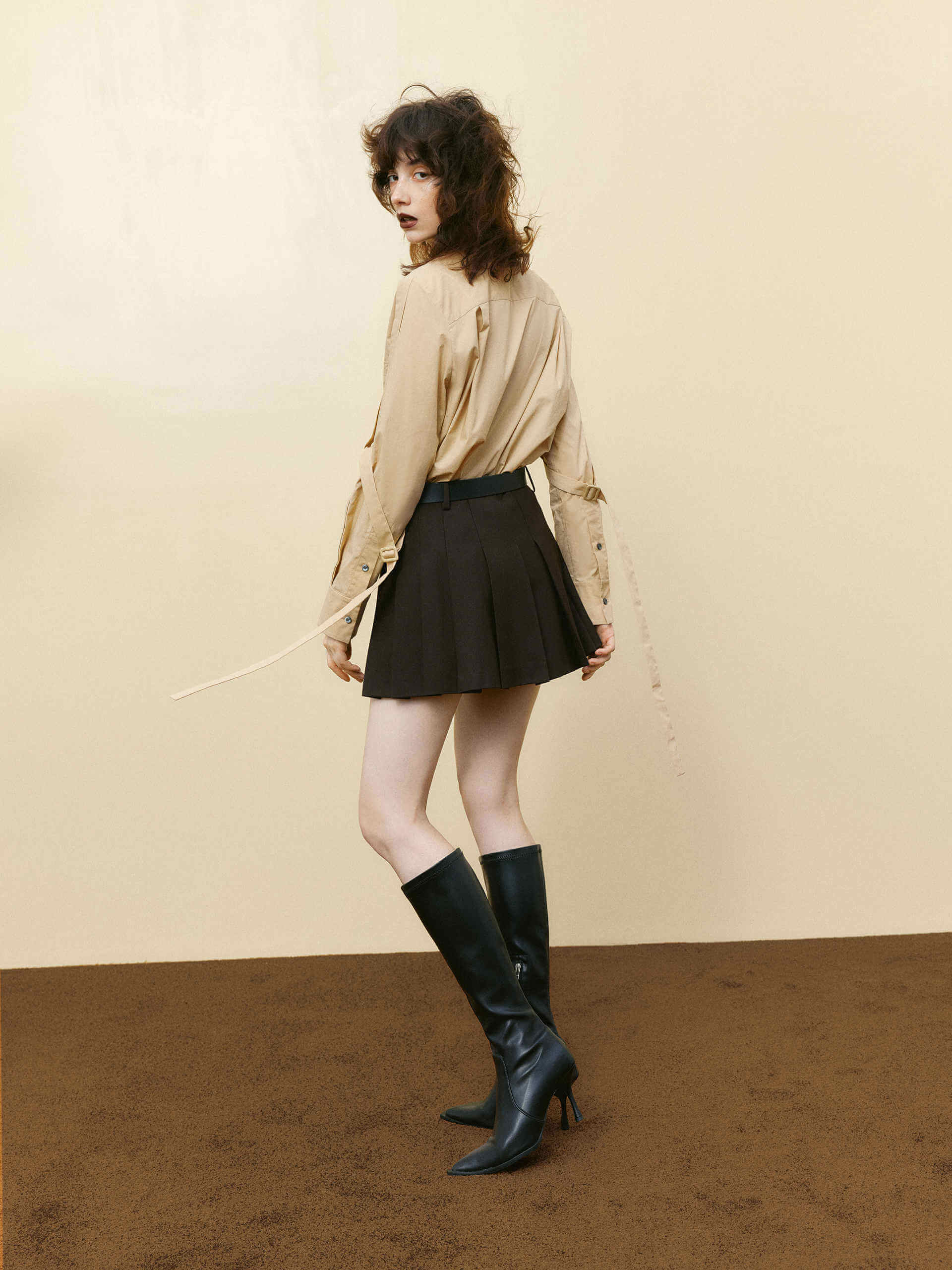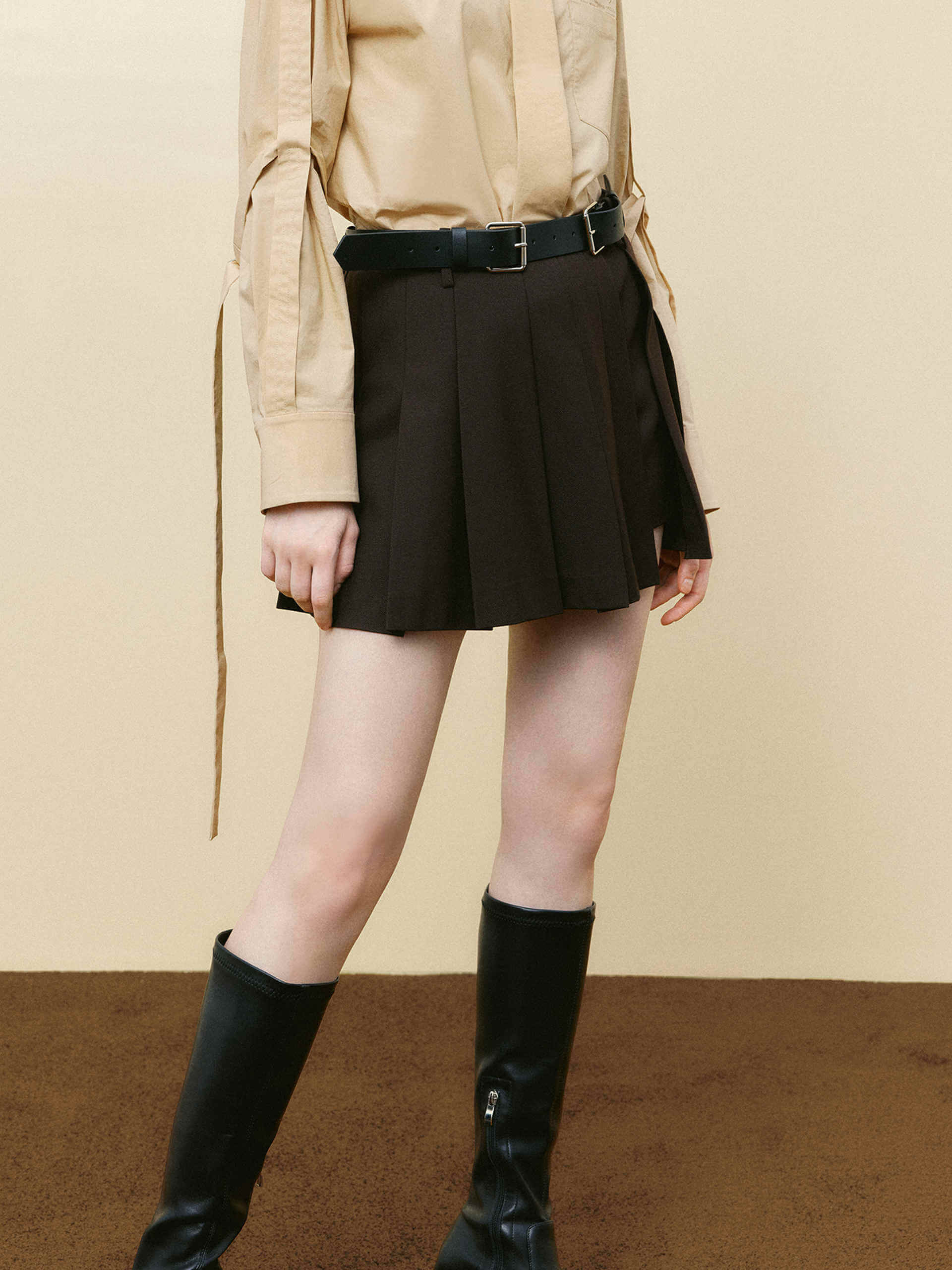 Elevate your wardrobe with a sophisticated and ultra-chic piece from a collaboration between MO&Co. and Rokh. Crafted with a luxurious blend of wool, this irregular pleated skirt boasts a creative, unexpected silhouette with a mini length and inner shorts.