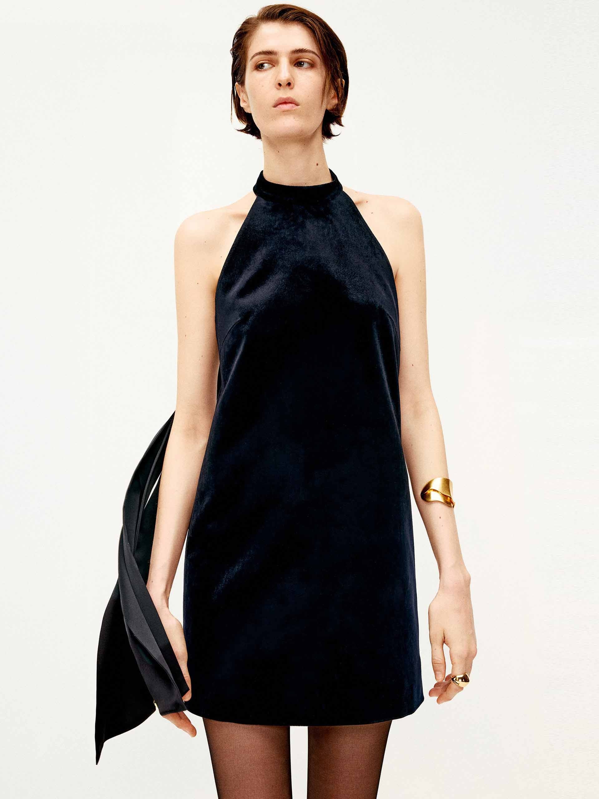 - Halterneck, backless, back tie design