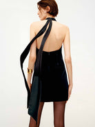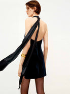 Backless Tie Detail Velvet Dress