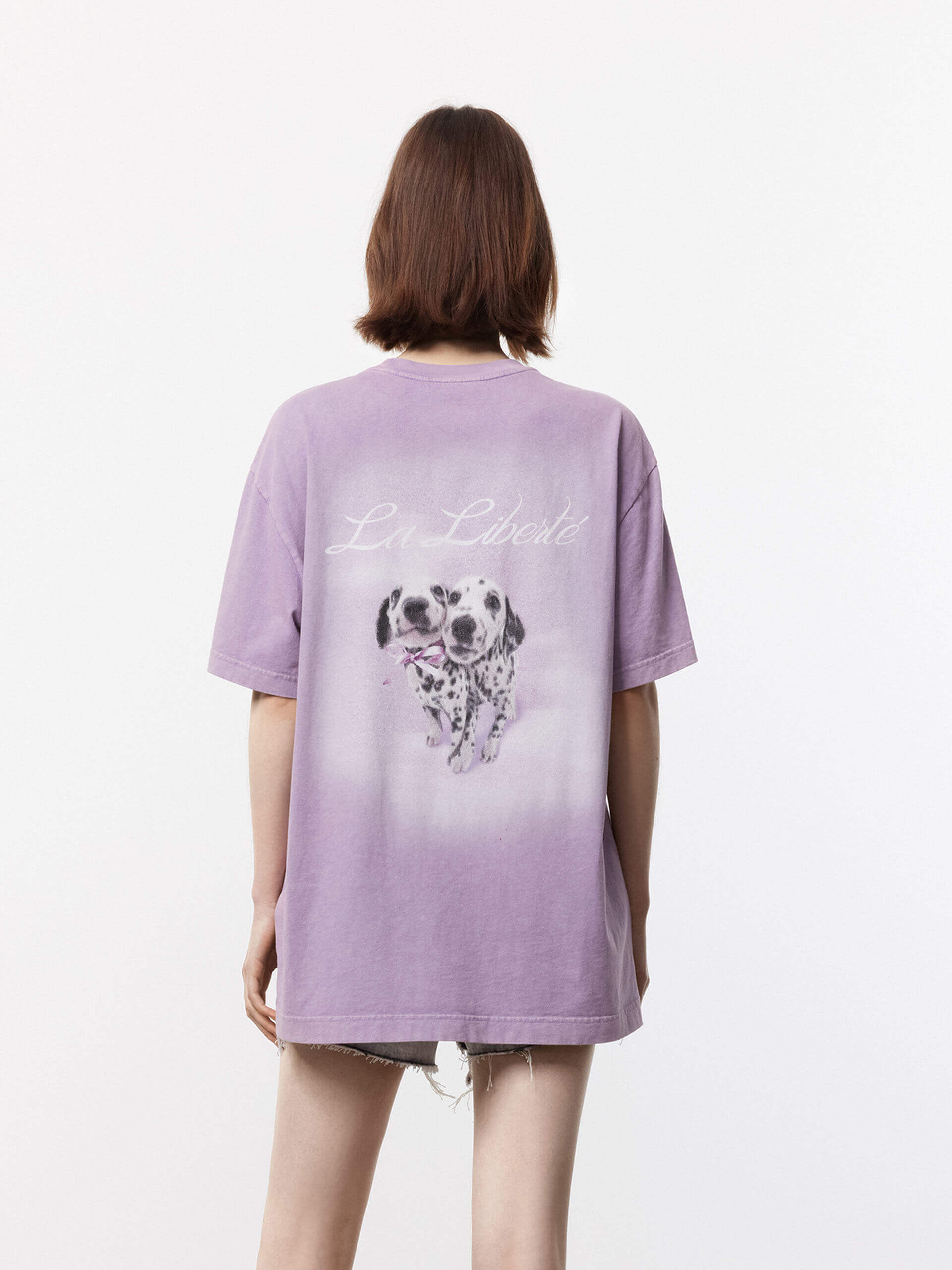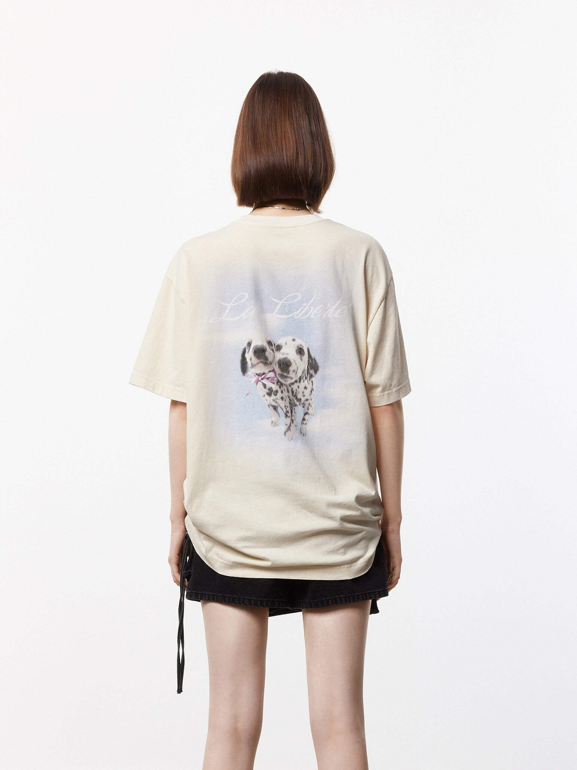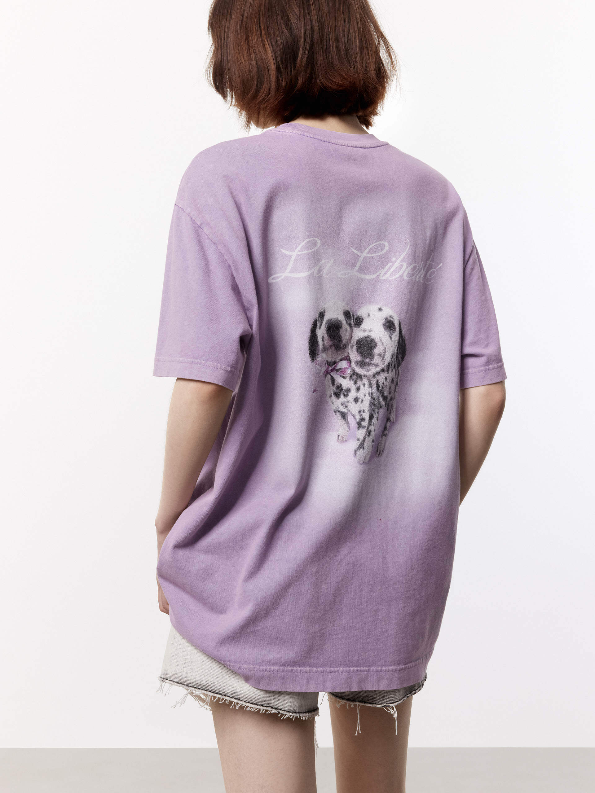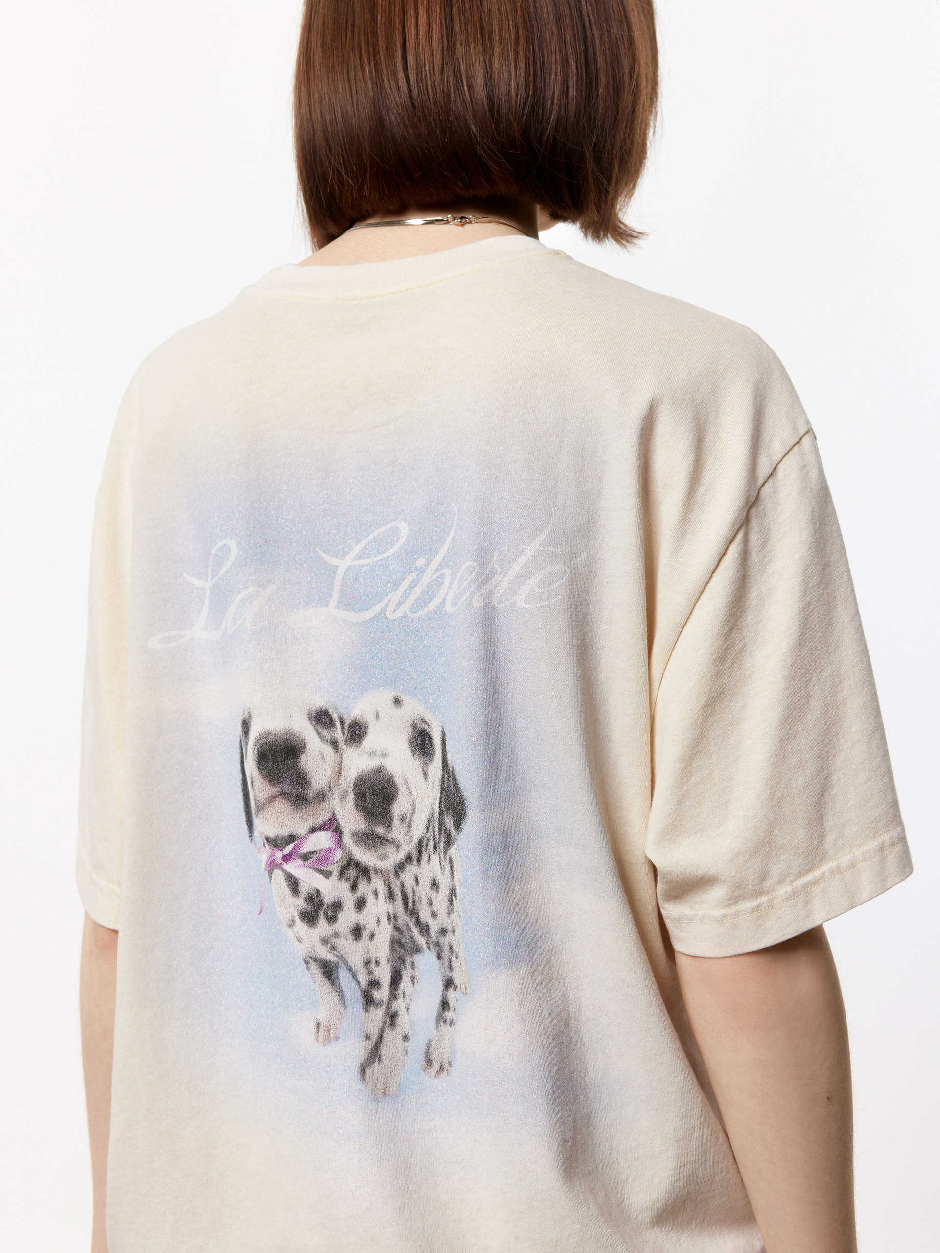 This playful T-shirt is perfect for anyone looking to add a little fun to their wardrobe. Made from a soft cotton fabric and garment washed for a vintage look, this shirt offers a comfortable and relaxed fit. The Dalmatian print on the back adds a touch of whimsy to any outfit. Pair with shorts for a casual style.