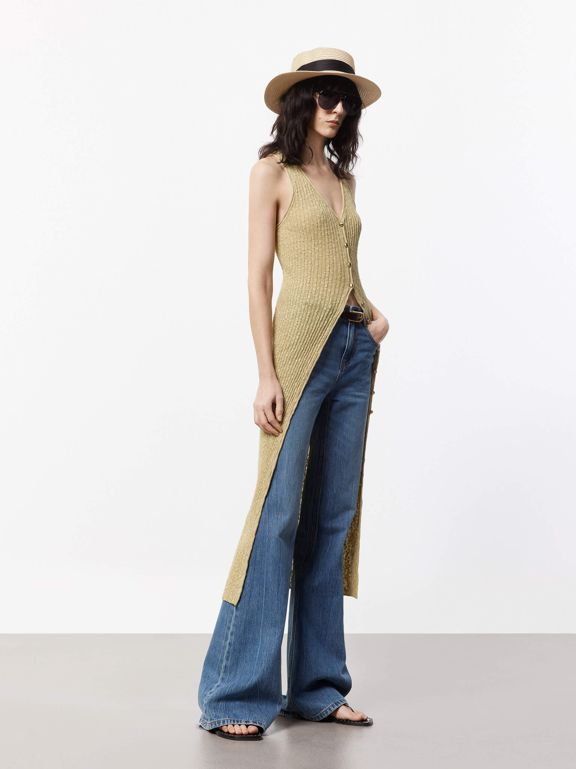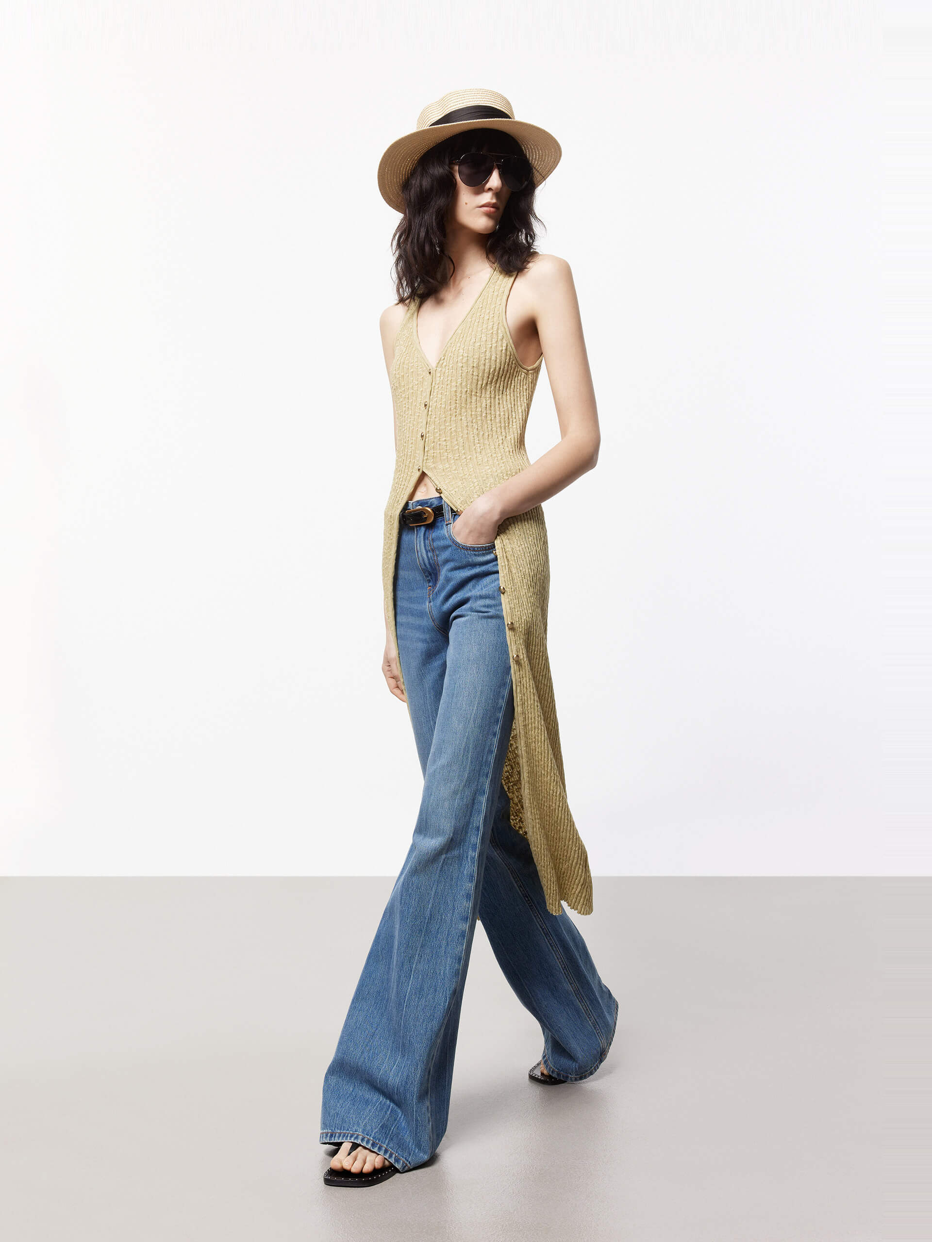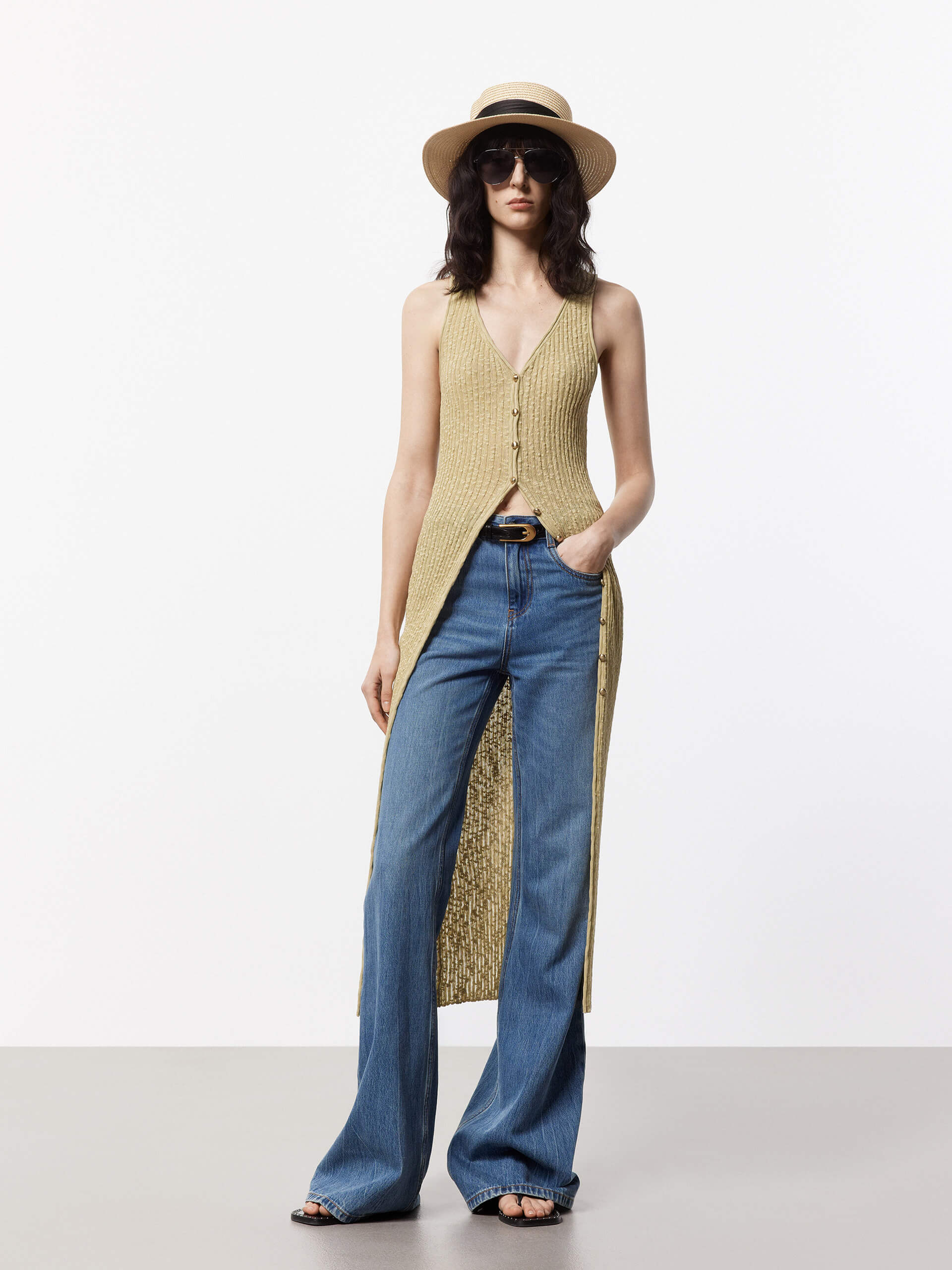 This cardigan is made from 100% cotton, making it soft and comfortable to wear. Feature V-neckline adds a feminine touch, while the texture and vintage metal buttons give it a unique and stylish look. The lone line cut and slim fit create a flattering silhouette, making this cardigan a versatile piece. Pair with high-waist jeans for a stylish look.