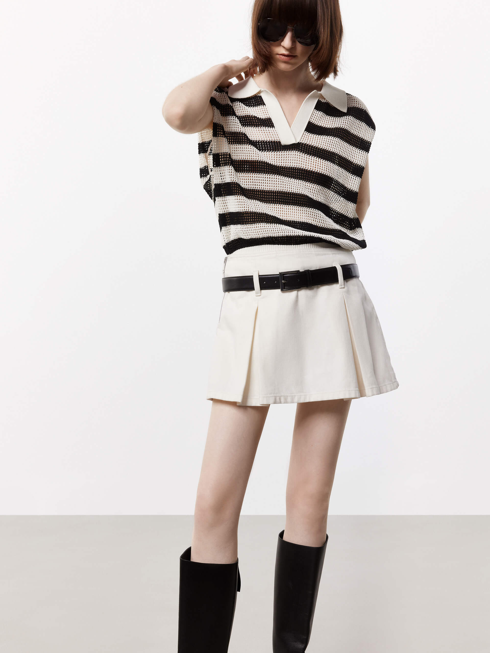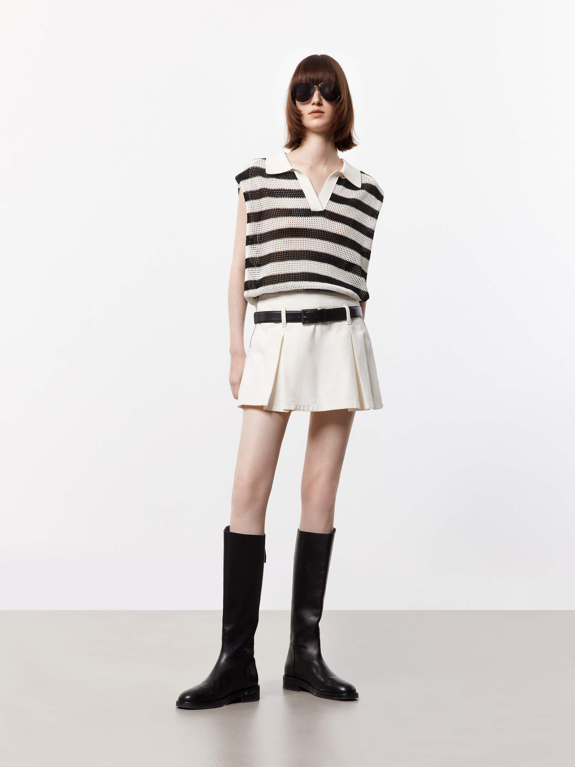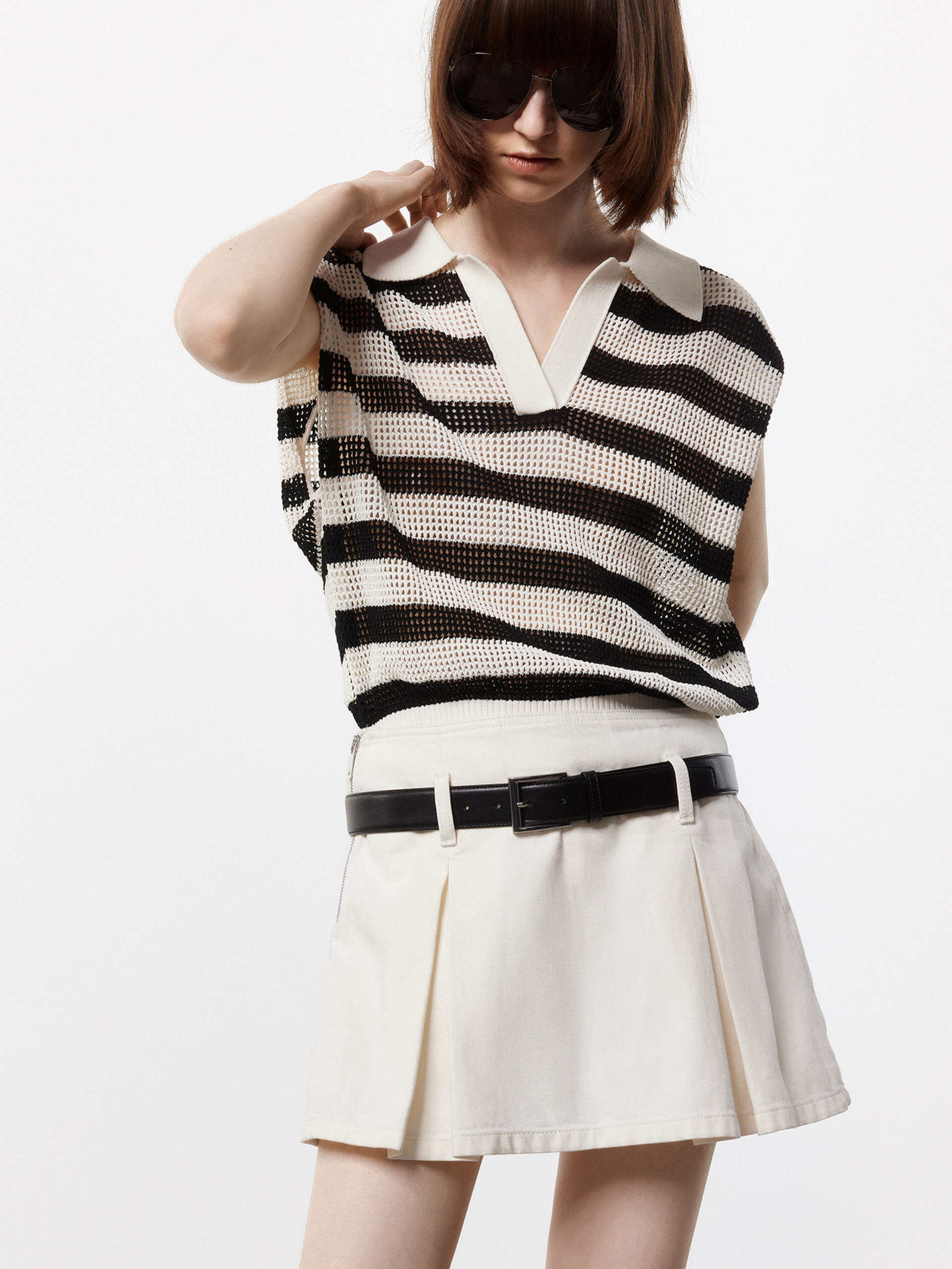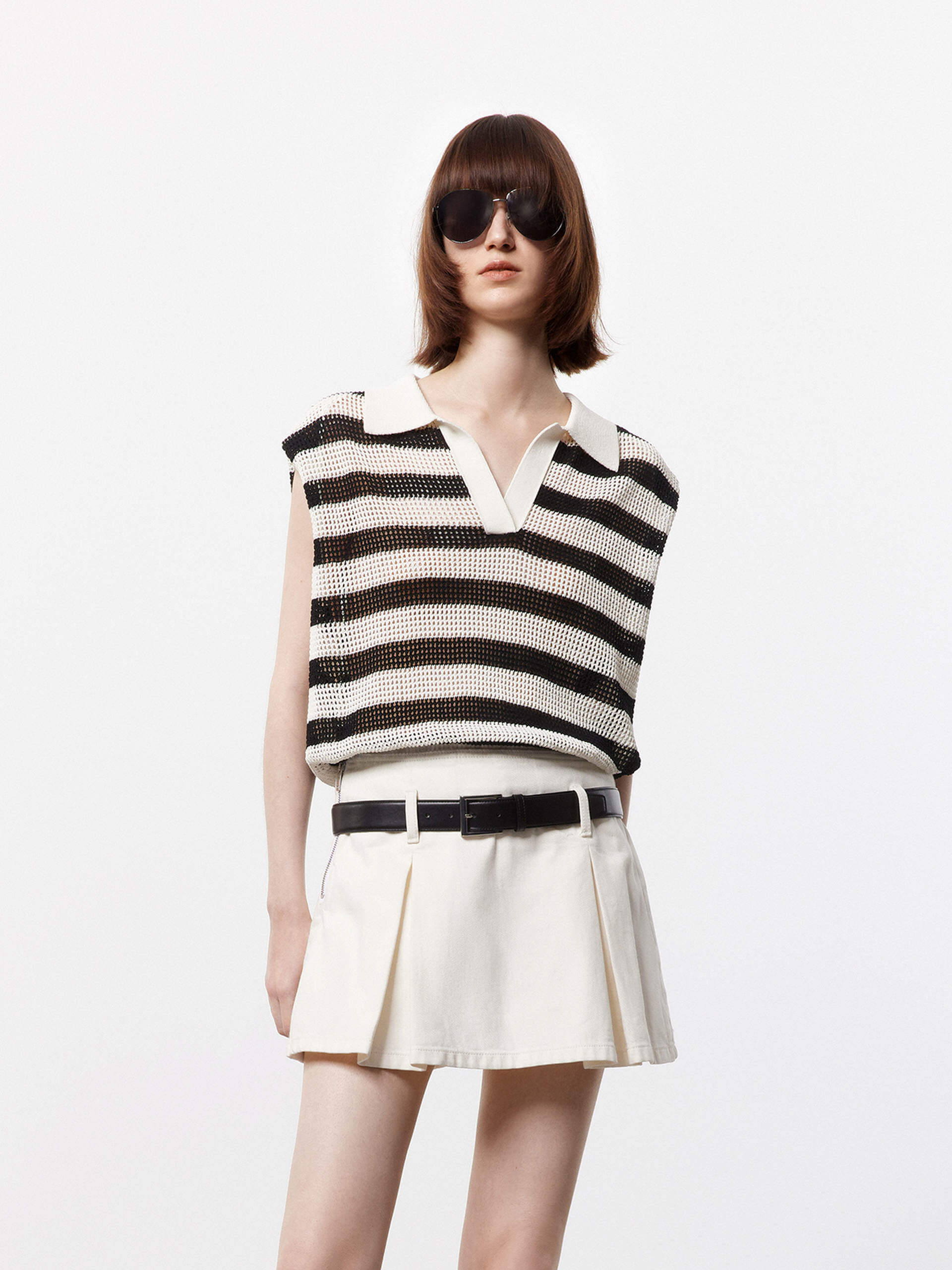 - Polo collar and sleeveless, ribbed trim hem
