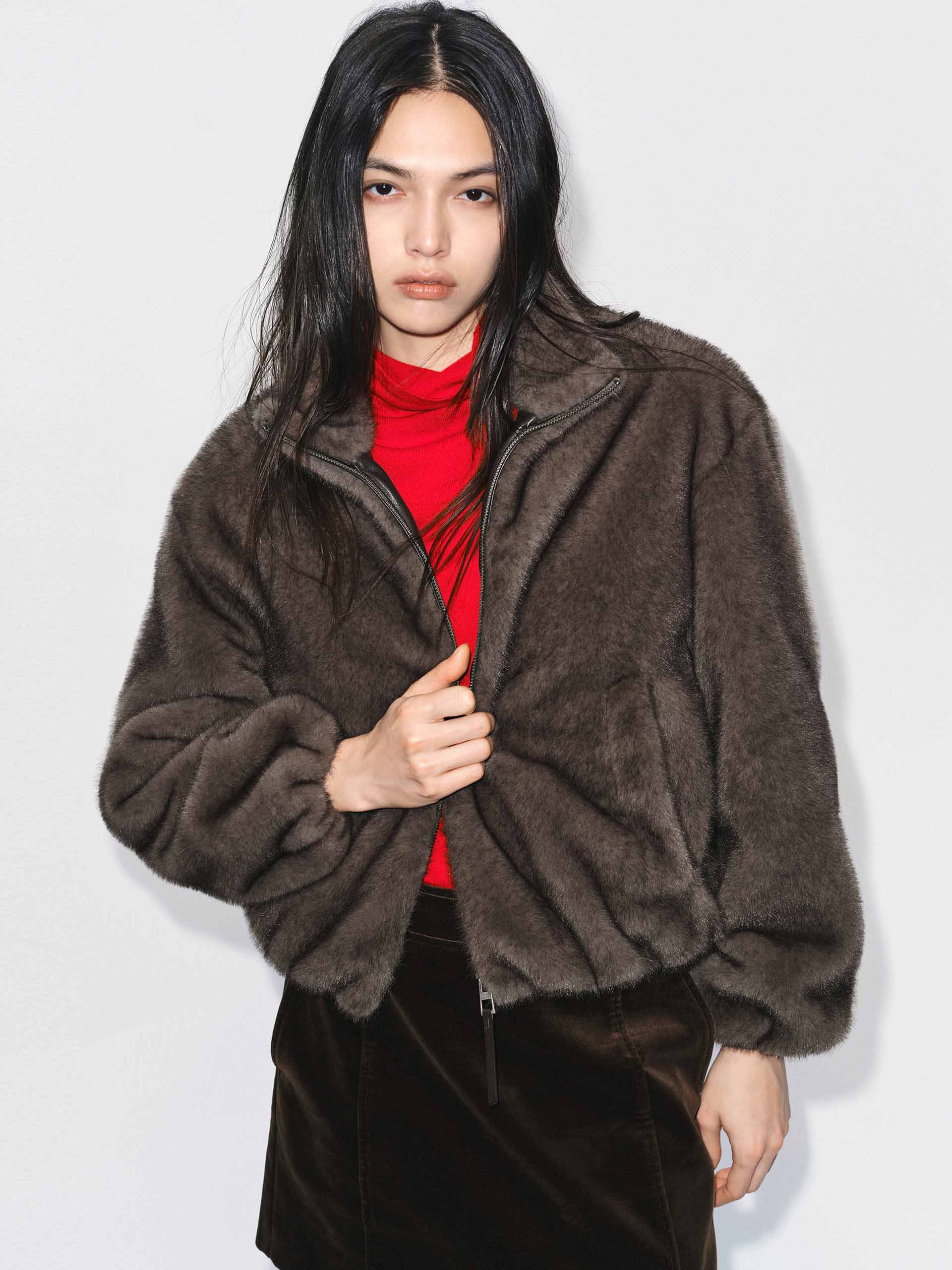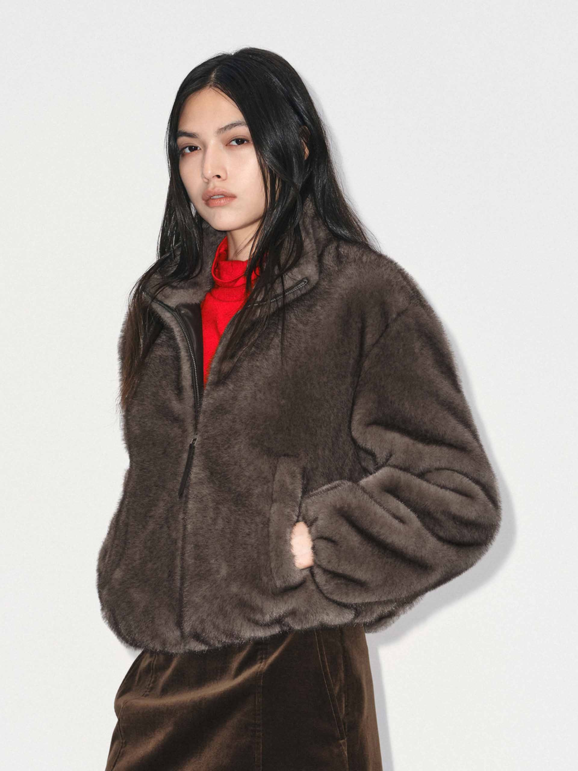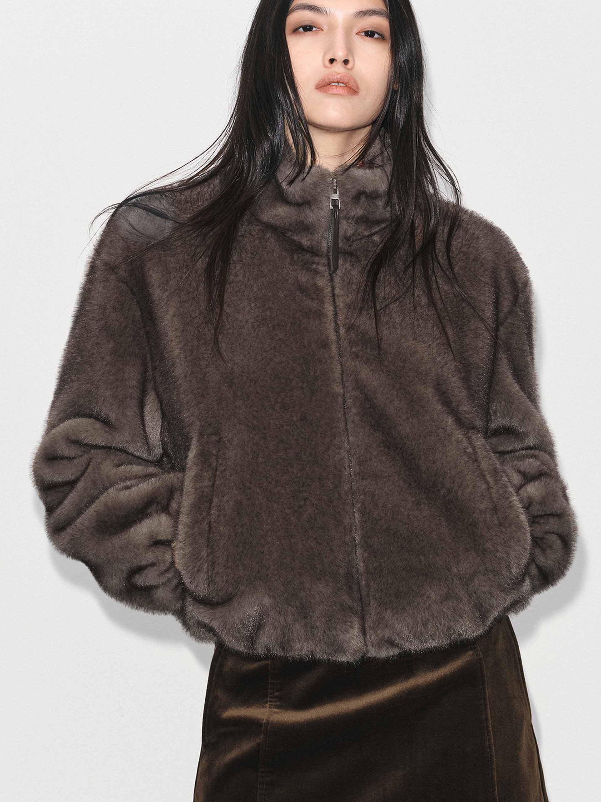 Cropped Fit Faux Fur Coat