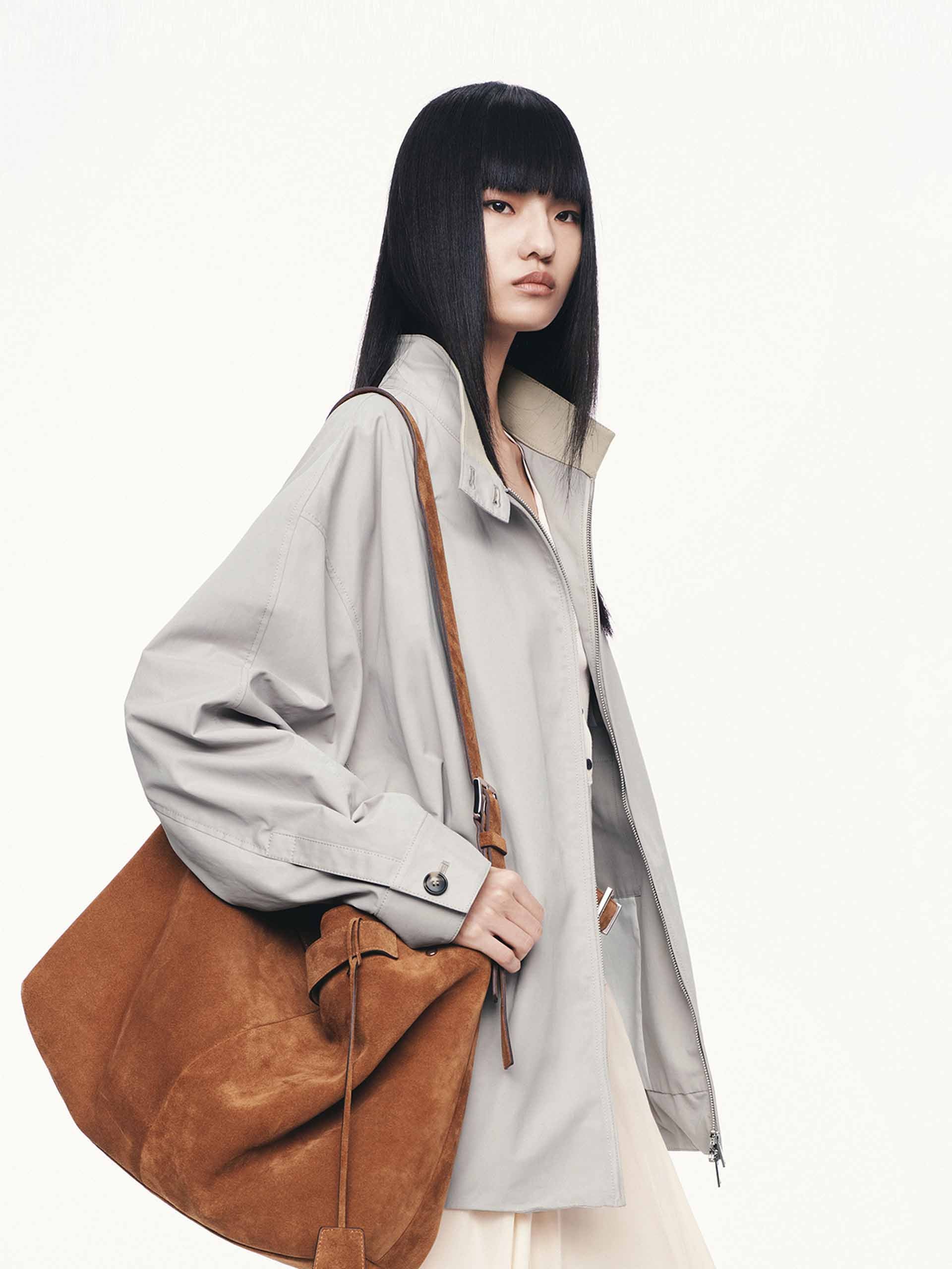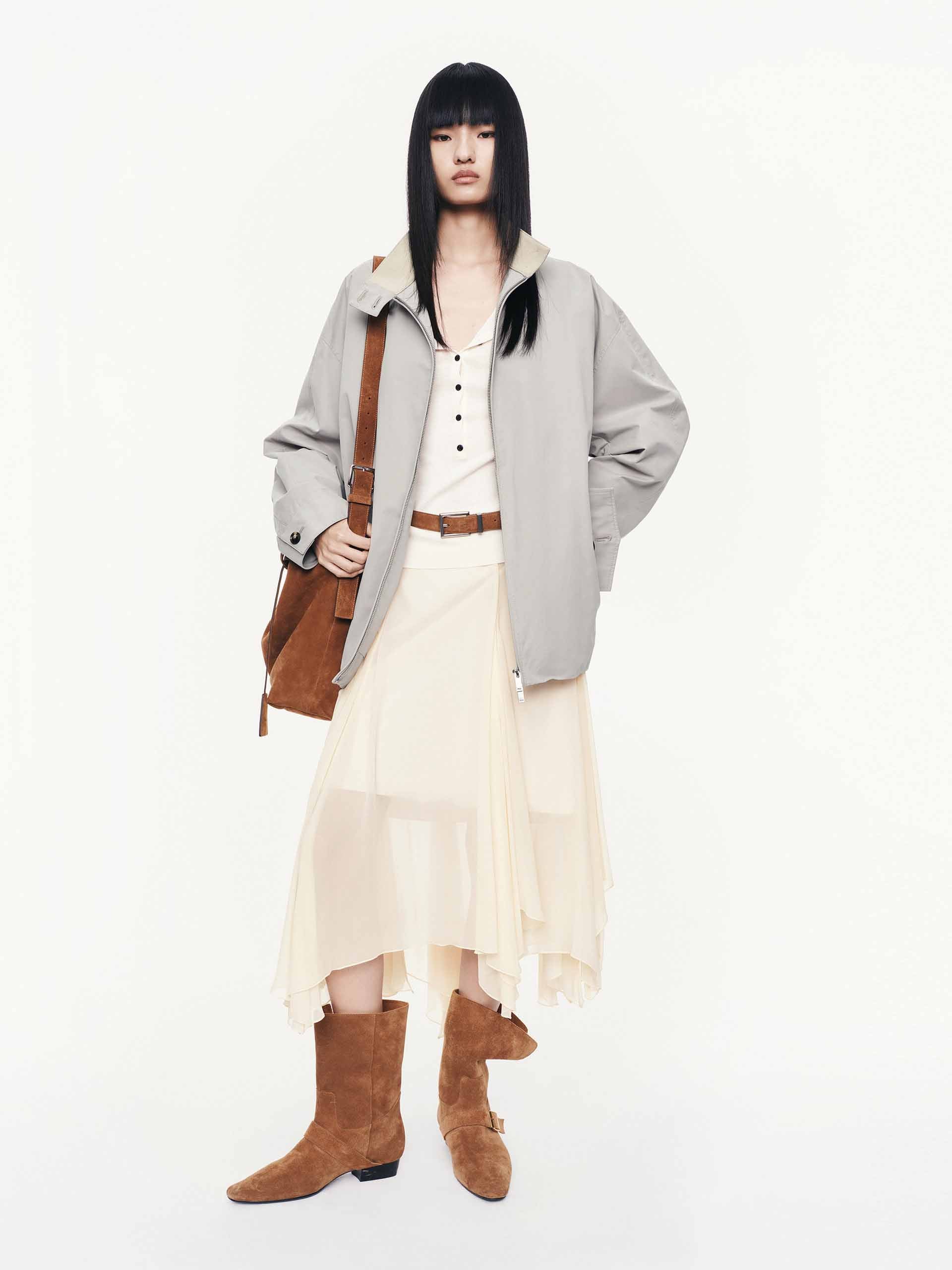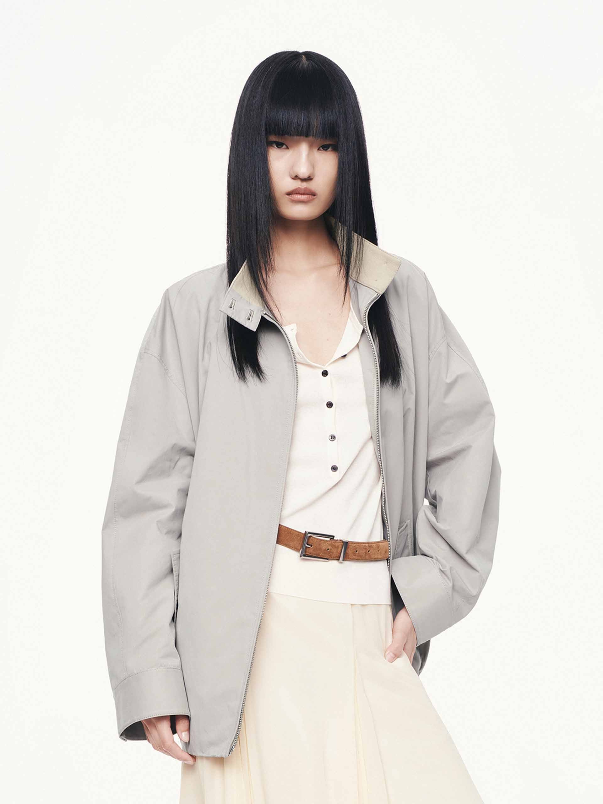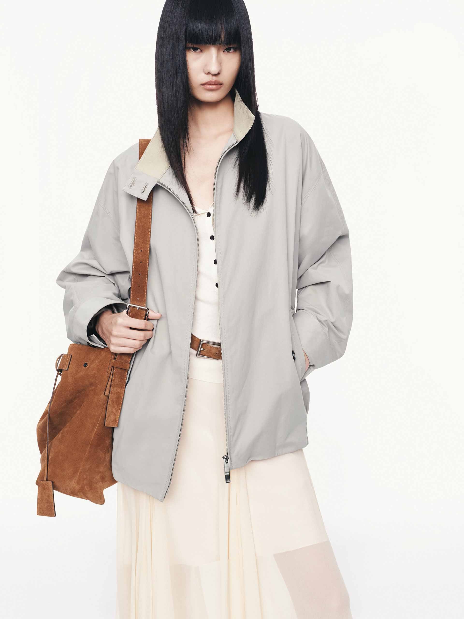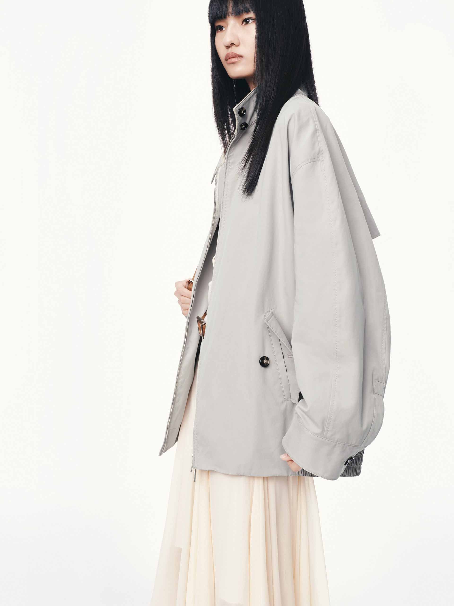 Cotton Blend Zipper Coat