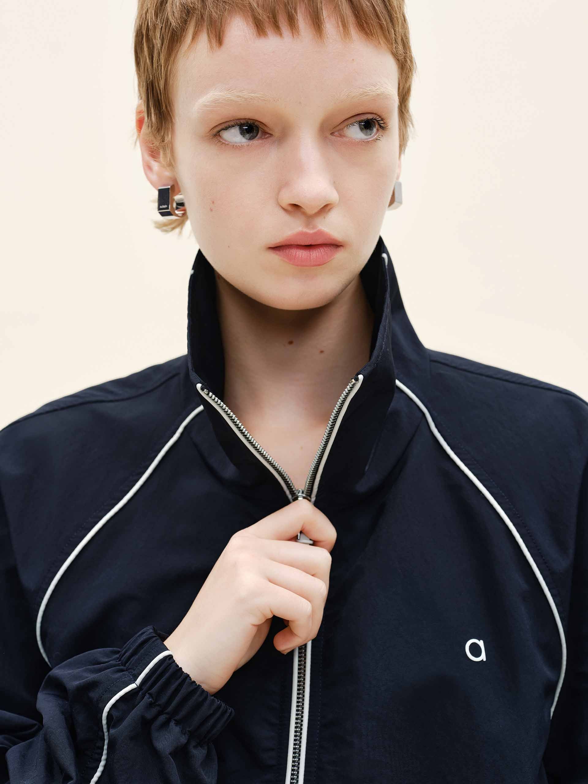 - Long sleeves and zipper closure detail
