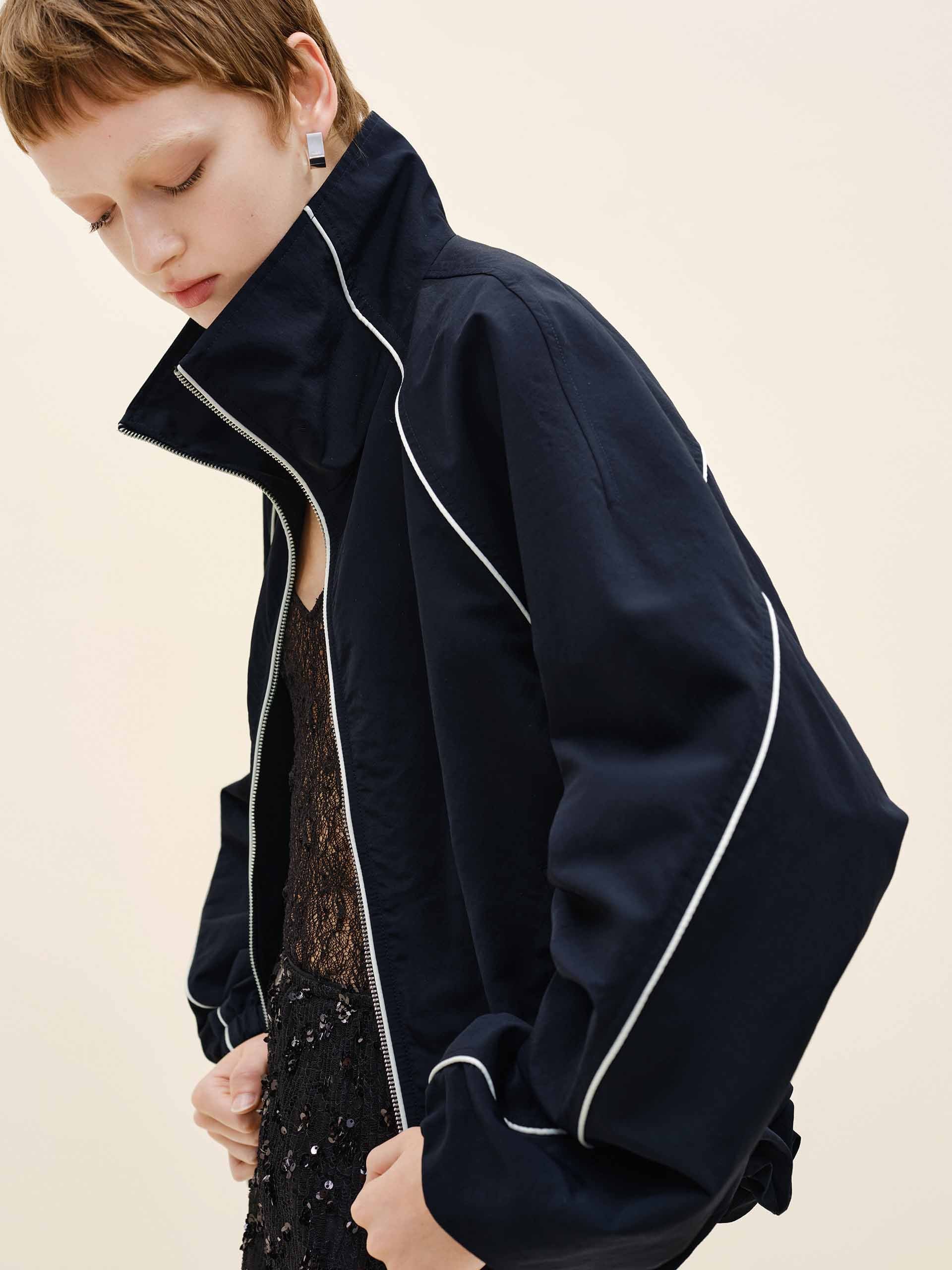 Elevate your active and casual wardrobe with the jacket, a masterclass in modern comfort and style. Practical side pockets keep essentials secure, while bold contrast trim design adds a dynamic, eye-catching accent. The full zipper closure detail offers easy wear, and the long sleeves are finished with elasticated cuffs for a snug fit.