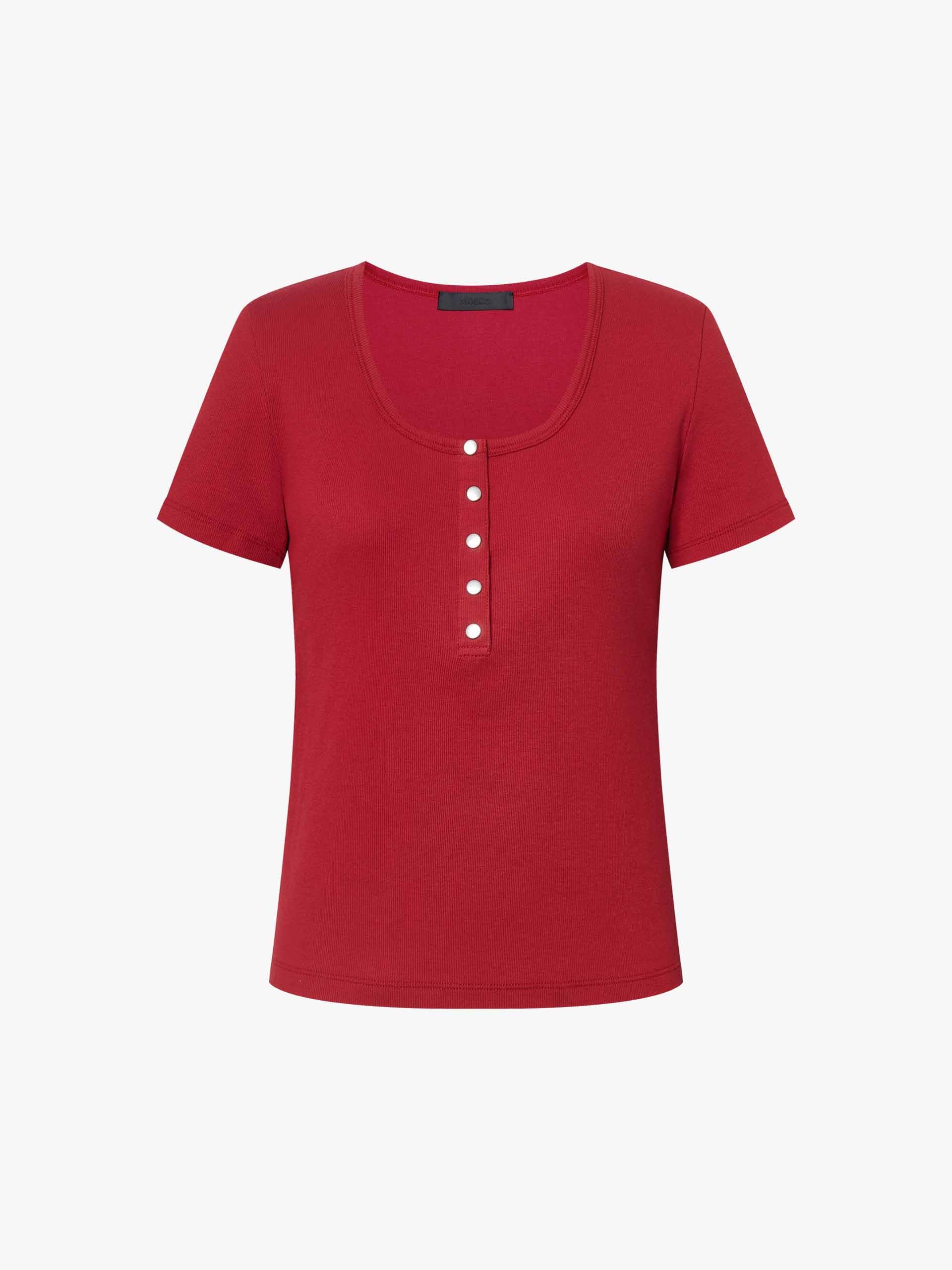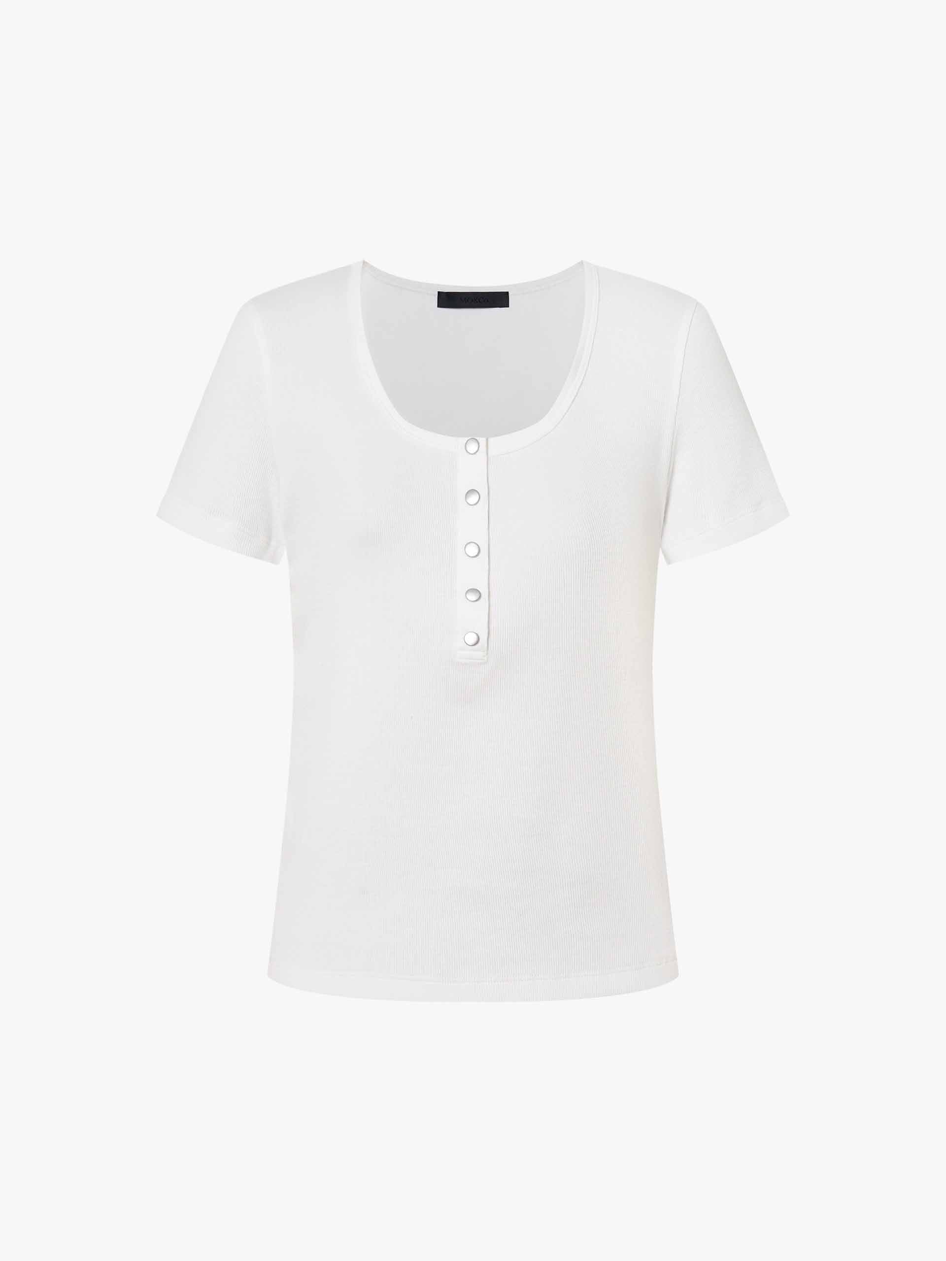 Effortless comfort meets contemporary style with this T-Shirt. Crafted from a soft, stretchy cotton blend, this piece features a regular fit, elegant U-neckline, and distinctive front button details for added visual interest.