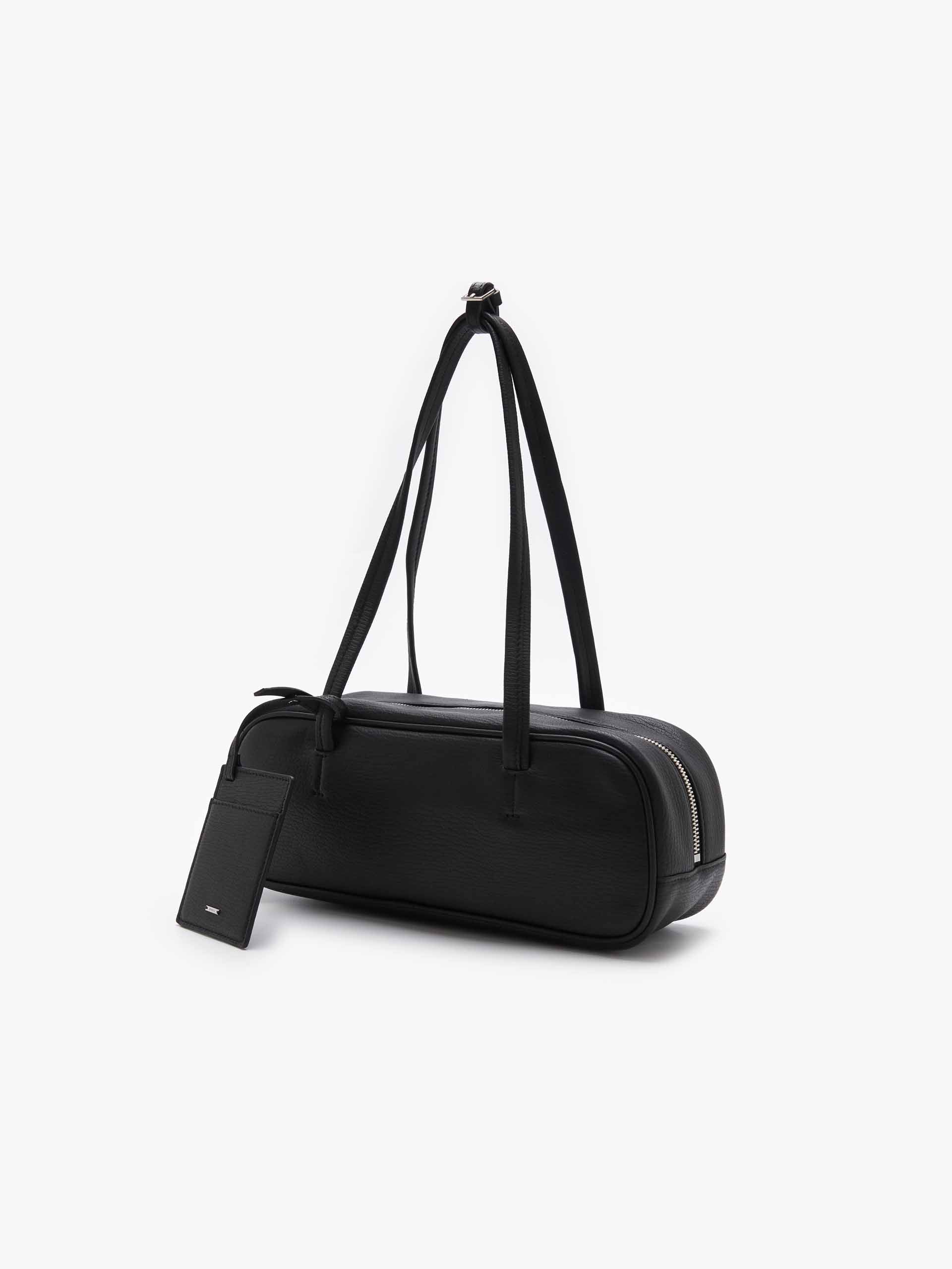 Crafted from premium lamb leather, this timeless black baguette bag offers a beautifully structured silhouette that holds its shape with elegant poise. The smooth, fine-grain finish exudes understated luxury, while its compact, elongated design.
