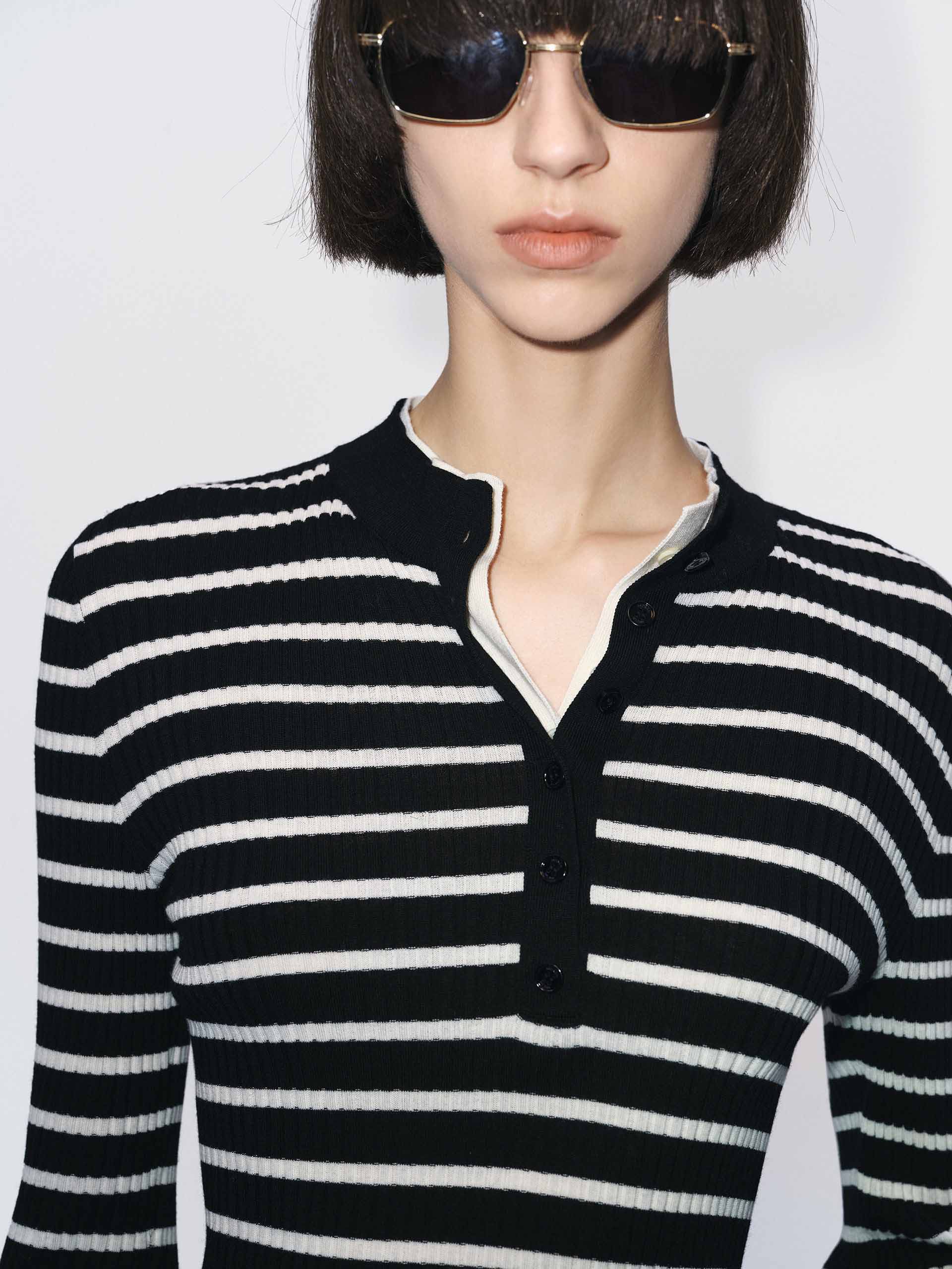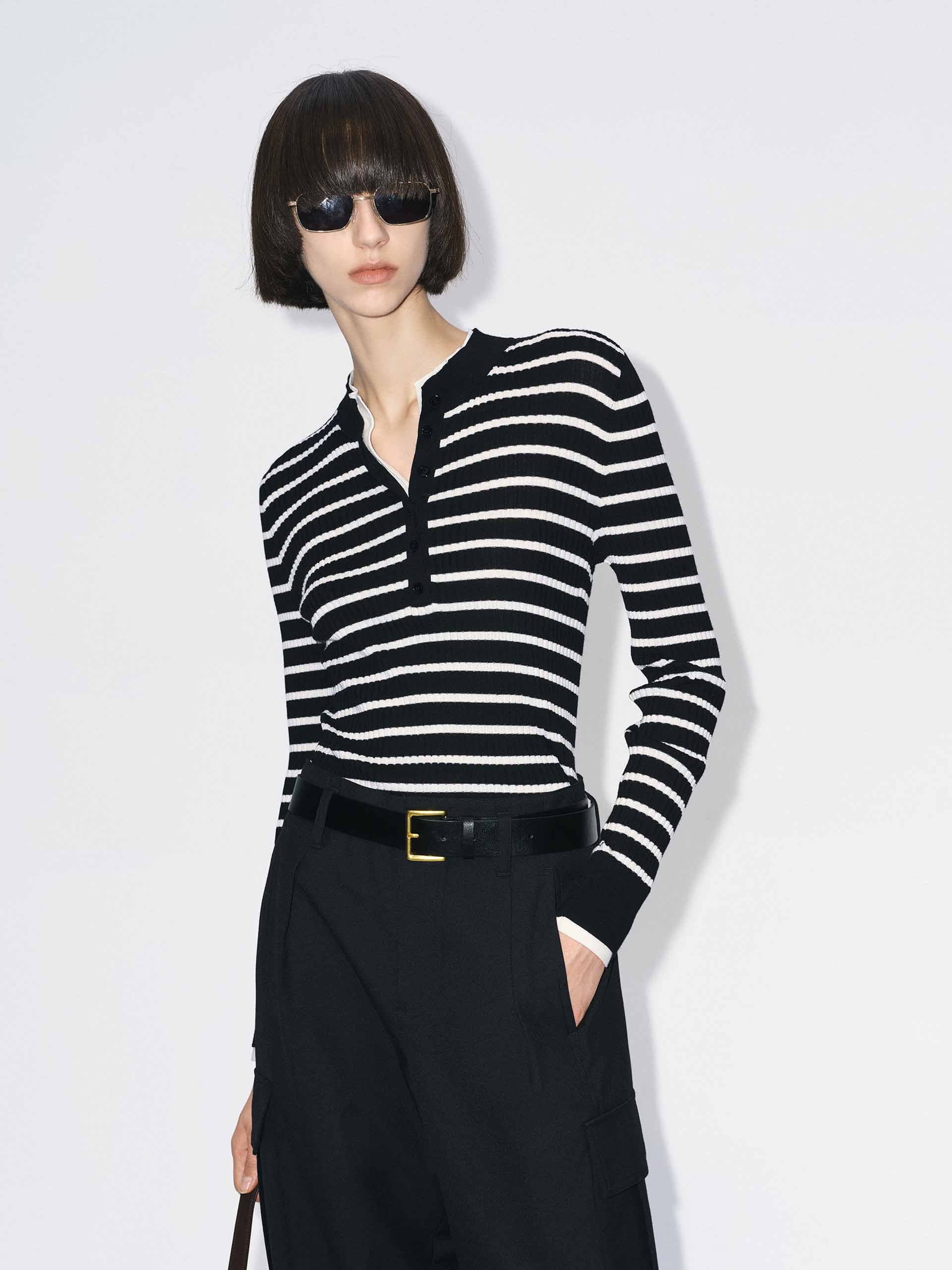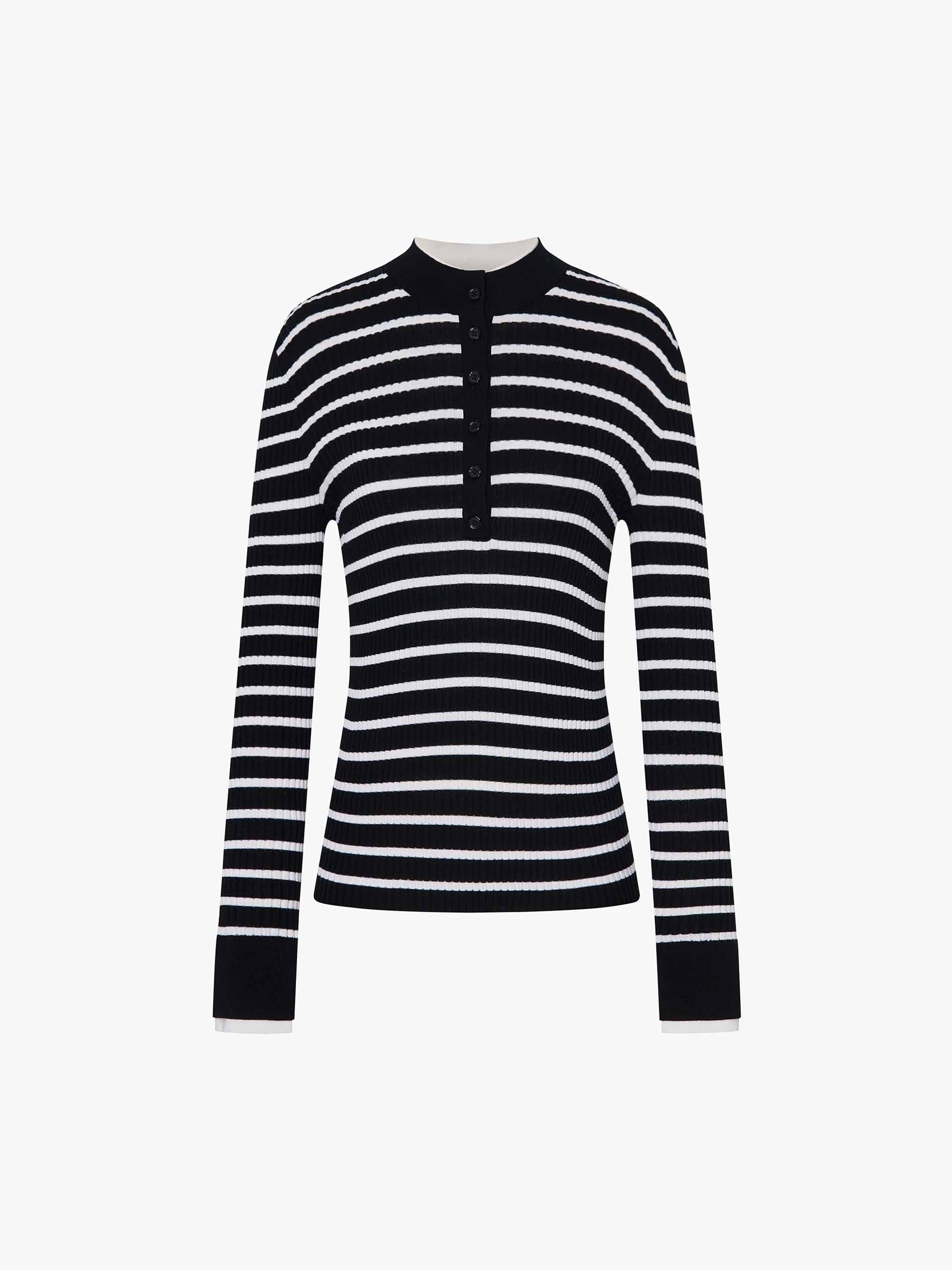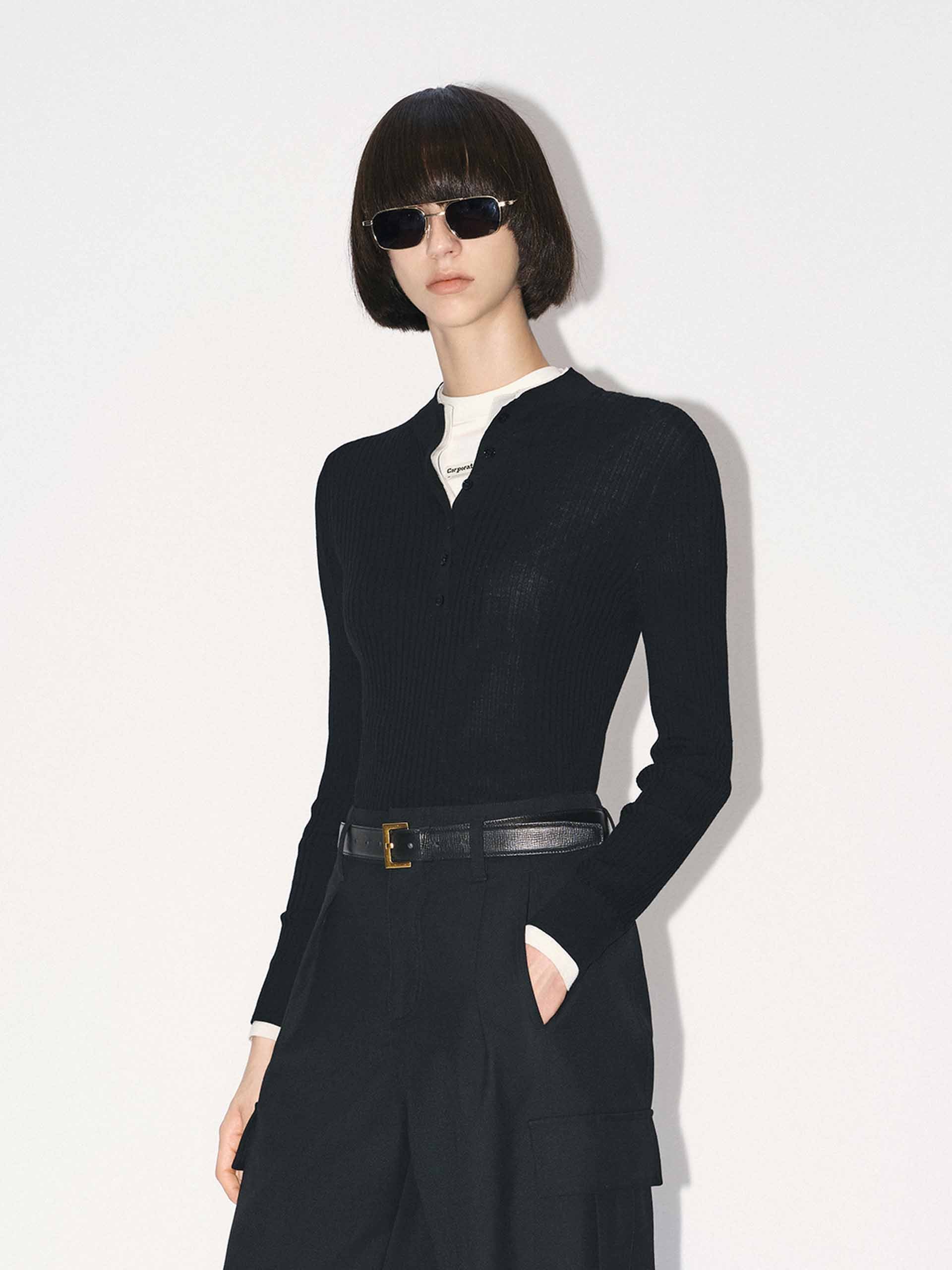 This sweater features a flattering slim fit that elegantly contours to your shape. The versatile round neck and elegant half-button closure offer a unique blend of classic style and modern detail. Its defining feature is a striking contrast layered design, meticulously crafted from a luxuriously soft knitted fabric to create a visually captivating texture that adds depth and dimension to your everyday wardrobe.