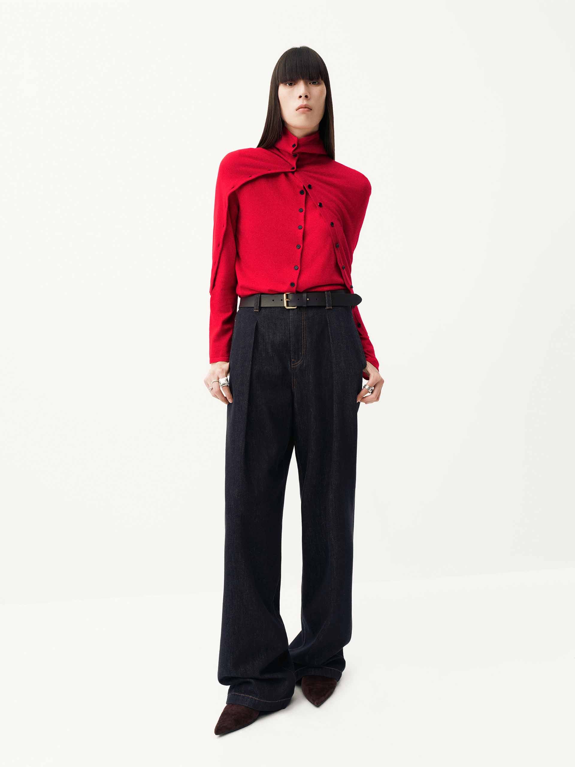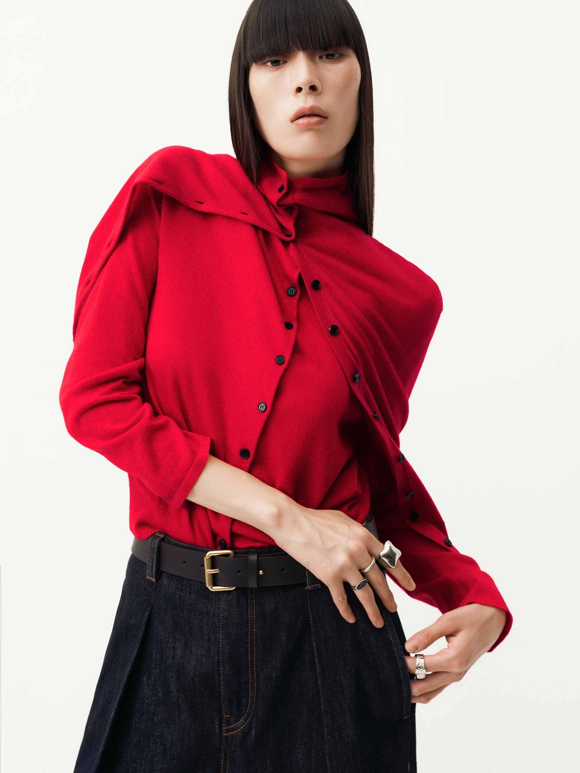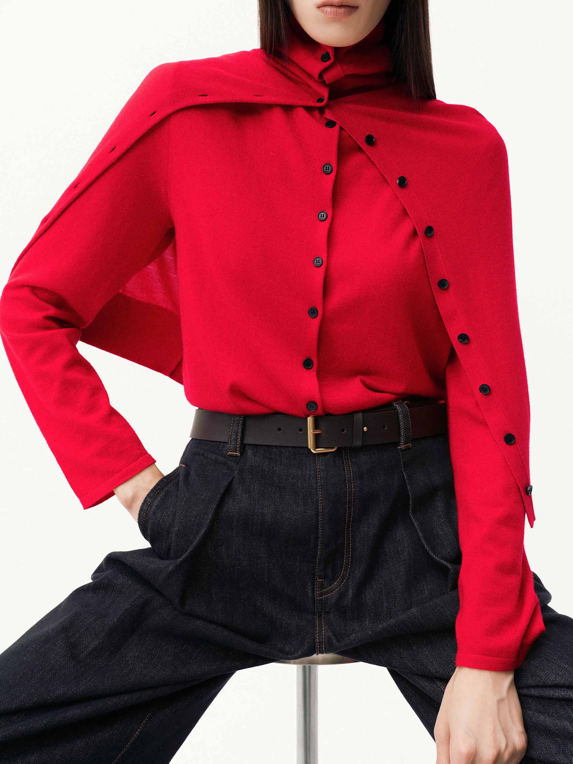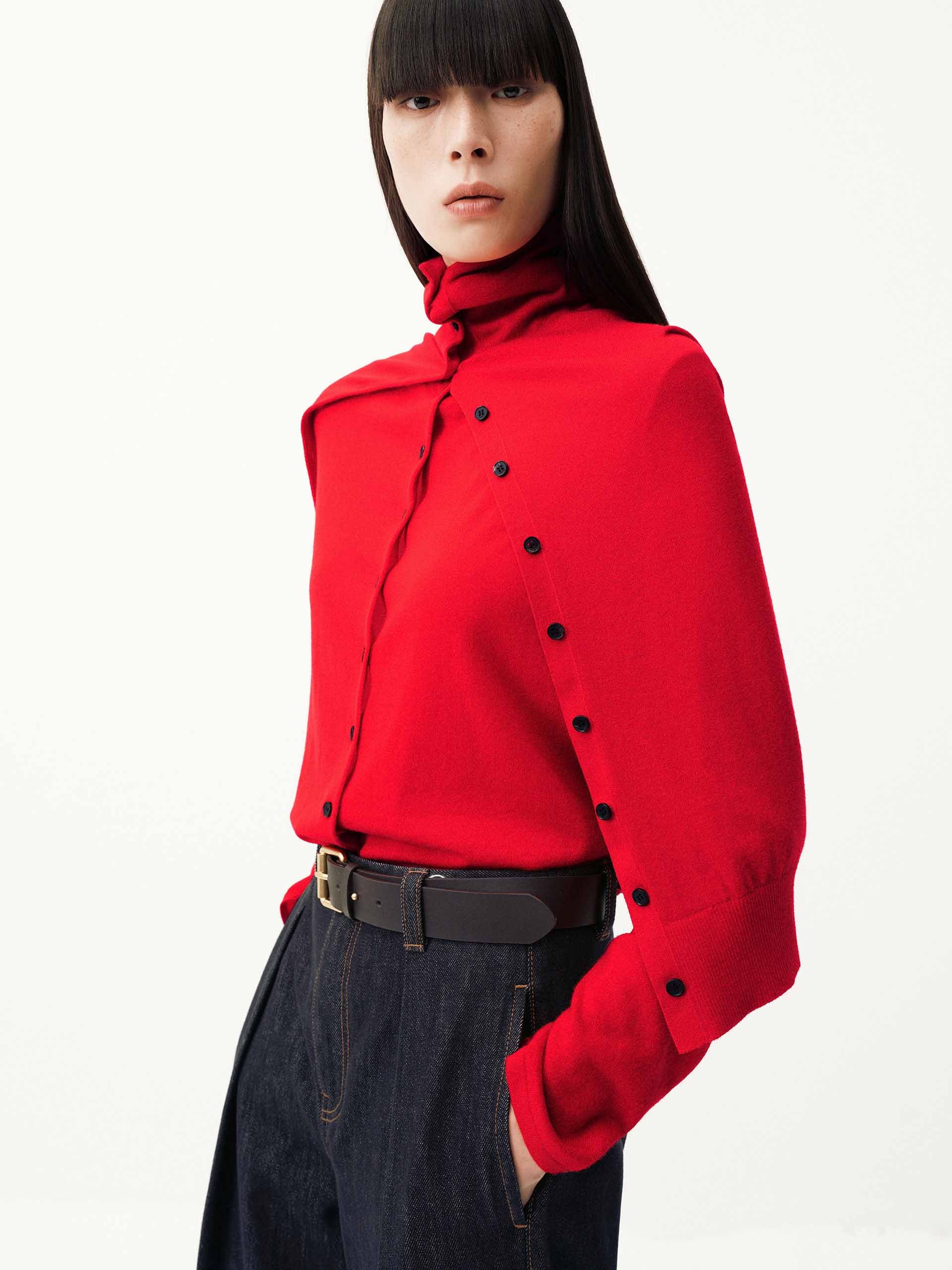 - Button turtleneck design, pure wool fabric