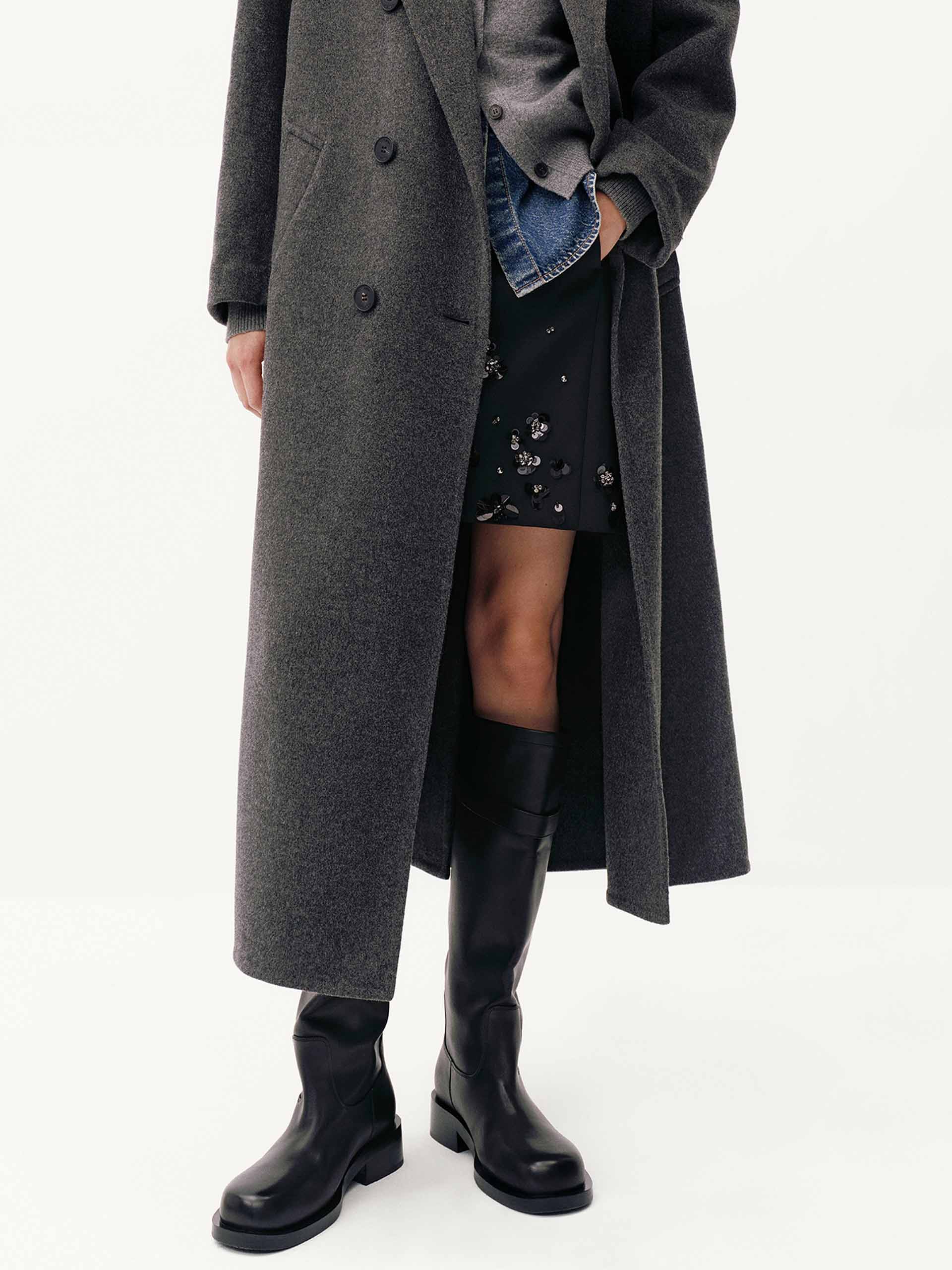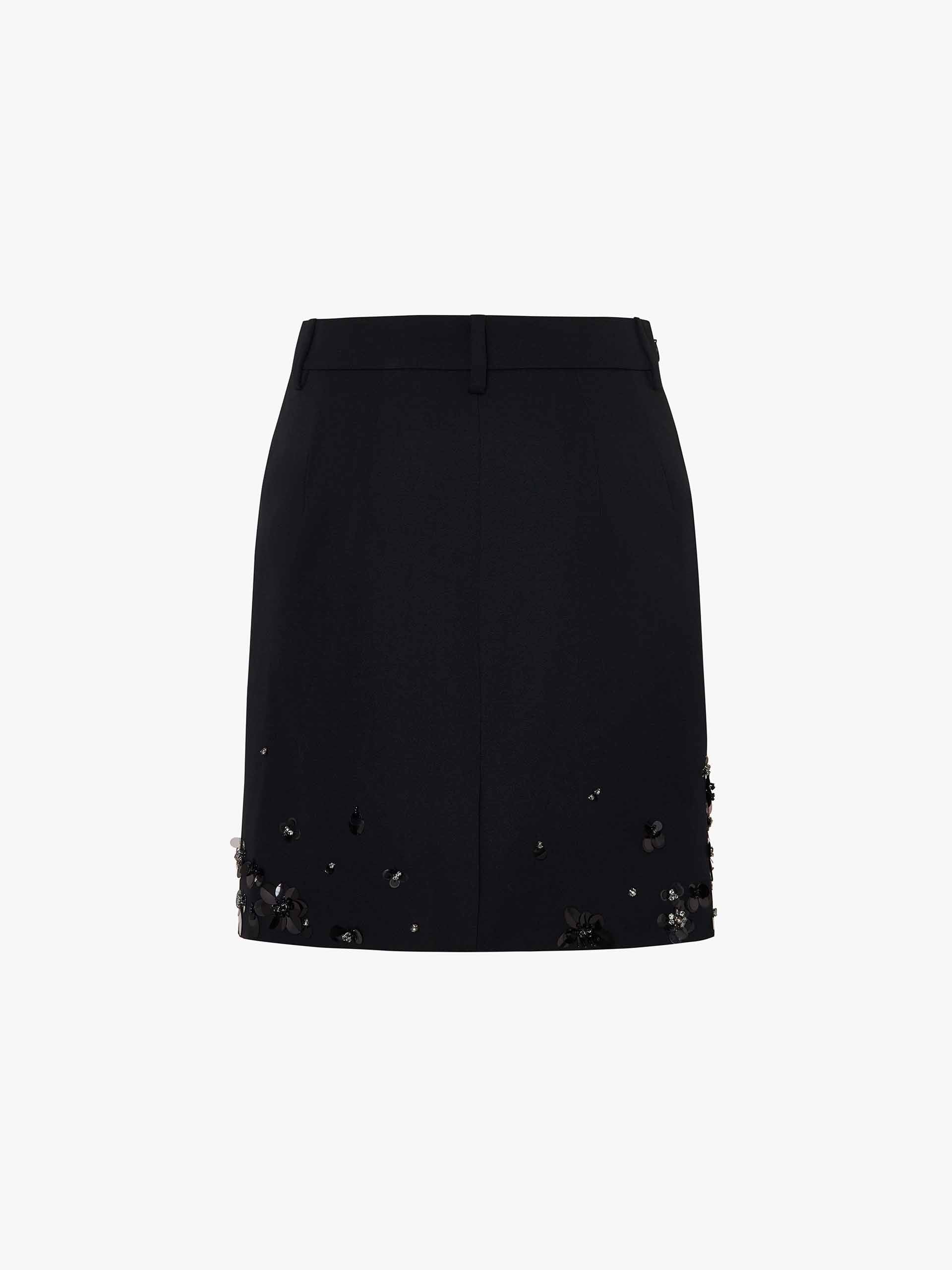 Make a dazzling statement with this skirt. The design focuses its brilliance at the hem, featuring an eye-catching band of sequins and rhinestones that catches the light with every move. Practical elements like a discreet side zipper closure and functional side pockets are seamlessly integrated, ensuring this piece is as wearable as it is glamorous for any special occasion.