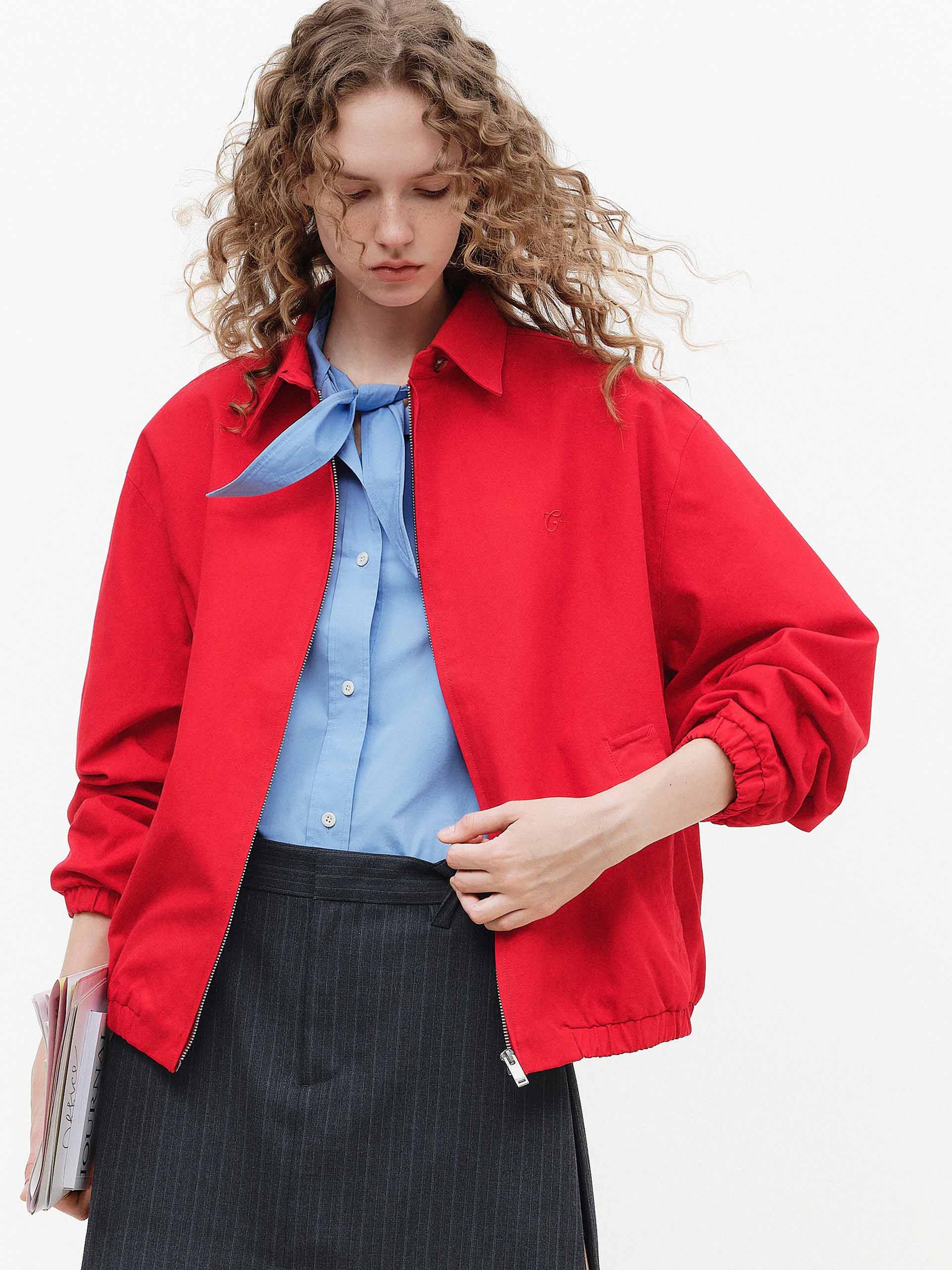 Red Lapel Zip Up Jacket