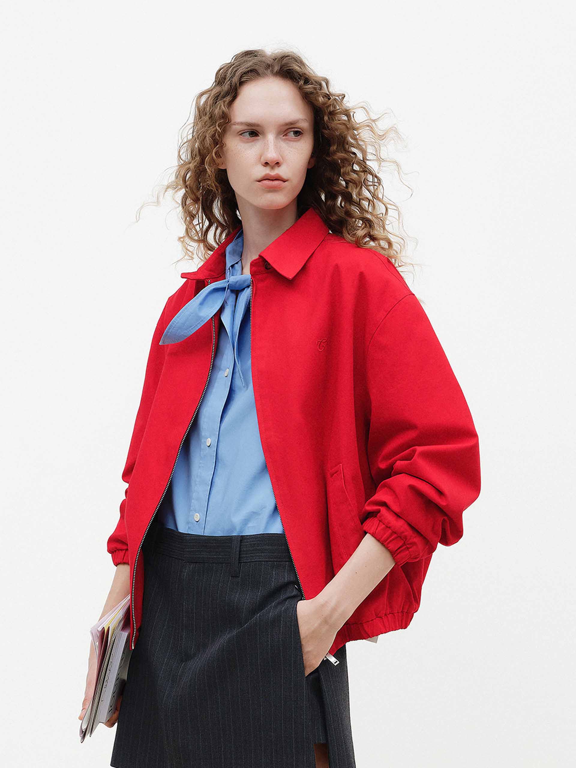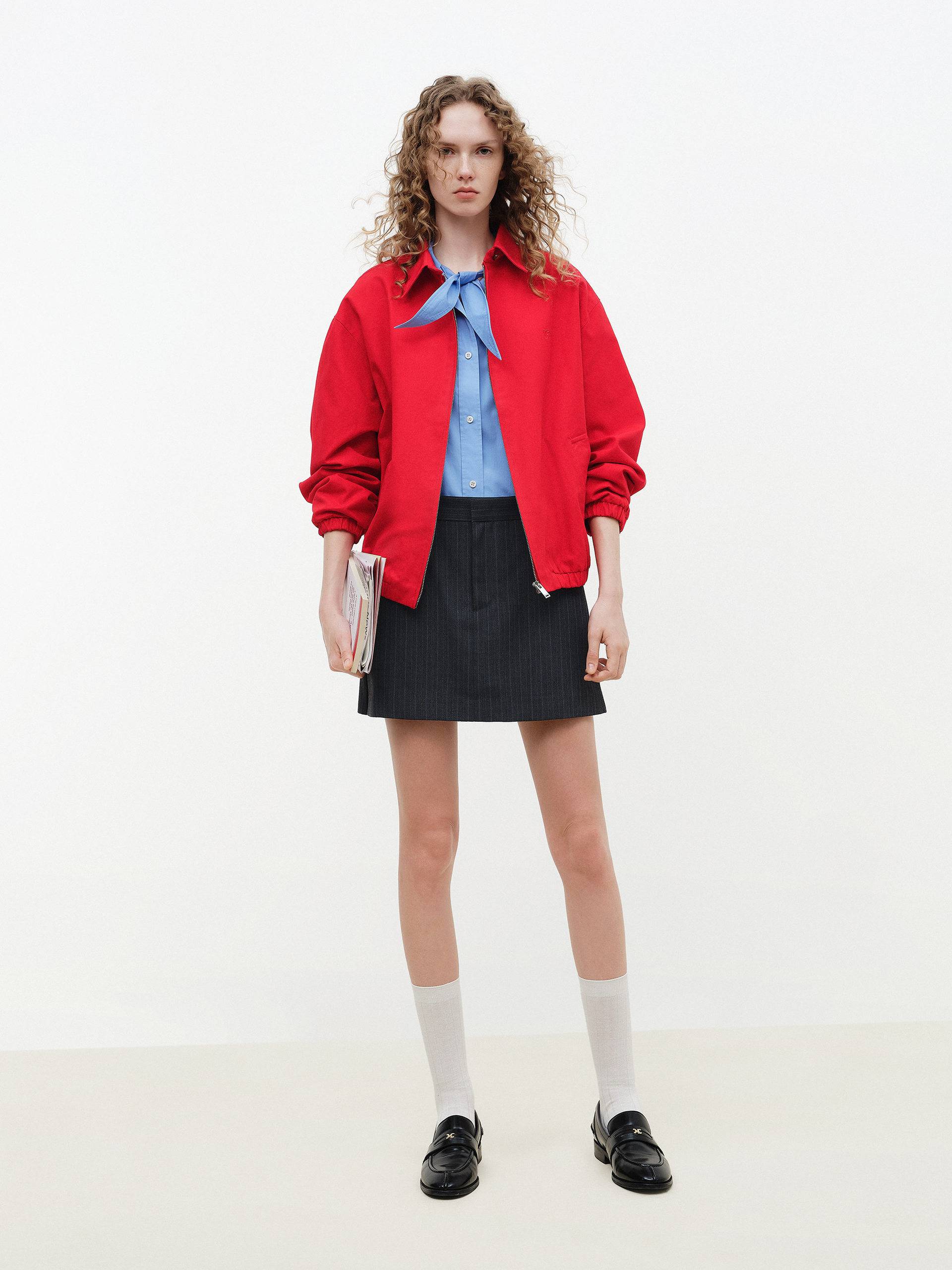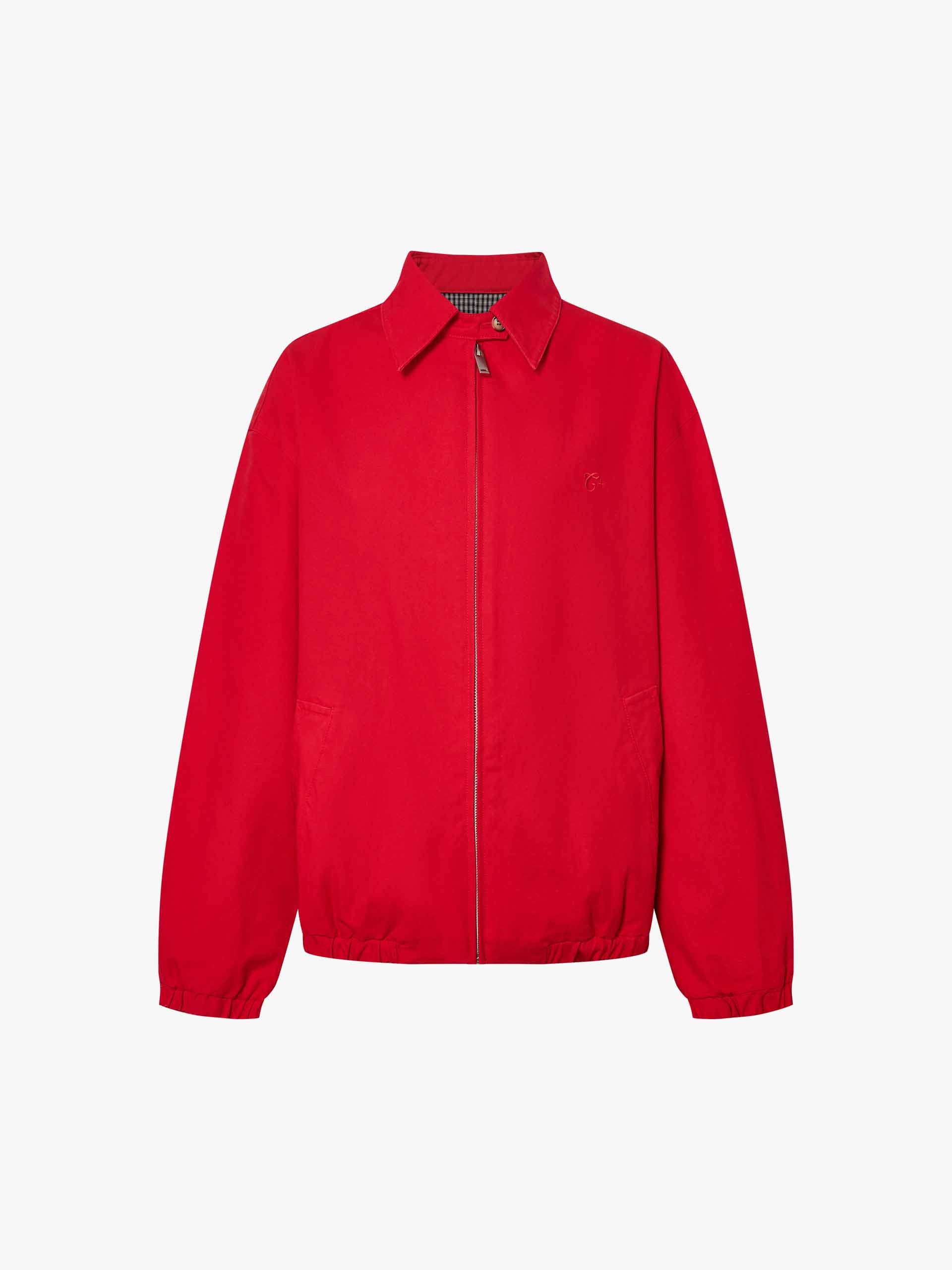 This all-cotton jacket features a fitted cut with a snap-on pointed lapel and ribbed stretch cuffs and hem for enhanced comfort and a sporty feel. The vibrant red hue is striking and adds a touch of energy and effortless style to everyday looks.