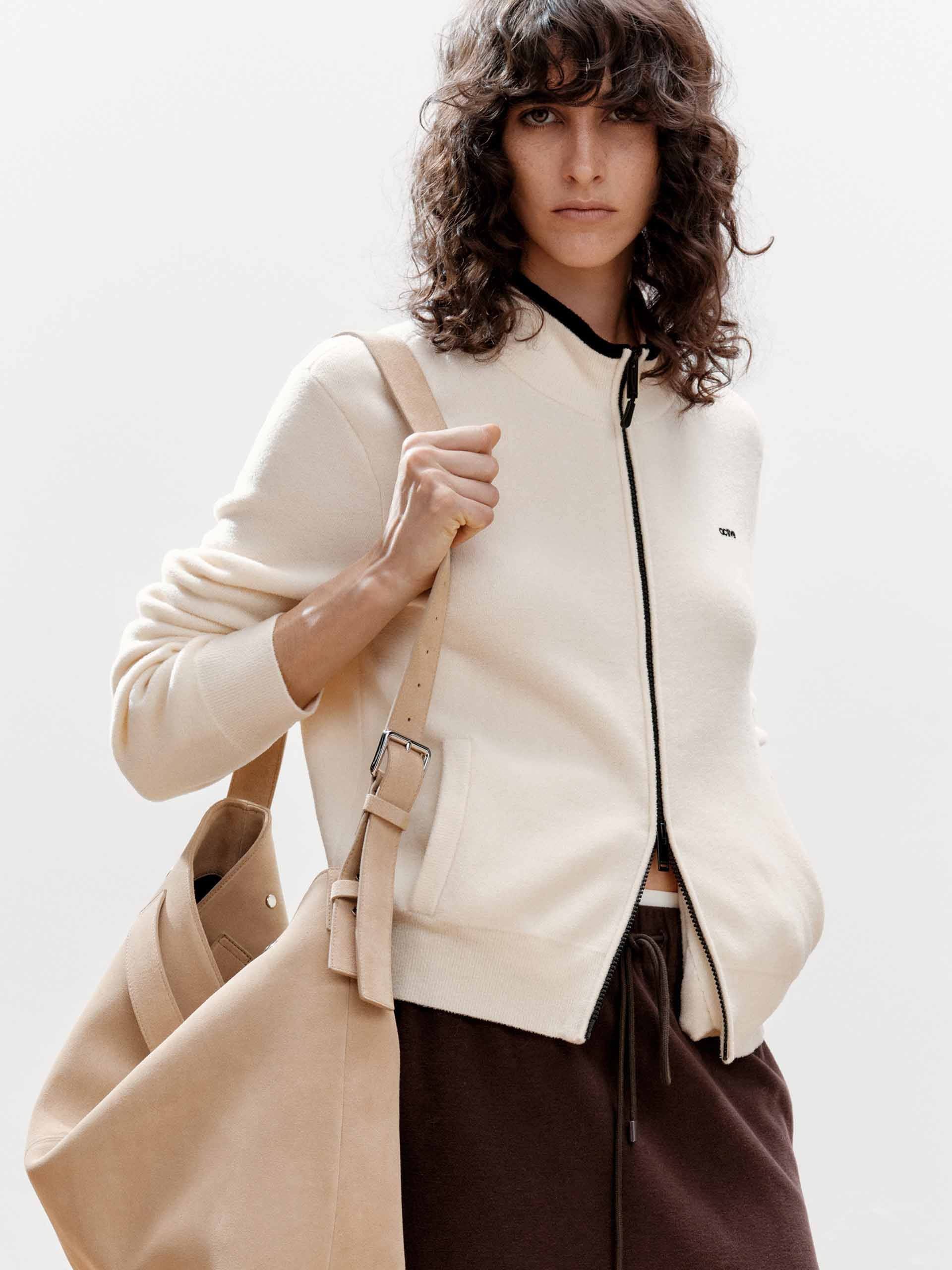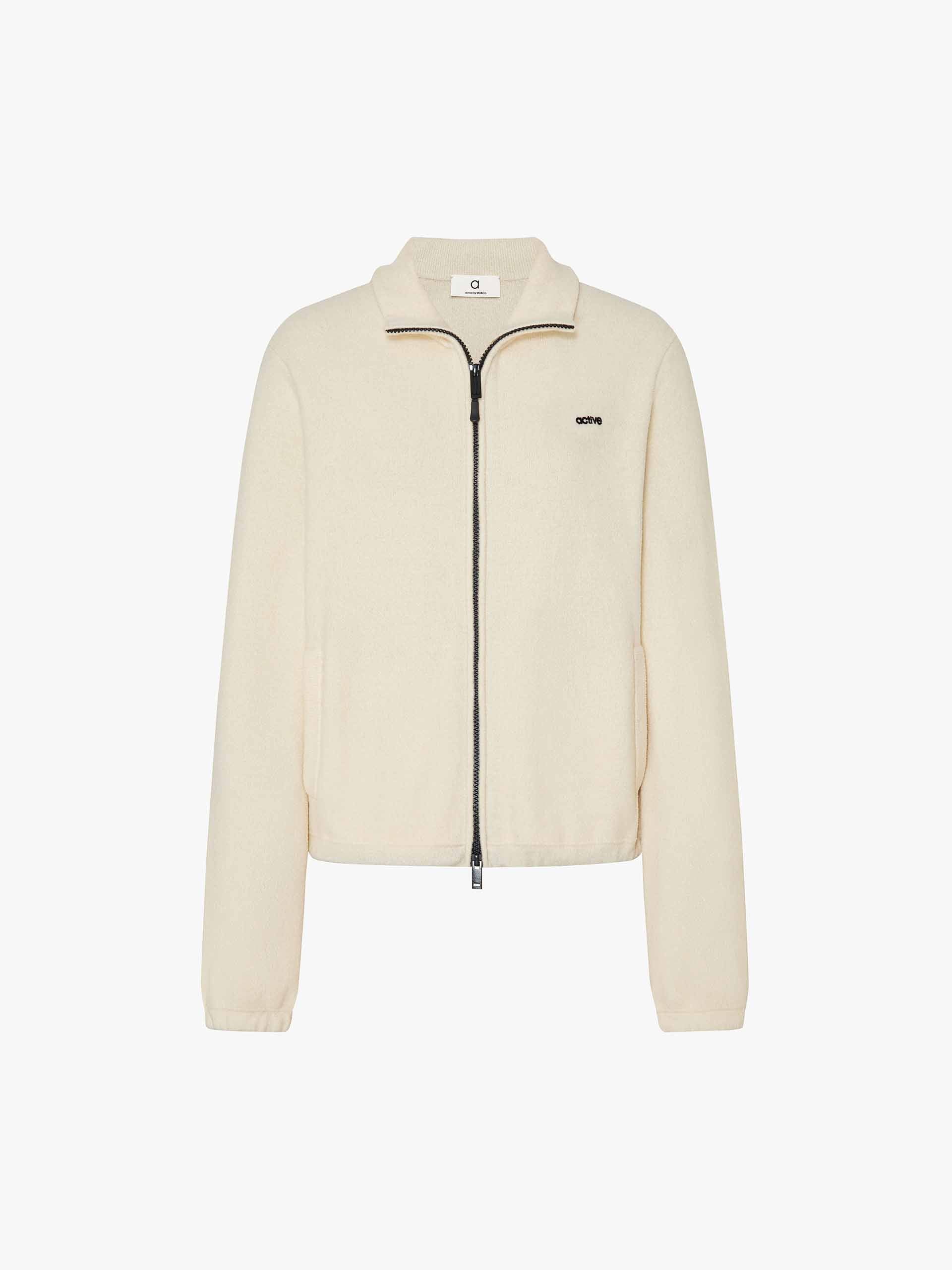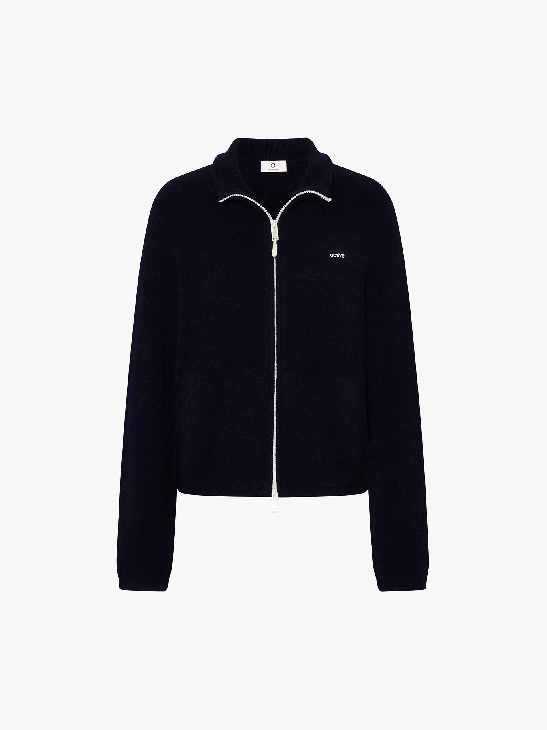 Embrace a unique fusion of athletic inspiration and cozy comfort with our cardigan. It features a versatile regular fit and is crafted from a soft wool blend for a luxuriously comfortable feel. The dynamic front contrast printed design adds a modern, sporty edge, while the practical two-way zip closure and convenient side pockets offer both functional utility and a sleek, contemporary silhouette.