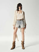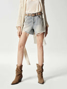 Cotton Raw Hem Denim Shorts