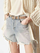MO&Co. Women's Cotton Raw Hem Denim Shorts