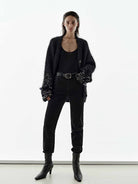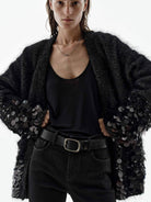 MO&Co. Women's Sequin Detail Loose Cardigan