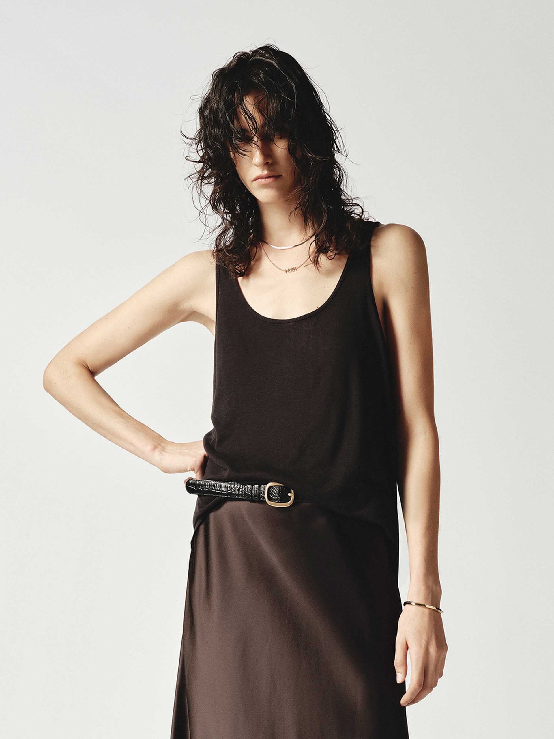 Crafted from a luxurious wool blend, it's lightweight, regular fit drapes effortlessly for a sleek silhouette, while the sophisticated U-neck and sleeveless design lend understated elegance. Rendered in a versatile black and gray hue, it pairs seamlessly with tailored layers or stands alone as a polished staple.