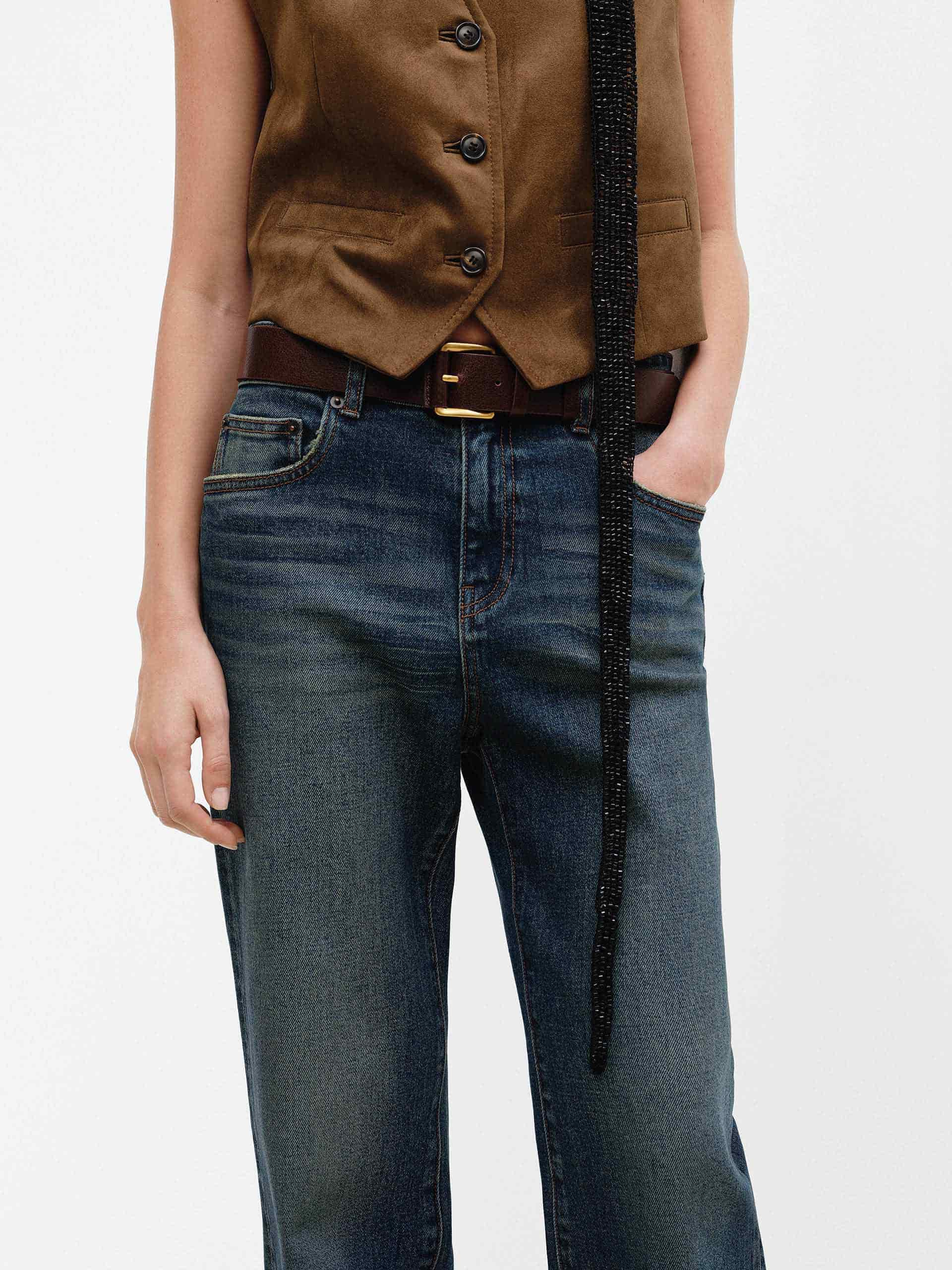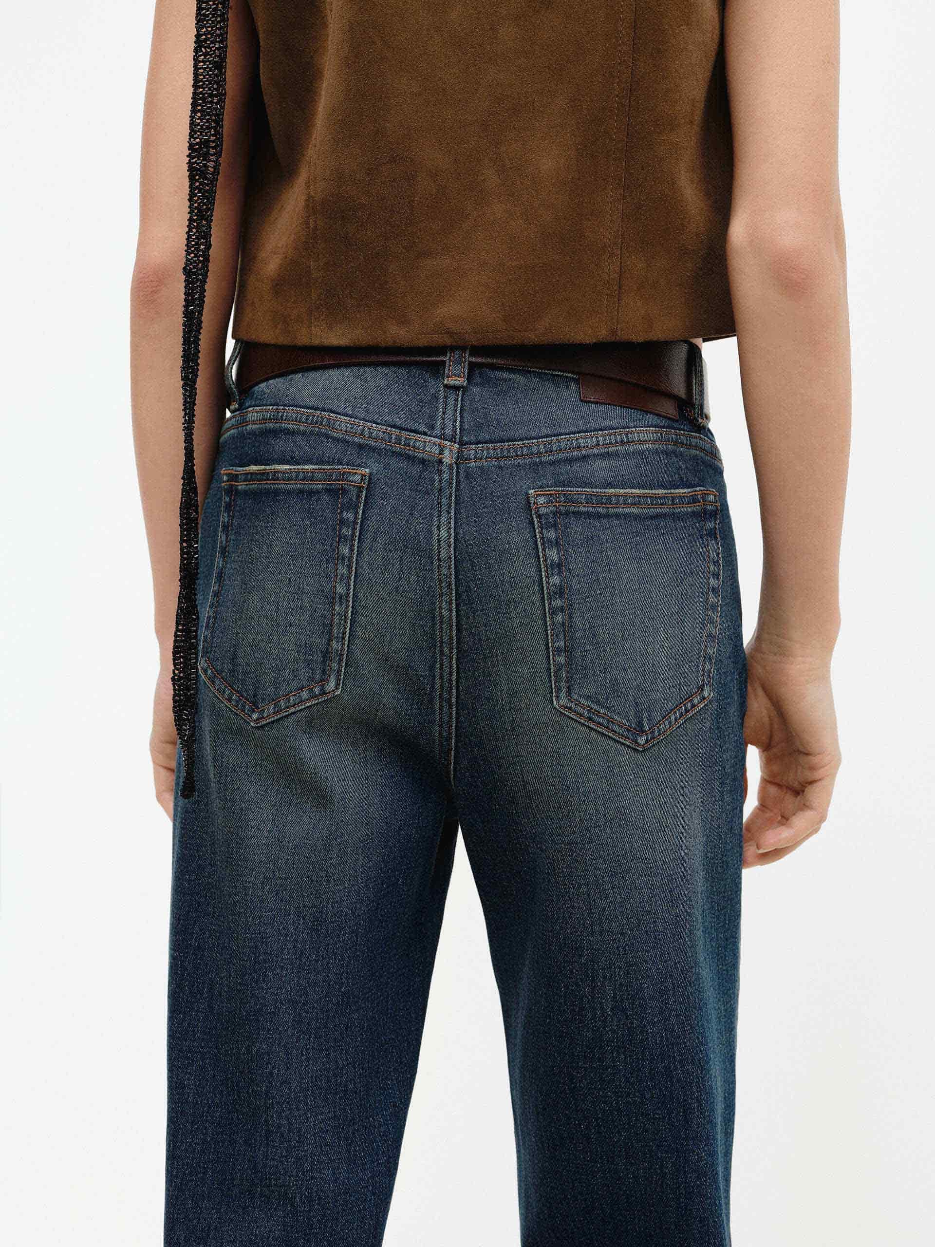 These jeans offer a modern take on classic denim with distinctive character. Featuring a clean straight cut and contemporary ankle length, they provide a sharp, streamlined silhouette. The traditional five-pocket detail and secure zip and button closure ensure practical style. Finished with an authentic whisker effect, they achieve a perfectly worn-in look for effortless, everyday versatility.