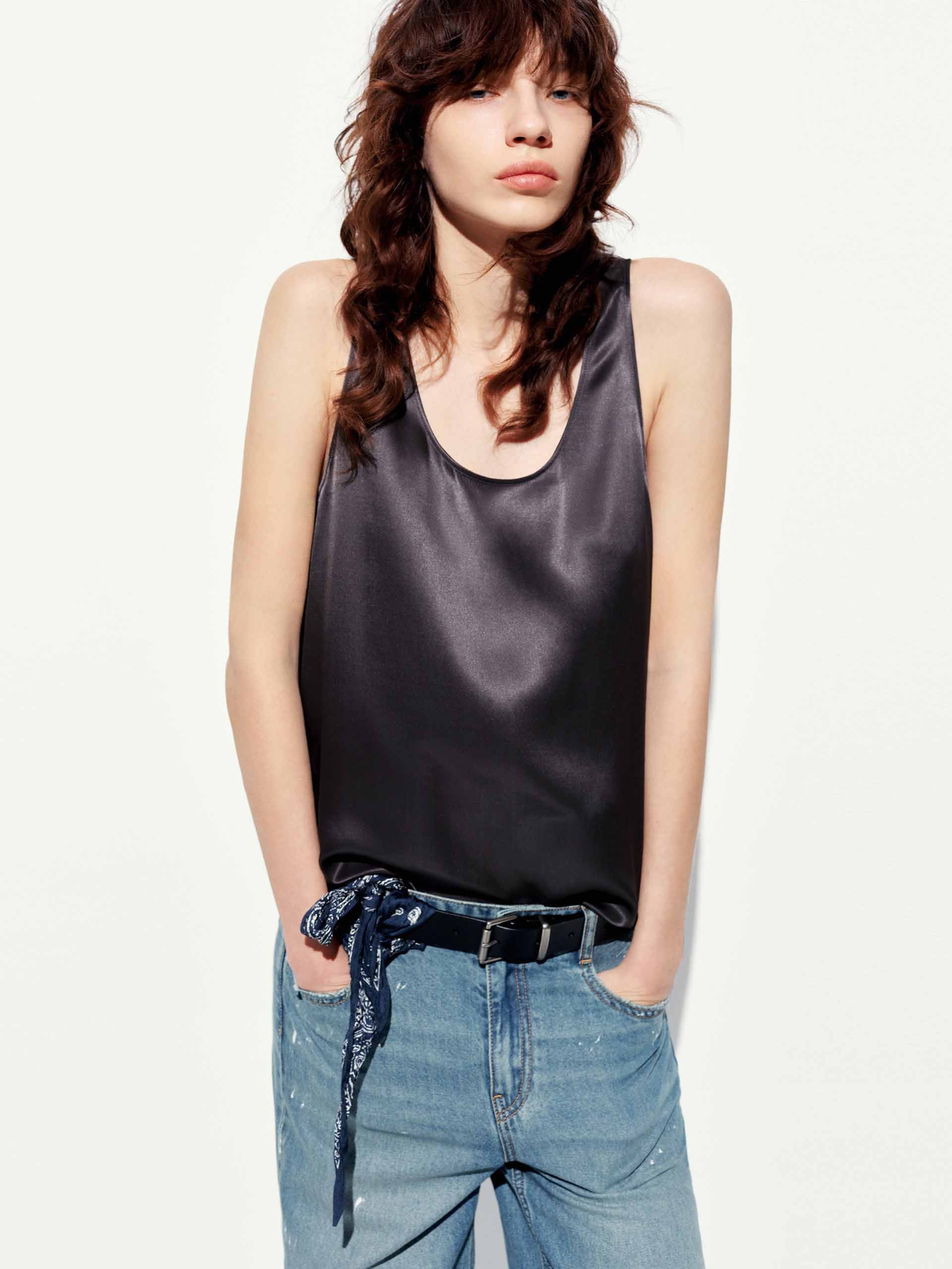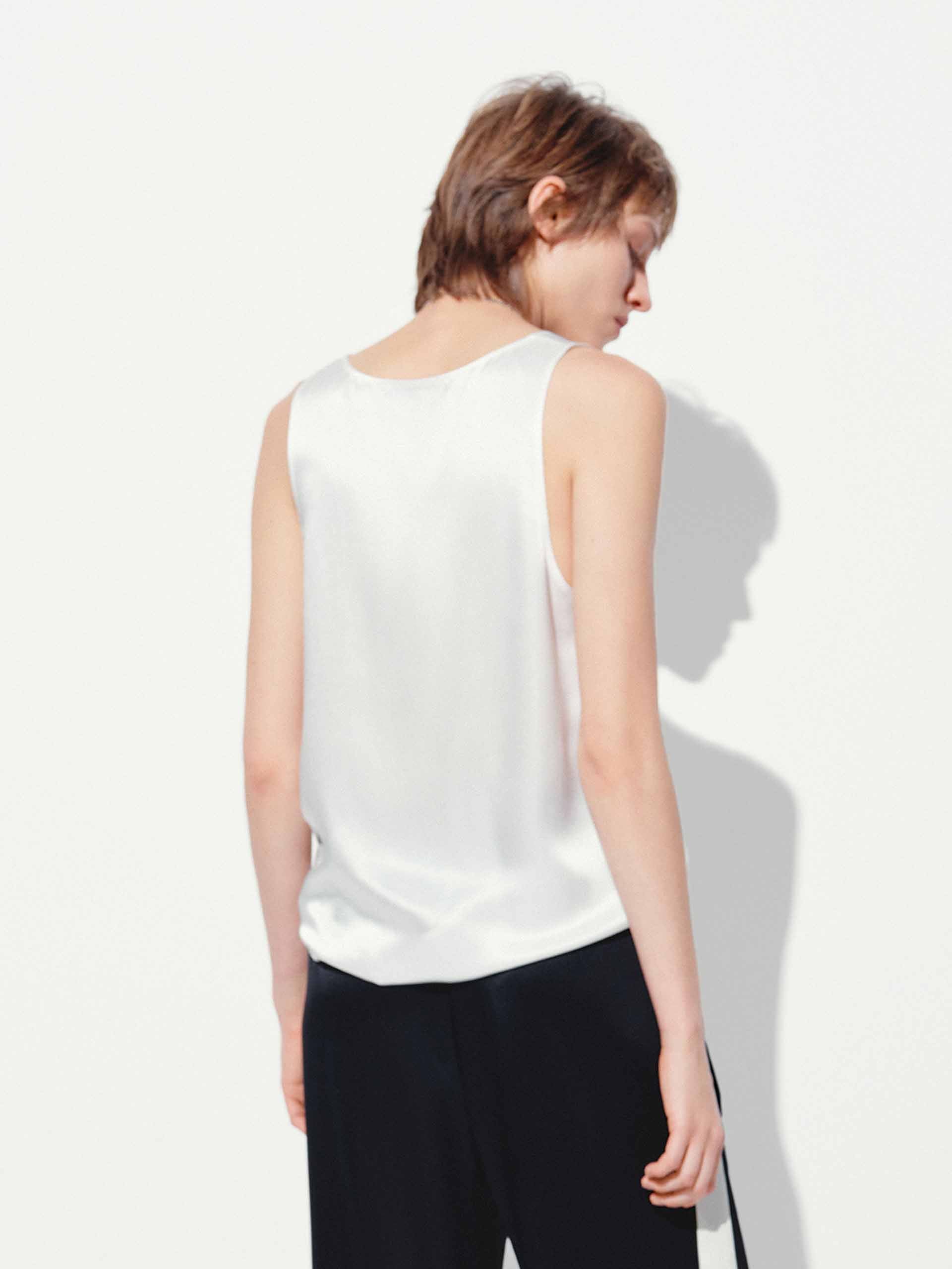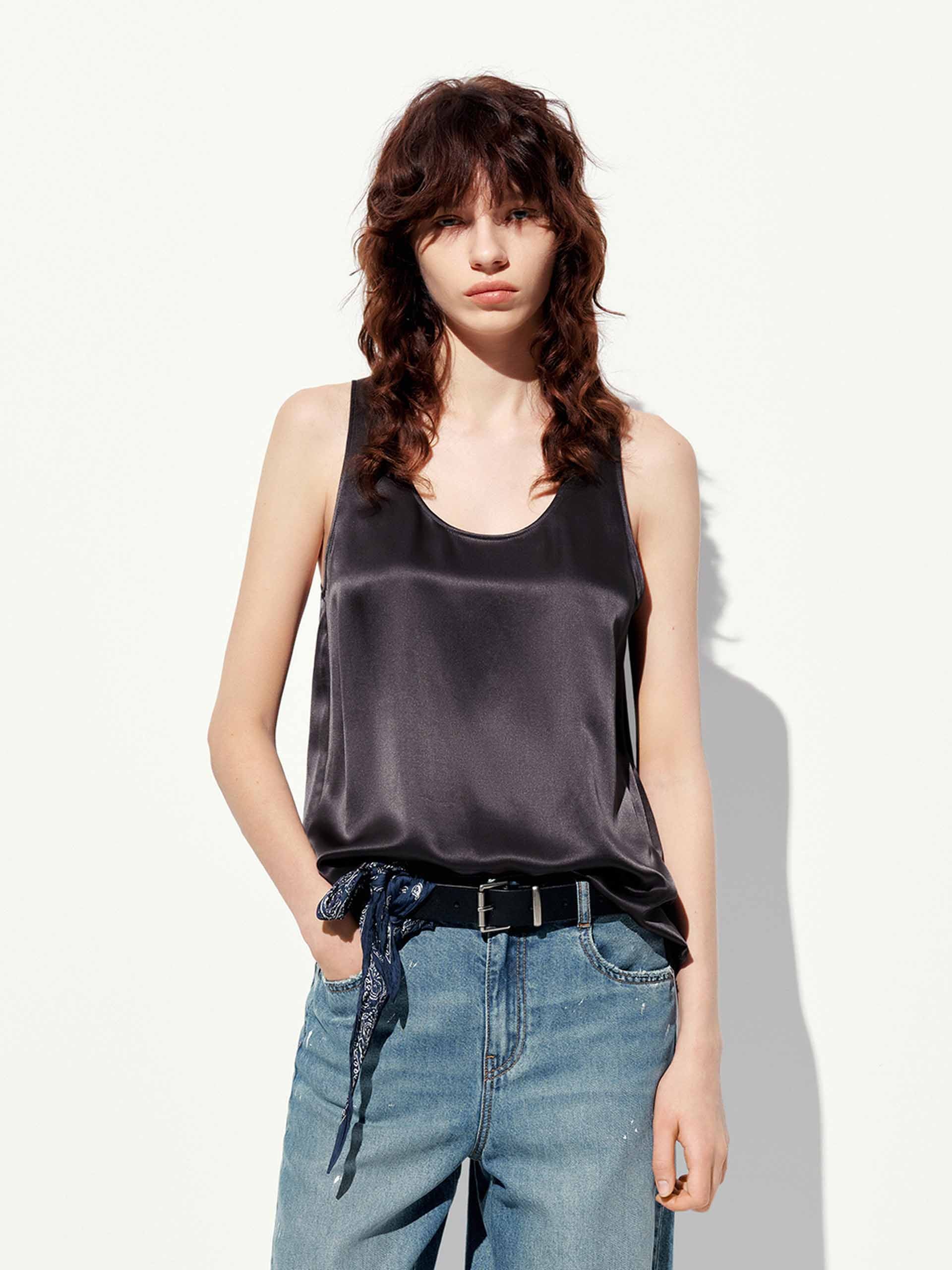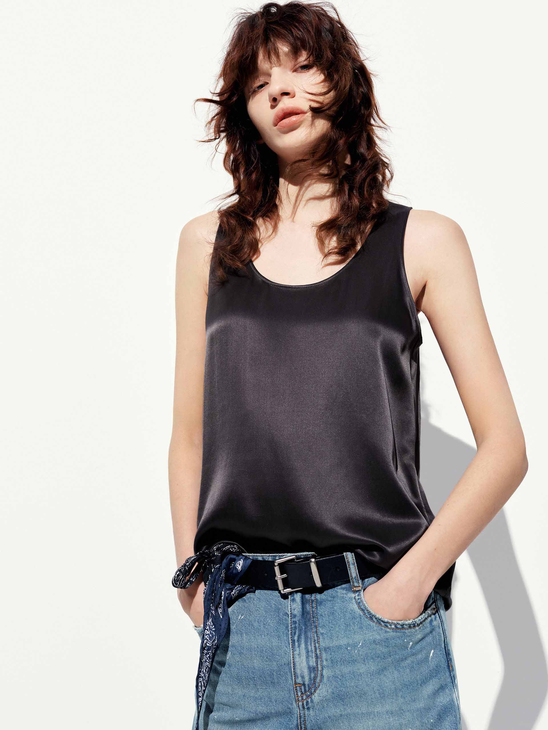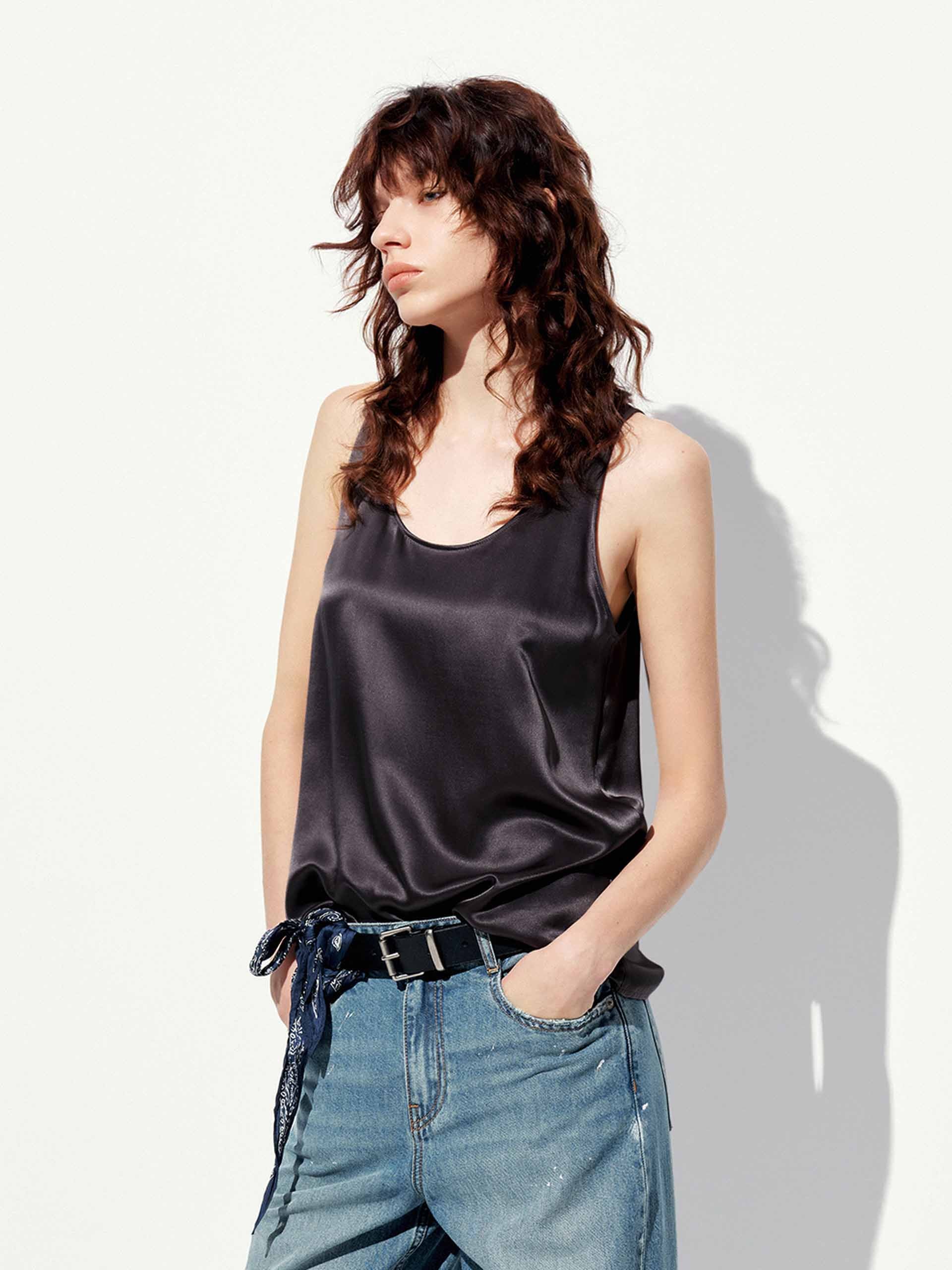 Indulge in effortless elegance with this tank top, crafted from a premium silk blend for the perfect balance of breathability and luxurious drape. The flattering U-neckline and sleek sleeveless design create a timeless silhouette that pairs beautifully with everything from blazers to jeans.