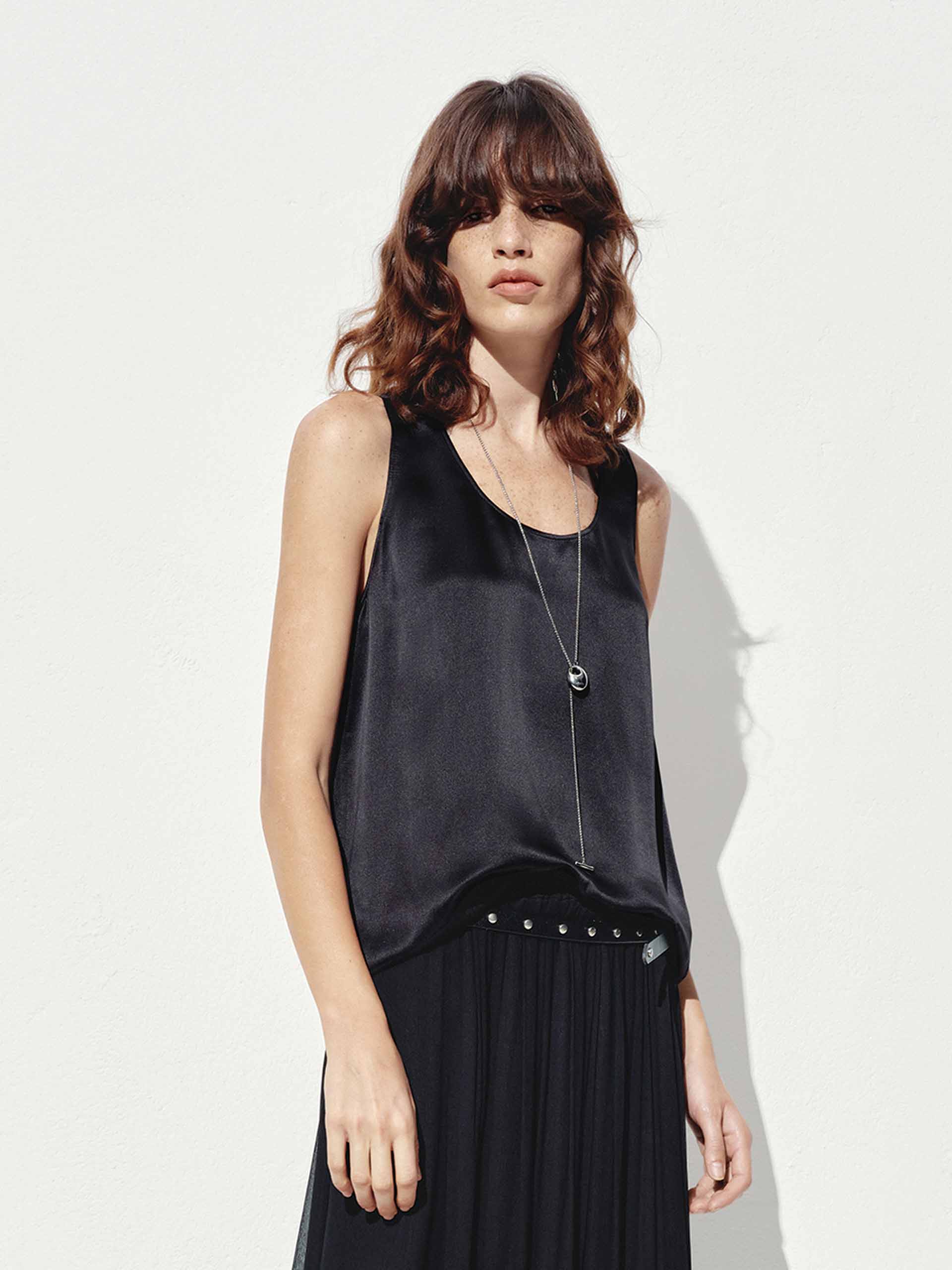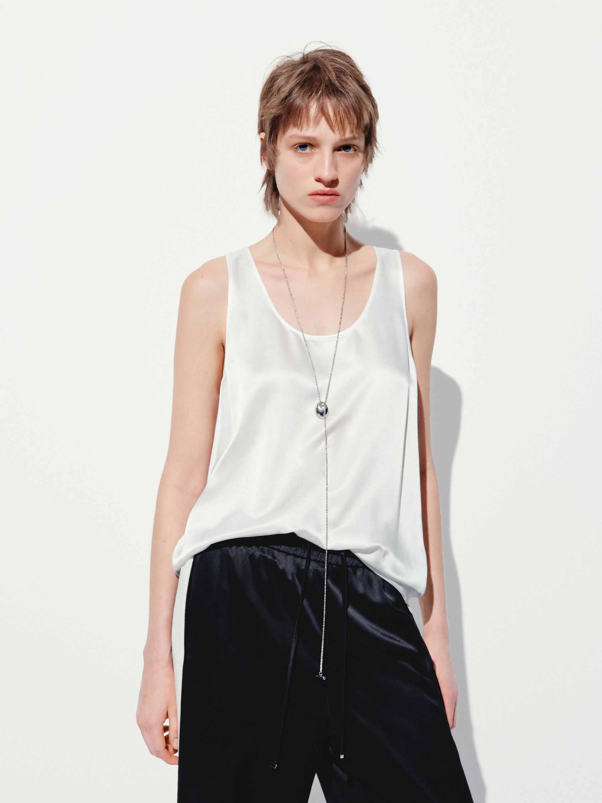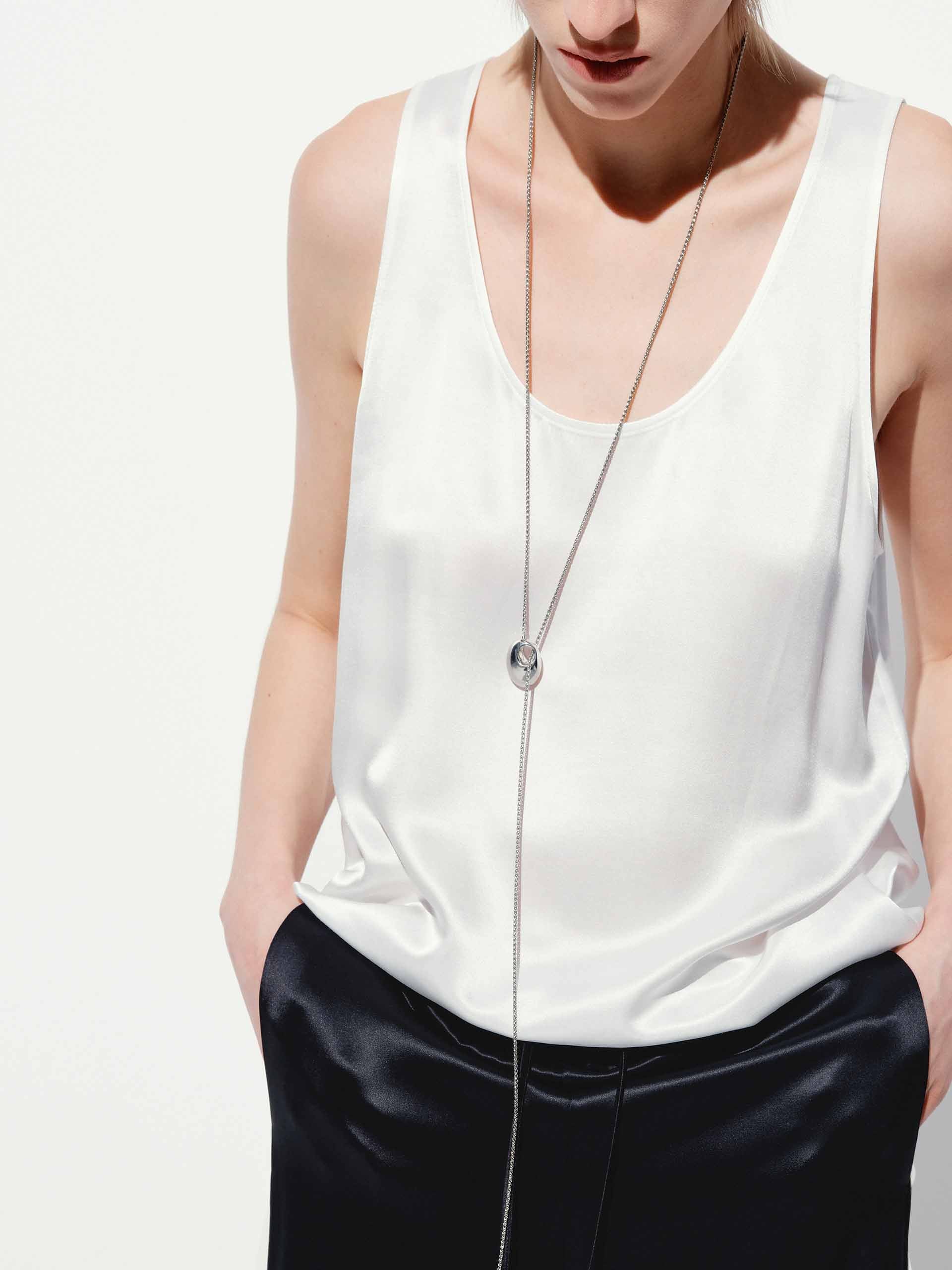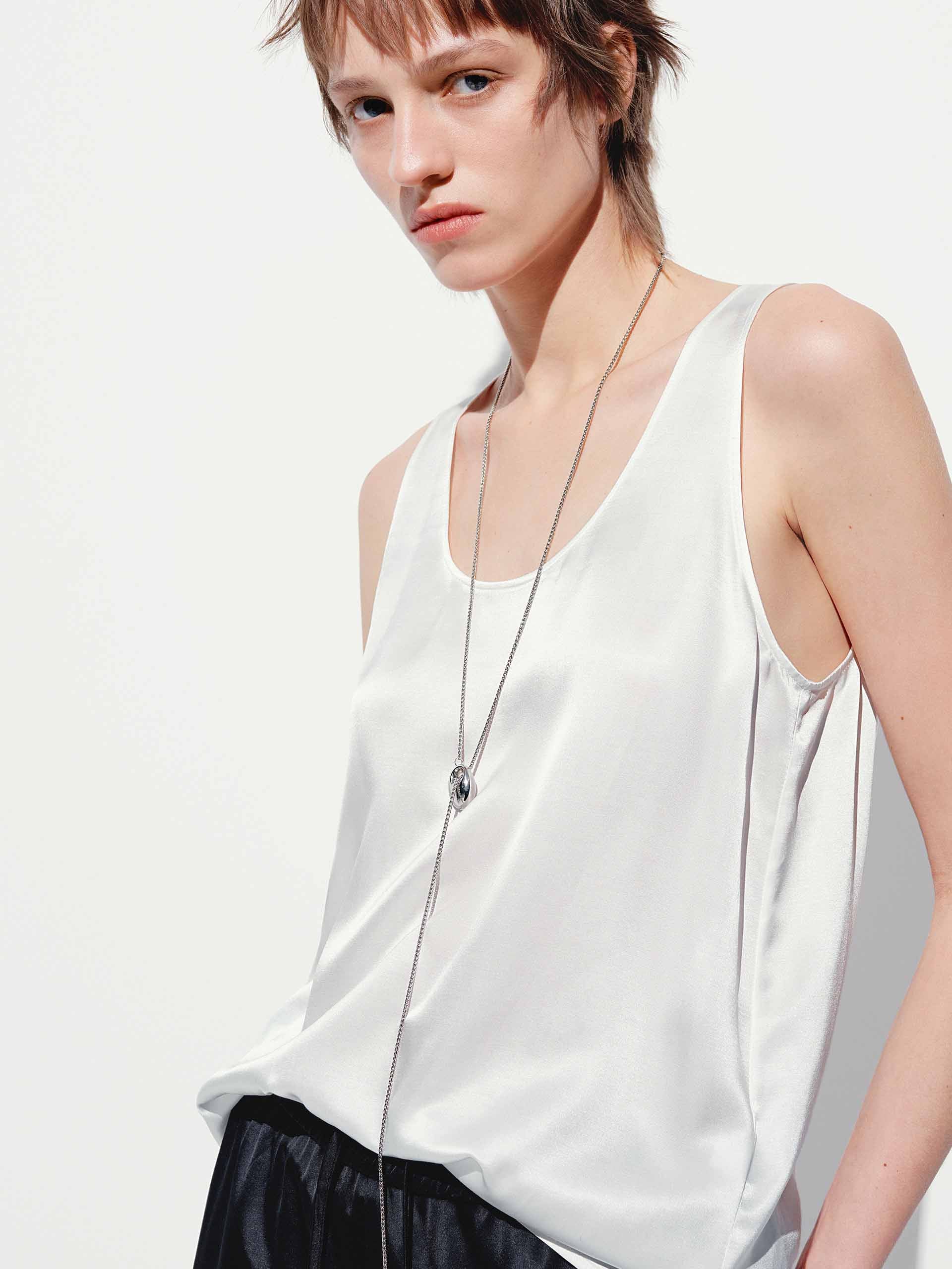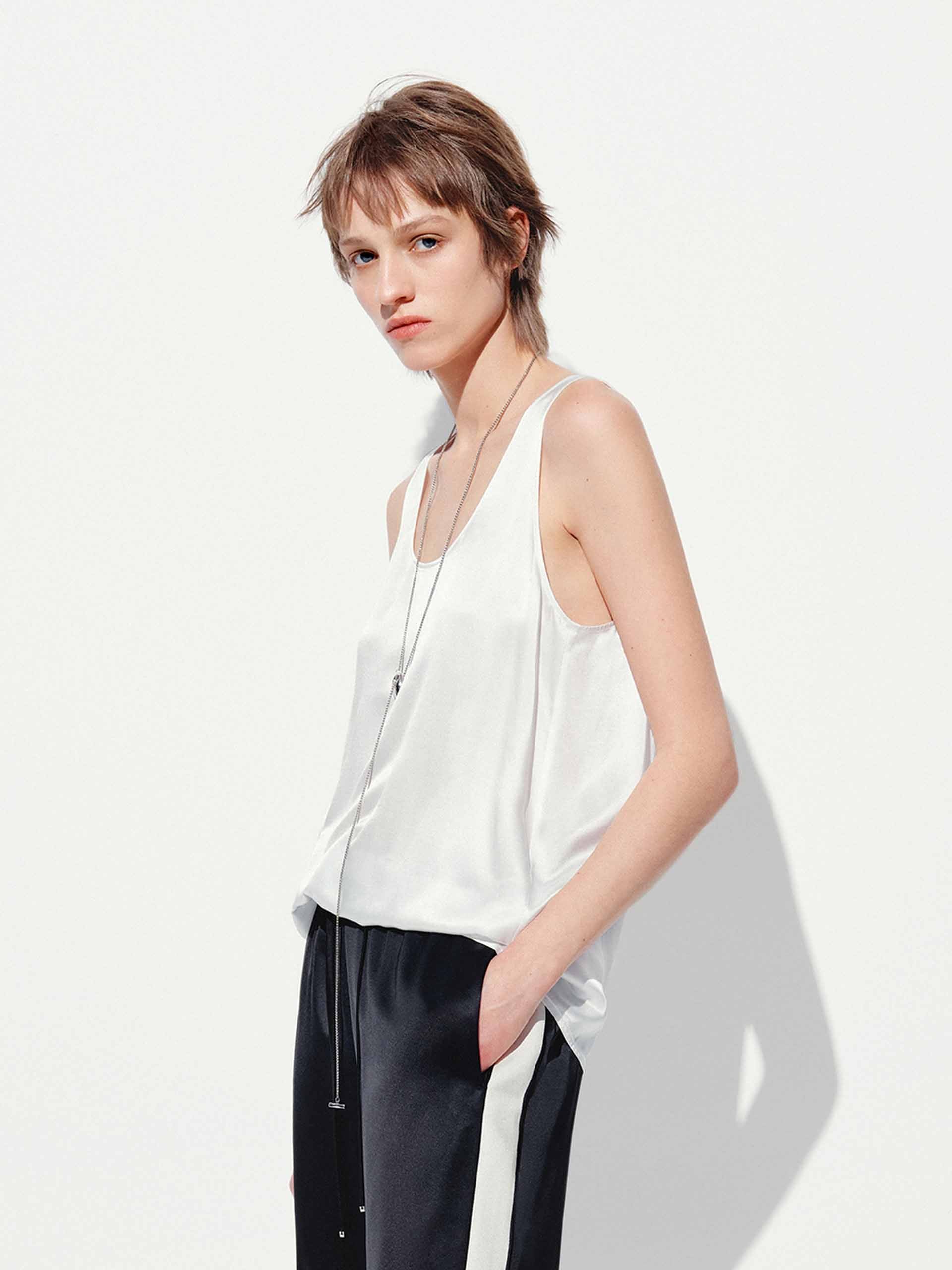 Indulge in effortless elegance with this tank top, crafted from a premium silk blend for the perfect balance of breathability and luxurious drape. The flattering U-neckline and sleek sleeveless design create a timeless silhouette that pairs beautifully with everything from blazers to jeans.