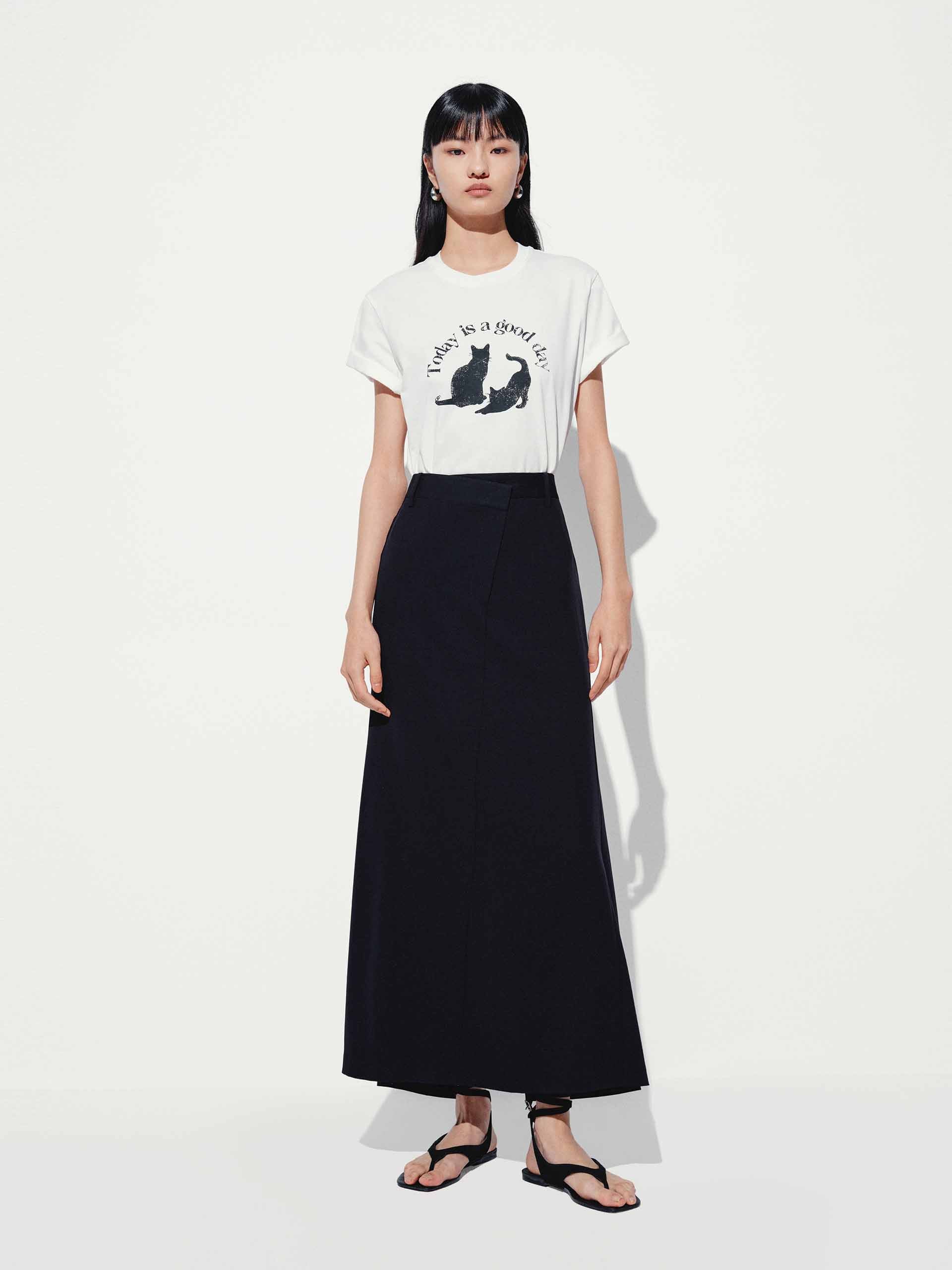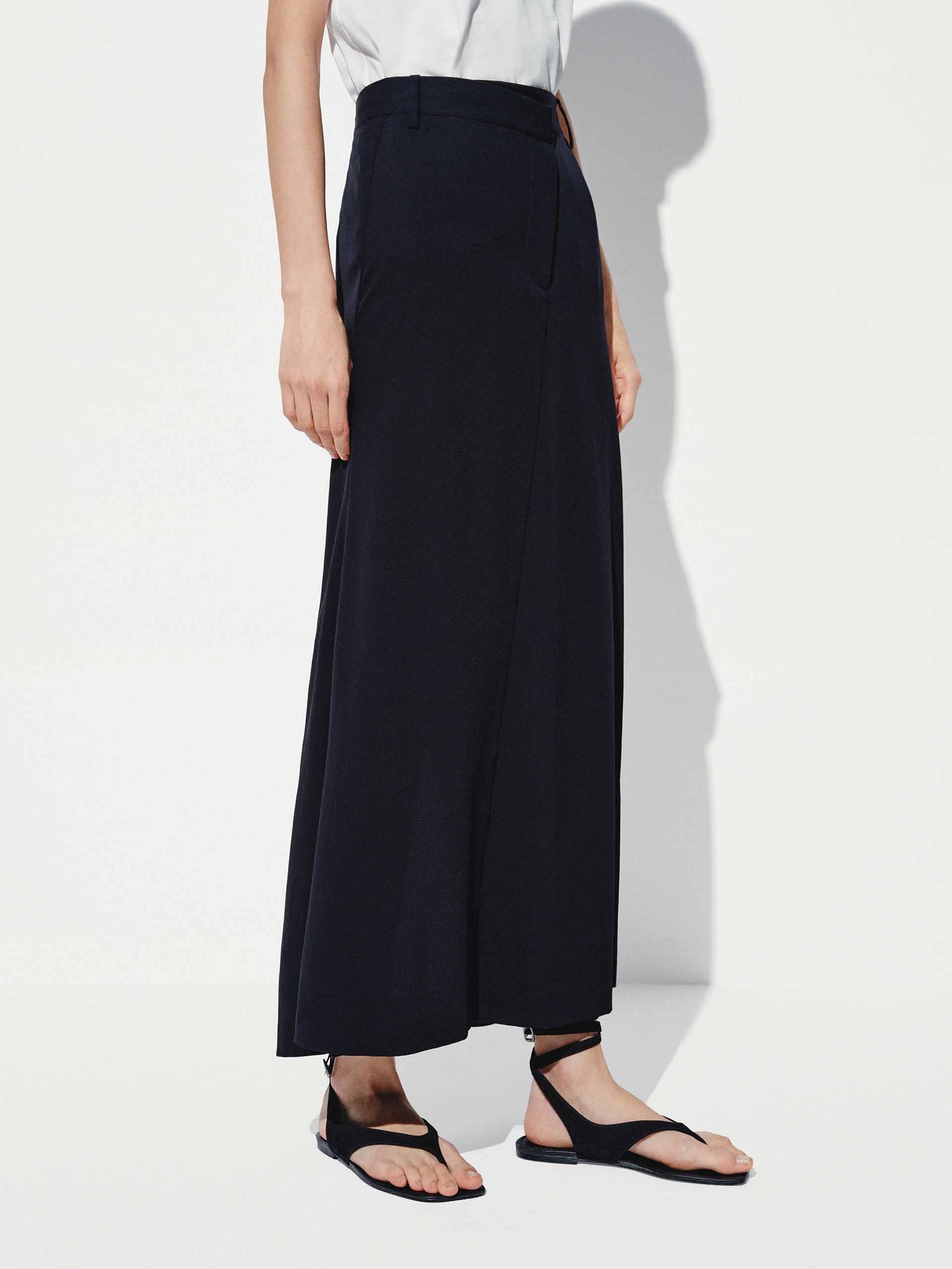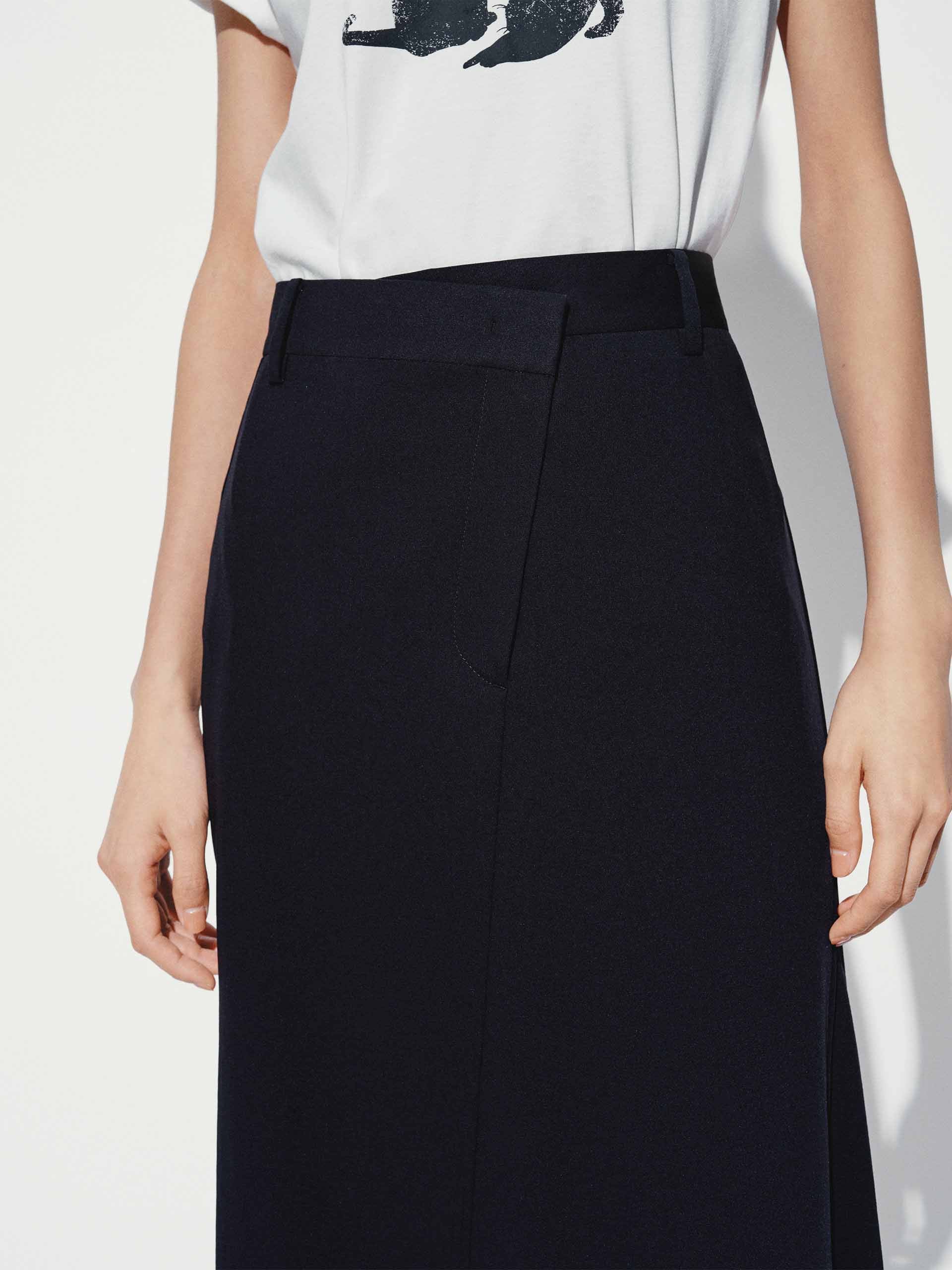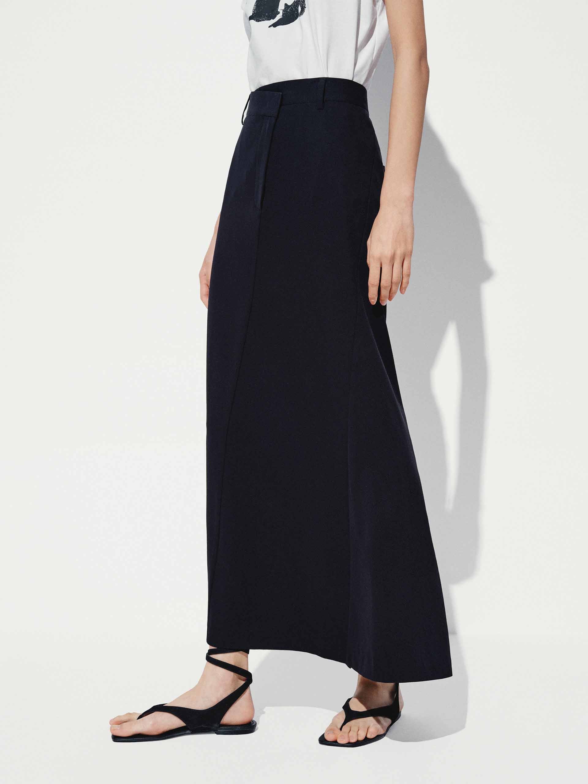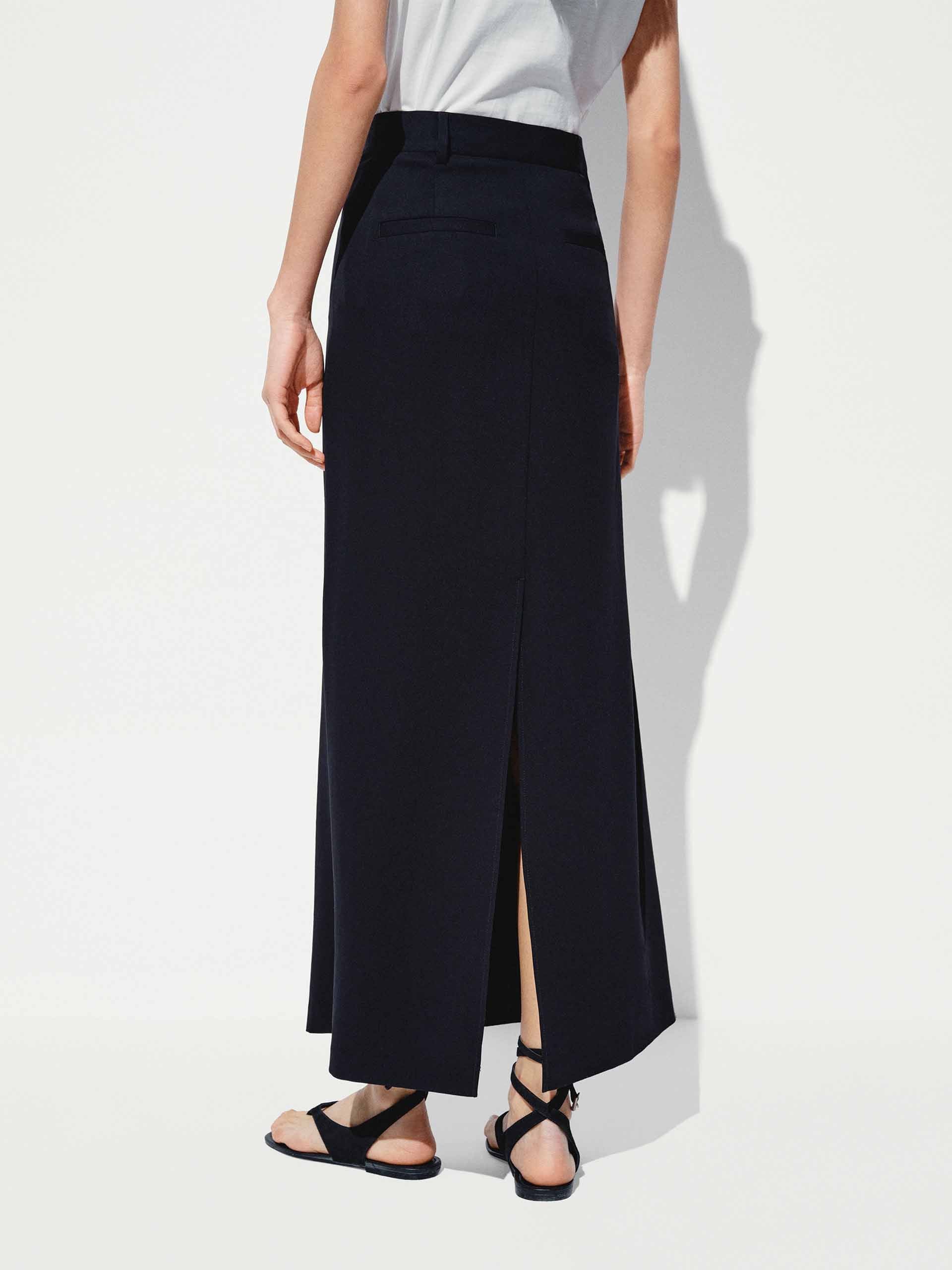 This chic skirt features a flattering silhouette that effortlessly enhances your curves. Designed with a high waist for a sleek and polished look, it’s perfect for both casual and dressy occasions. The back slit detail adds a touch of sophistication and ease of movement, while the zip and button closure ensures a secure yet stylish finish.