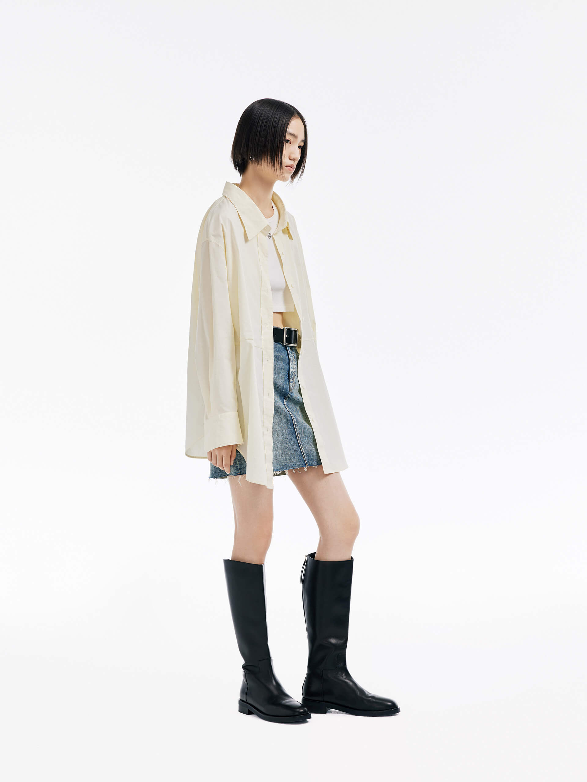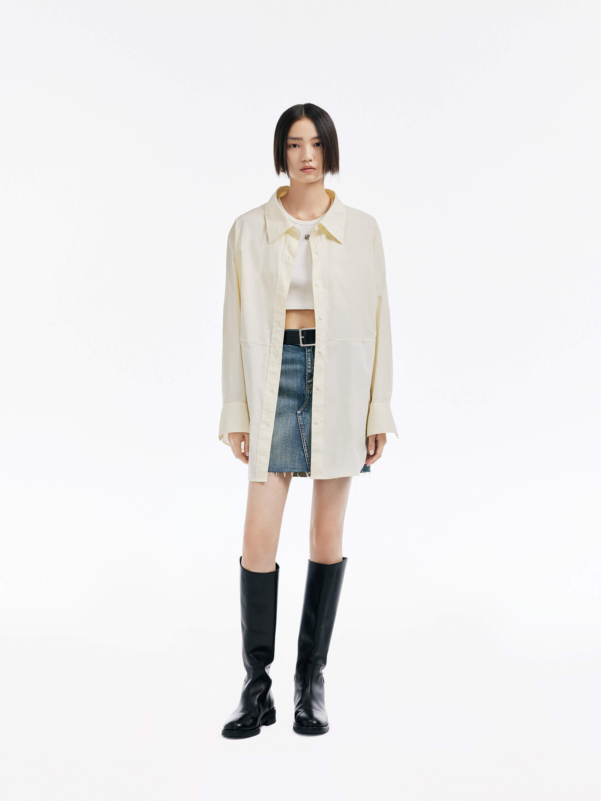 Indulge in comfort with our cotton blend shirt. The loose fit adds a touch of elegance, while the detachable white vest offers versatility and style.