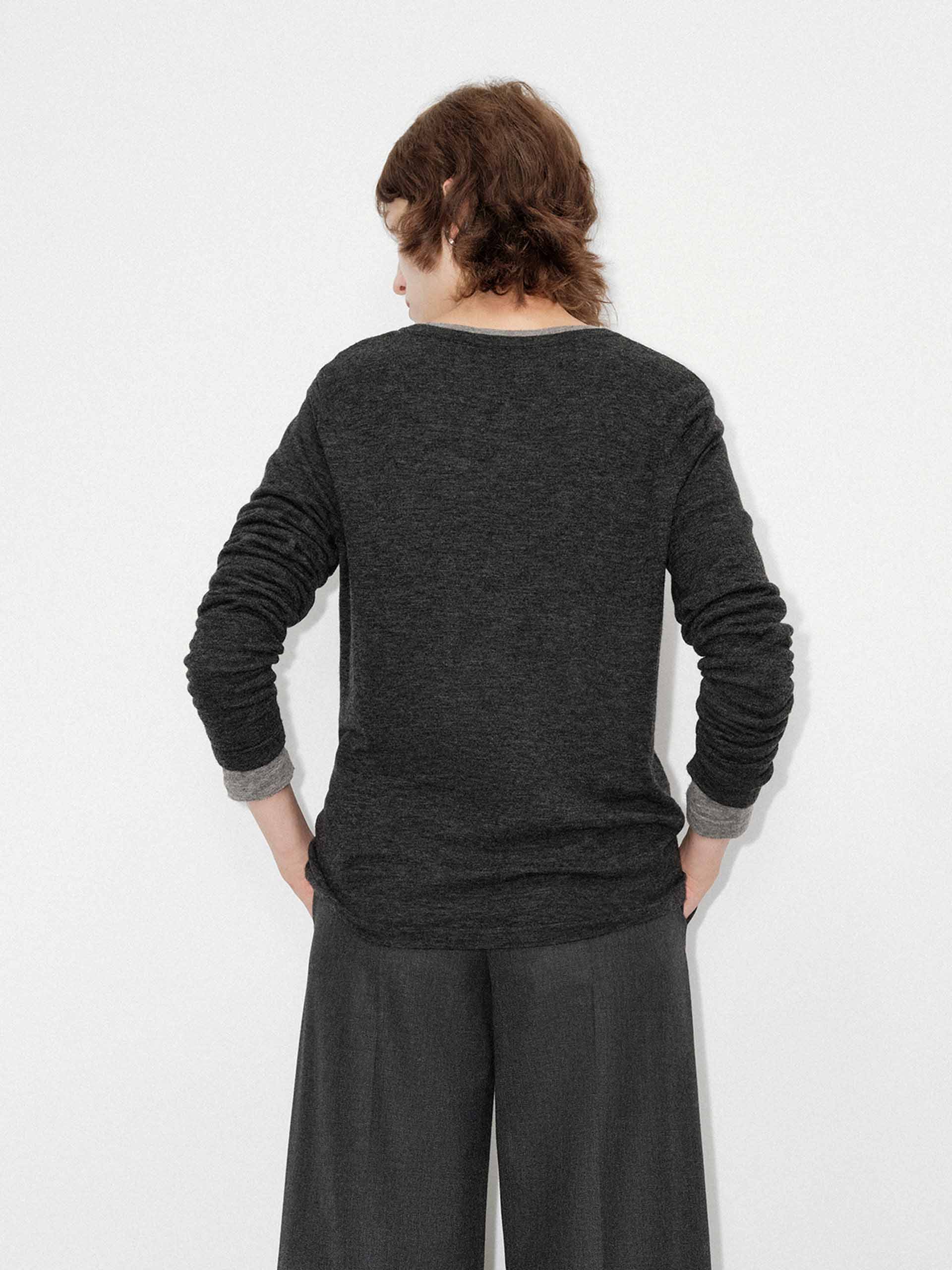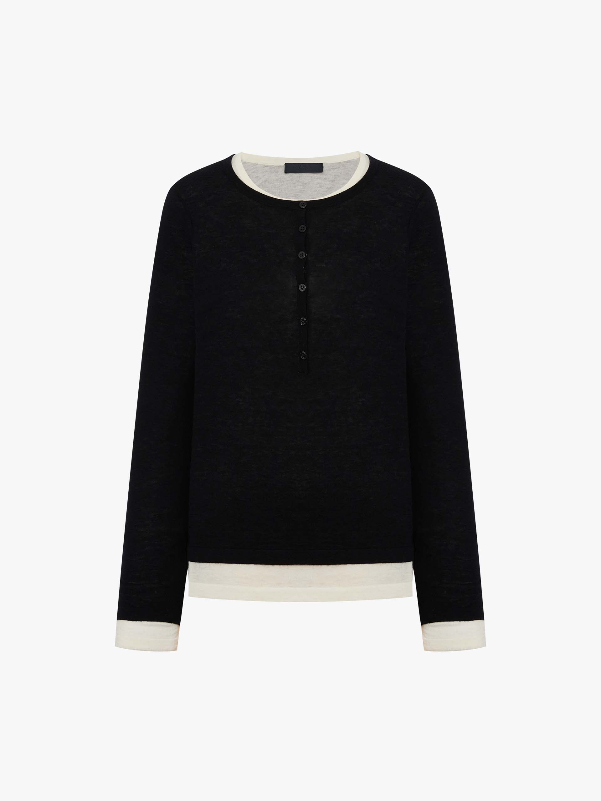 This sweater is the perfect addition to your transitional wardrobe. Made from warm and lightweight wool, it offers a soft touch and comfortable wear. Unique contrast layered design makes it stand out, and the detachable top allows for multiple matching styles.